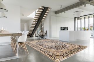 Hand-knotted rugs hold a firm place in both classic and contemporary interiors. In modern spaces, the contrast between clean architectural lines and ornamental structures creates a special sense of depth and character.
