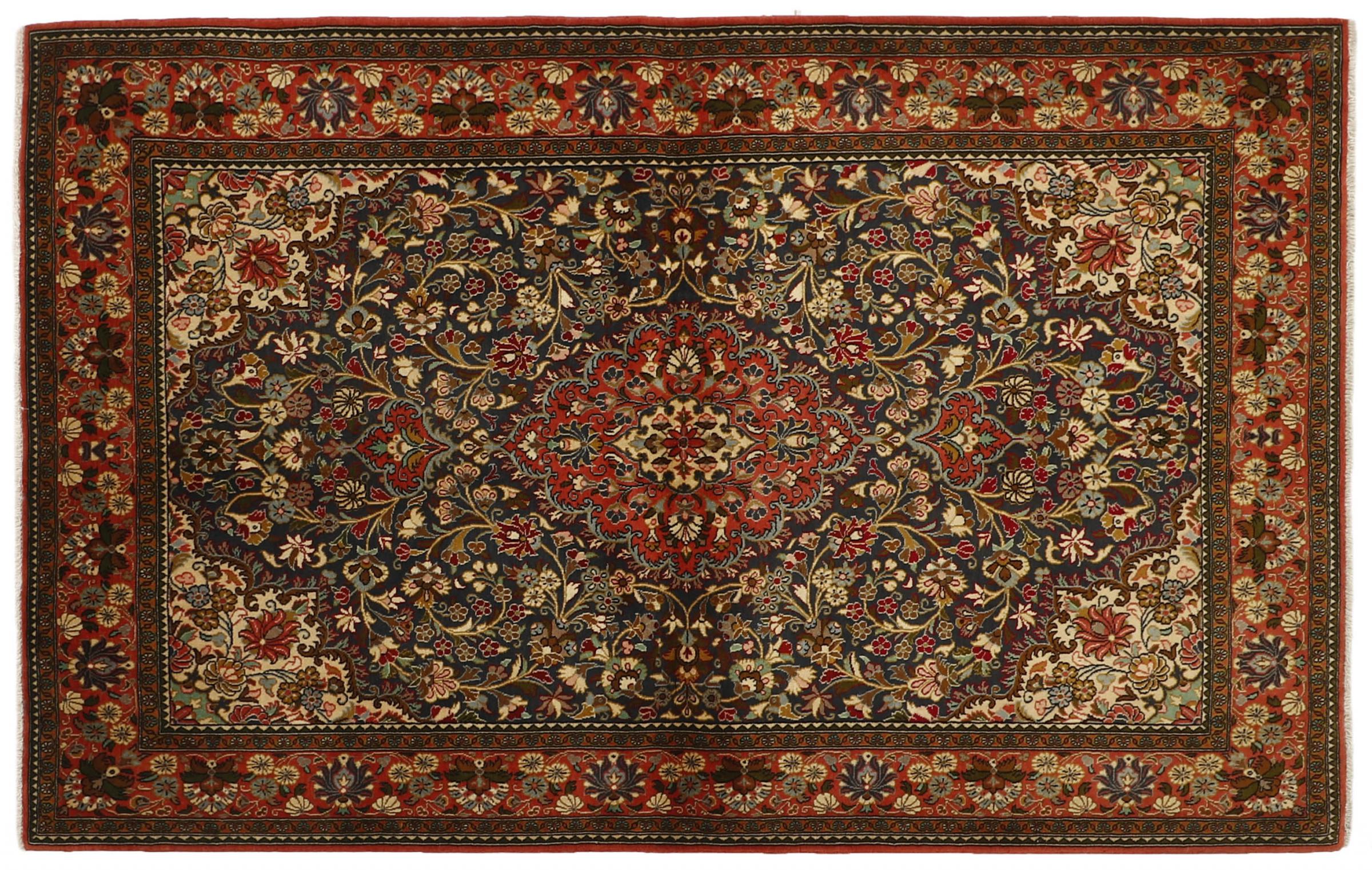 This carpet comes from Iran (formerly Persia) and as a Persian rug enjoys probably the highest reputation among all hand-knotted rug types. No other region looks back on such a long tradition in rug making as Iran. Thus, the probably finest and most elaborate rugs originate here. The robustness, durability and quality of the Persian knot are still unsurpassed today. Persian rugs are usually named after their region of origin. For instance, a Nain, a Ghom as well as an Isfahan carpet comes from the city of the same name in Iran.