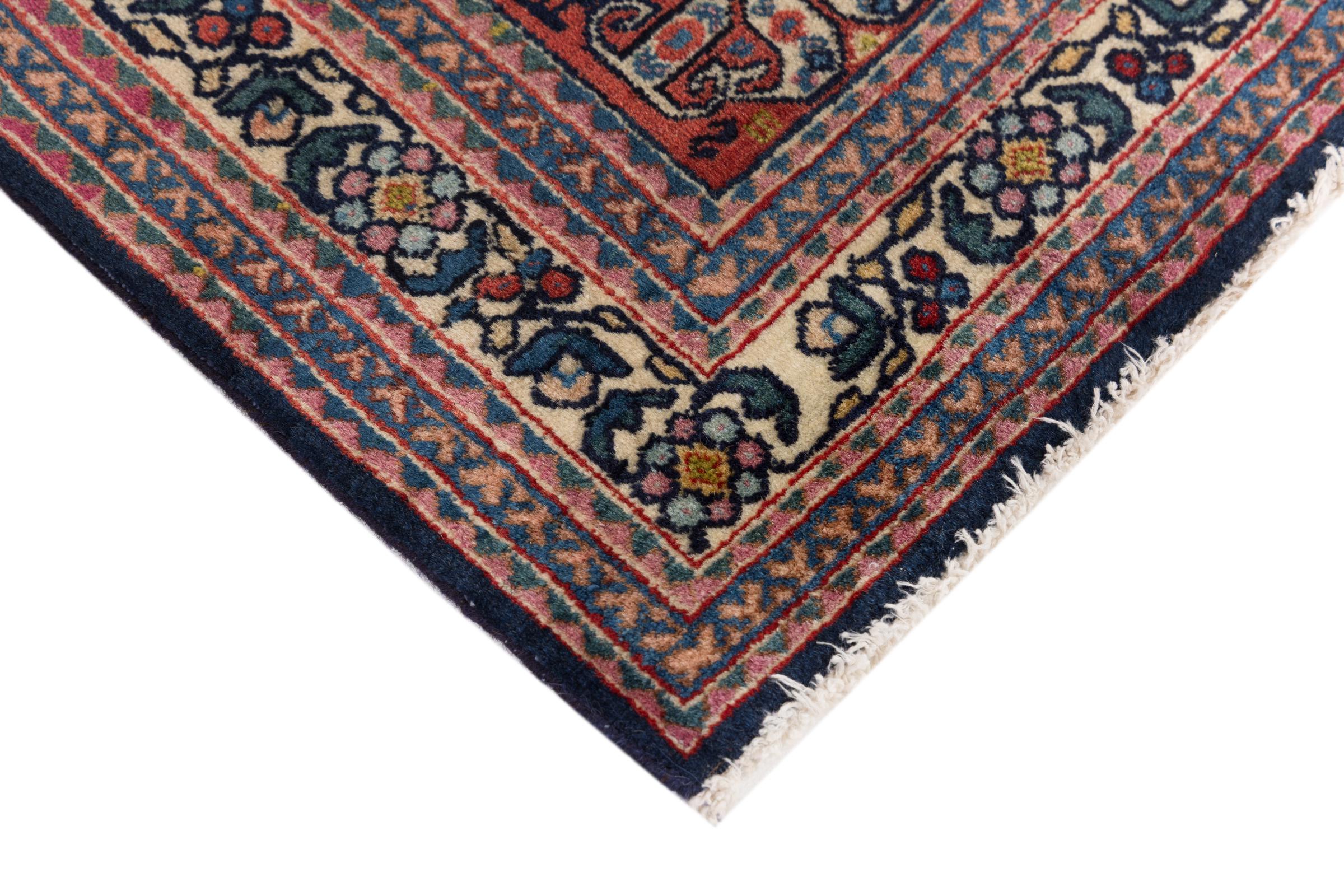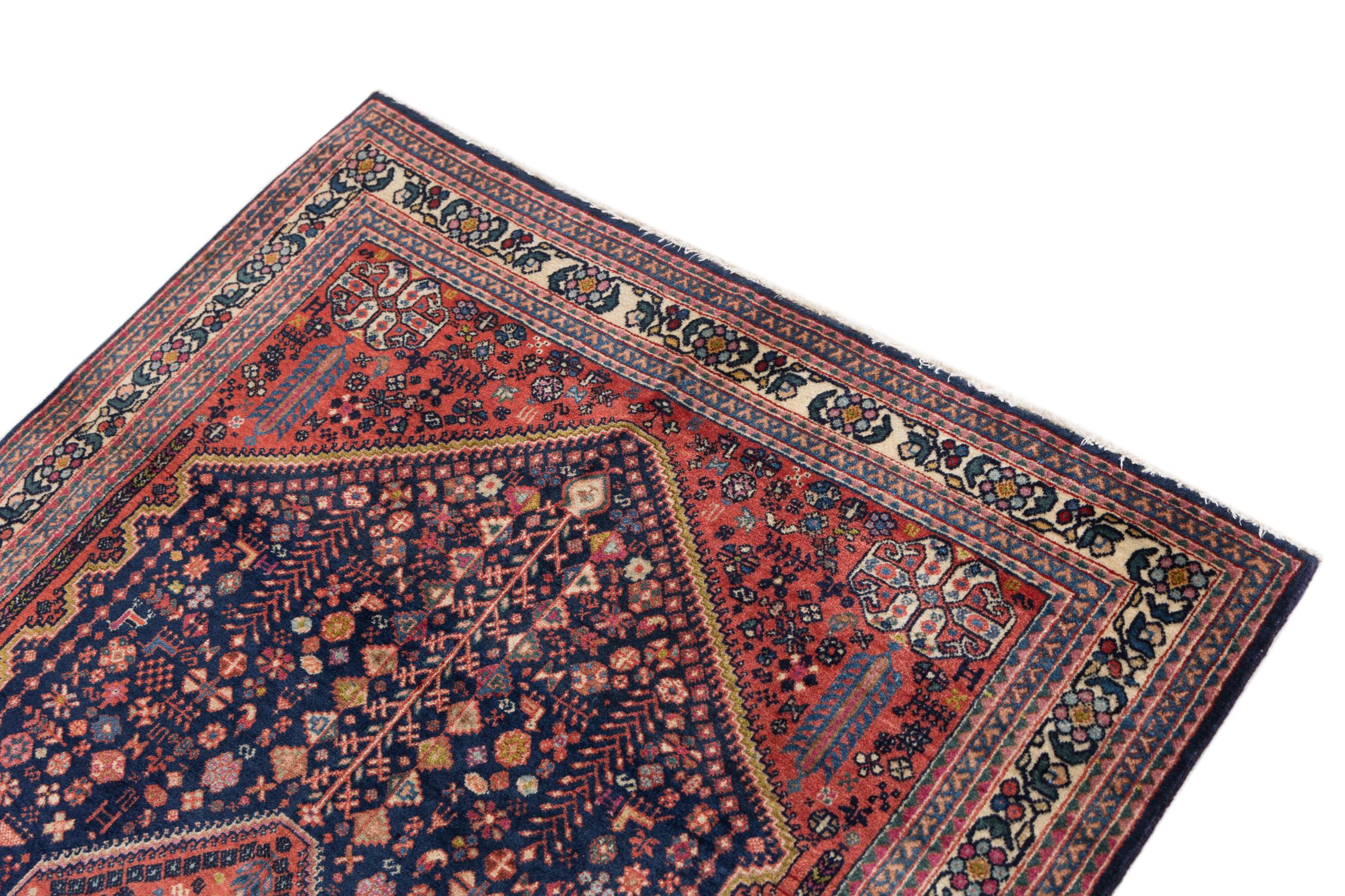 This rug belongs to village and nomadic rugs from Iran, formerly Persia. This type of rug is knotted by hand in smaller towns and villages in old tradition. Even nomads still knot Persian rugs in the open air. The rugs are knotted without a draft and completely from the mind. They are characterized by classical ornaments, which are arranged in straight and geometrical patterns. Thanks to their cultural-traditional origin, these rugs have a unique character that embodies ancient Persia.