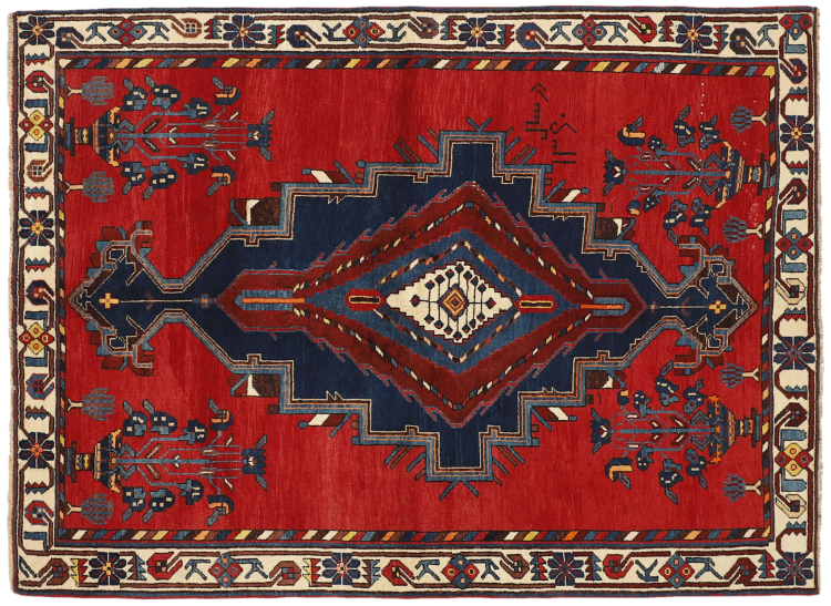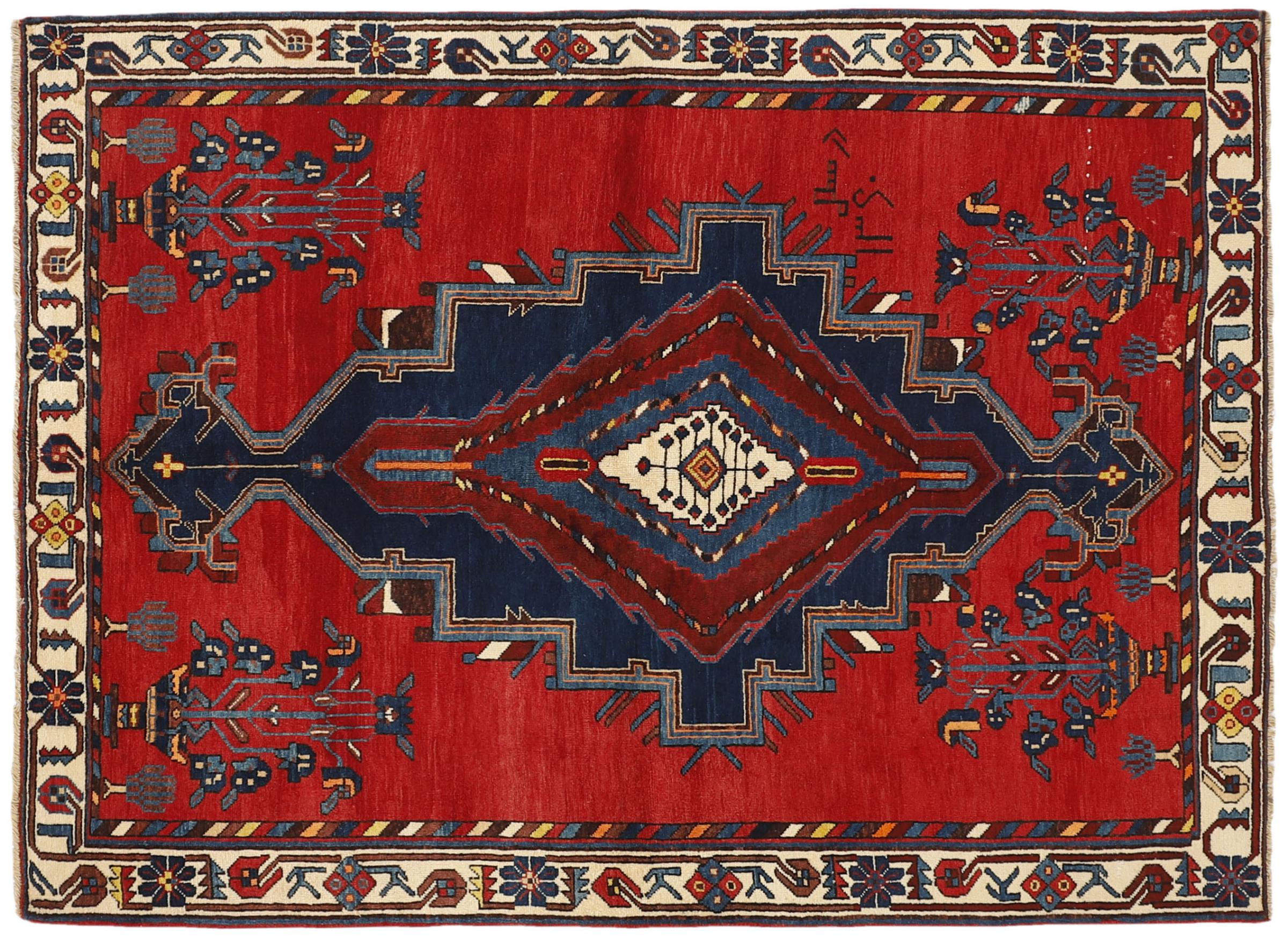 This rug belongs to village and nomadic rugs from Iran, formerly Persia. This type of rug is knotted by hand in smaller towns and villages in old tradition. Even nomads still knot Persian rugs in the open air. The rugs are knotted without a draft and completely from the mind. They are characterized by classical ornaments, which are arranged in straight and geometrical patterns. Thanks to their cultural-traditional origin, these rugs have a unique character that embodies ancient Persia.