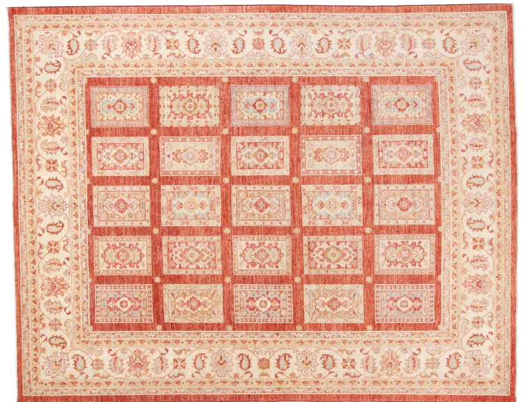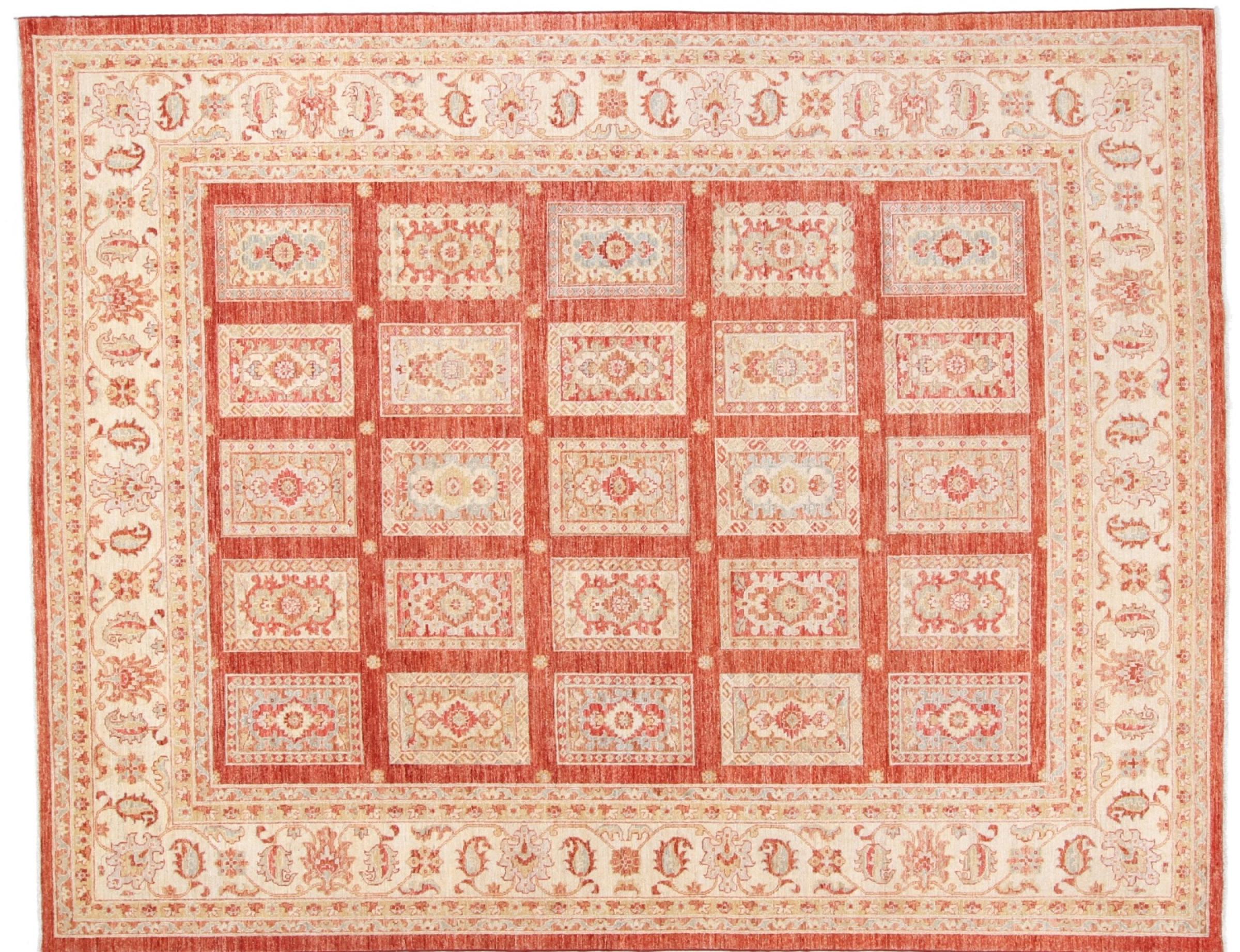 A large part of Pakistani rug production takes place in and around the cities of Lahore and Karachi. Many of the rug knotters of that time fled to Pakistan during the war with India and settled there. Today, especially hand-knotted Pakistan Bukhara rugs are well-known. Similar to the Afghan oriental rugs, Pakistani rugs are also made in dark colours and mostly have shades of red. Even the well-known elephant foot pattern (repeating octagonal pattern) can be found on a Pakistani.