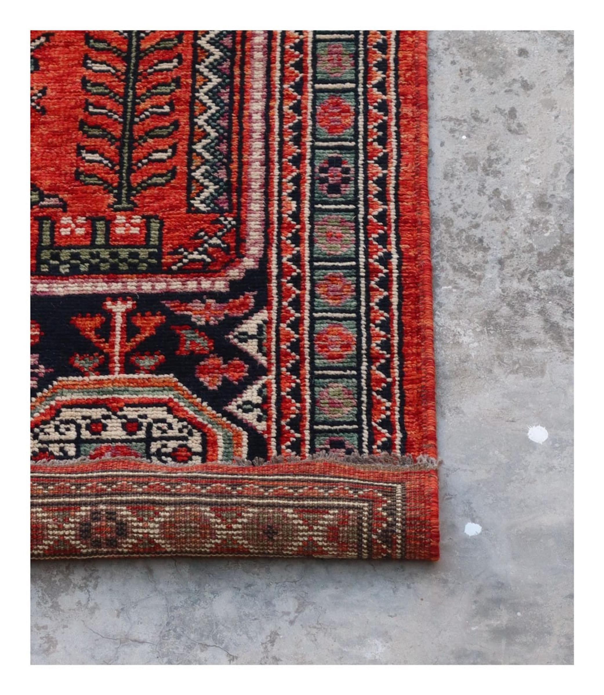 A large part of Pakistani rug production takes place in and around the cities of Lahore and Karachi. Many of the rug knotters of that time fled to Pakistan during the war with India and settled there. Today, especially hand-knotted Pakistan Bukhara rugs are well-known. Similar to the Afghan oriental rugs, Pakistani rugs are also made in dark colours and mostly have shades of red. Even the well-known elephant foot pattern (repeating octagonal pattern) can be found on a Pakistani.