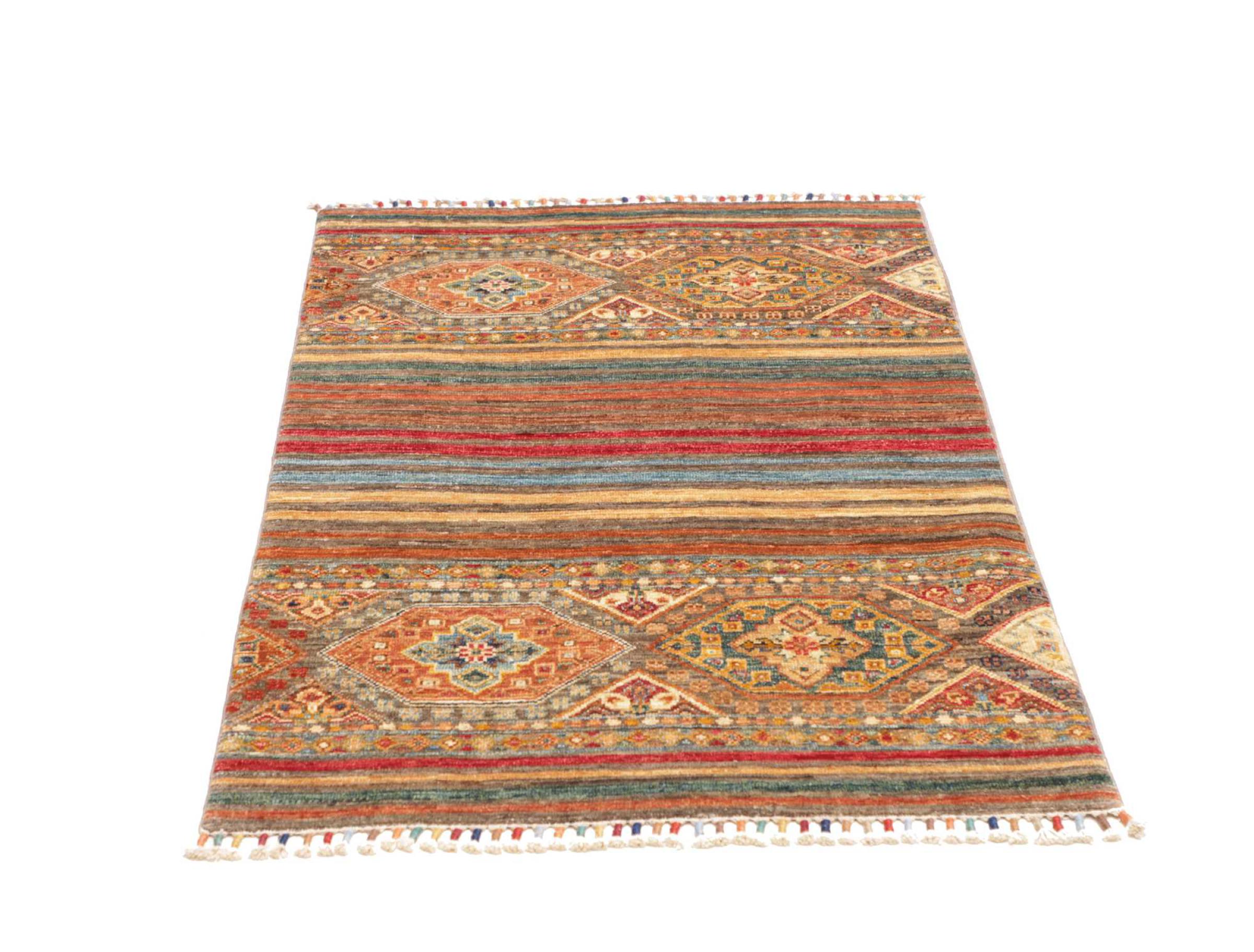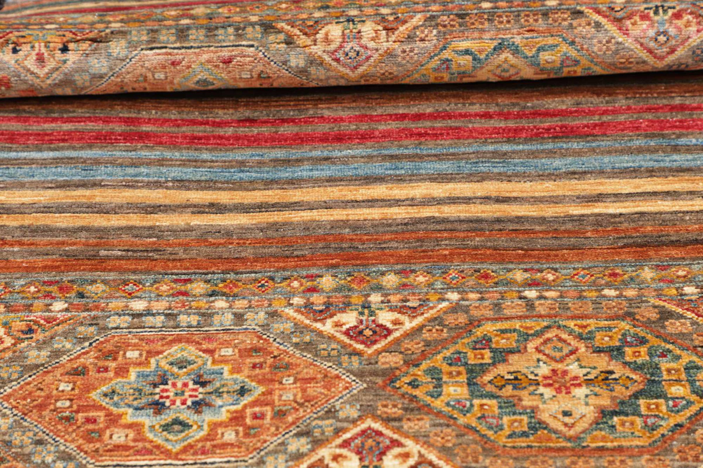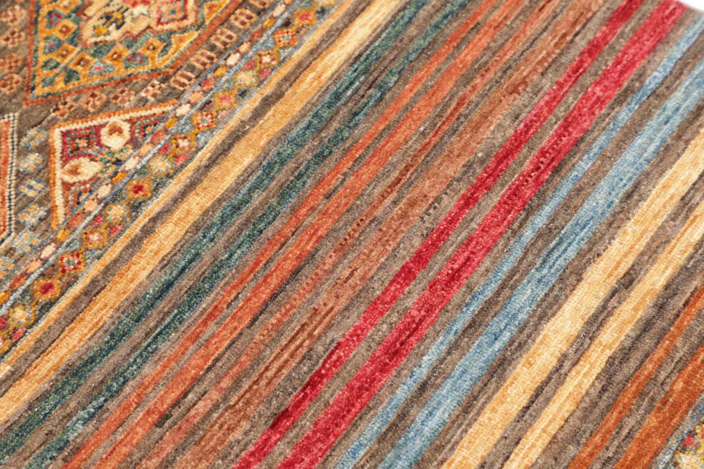 This Arijana Shaal carpet was knotted by hand in Pakistan. It promises a very high quality and thus offers long lasting pleasure. The pattern in stripes is varied and exciting. It was inspired by the well-known Moharamati design. If you find monochrome carpets too boring, you will certainly be delighted with this Arijana Shaal.