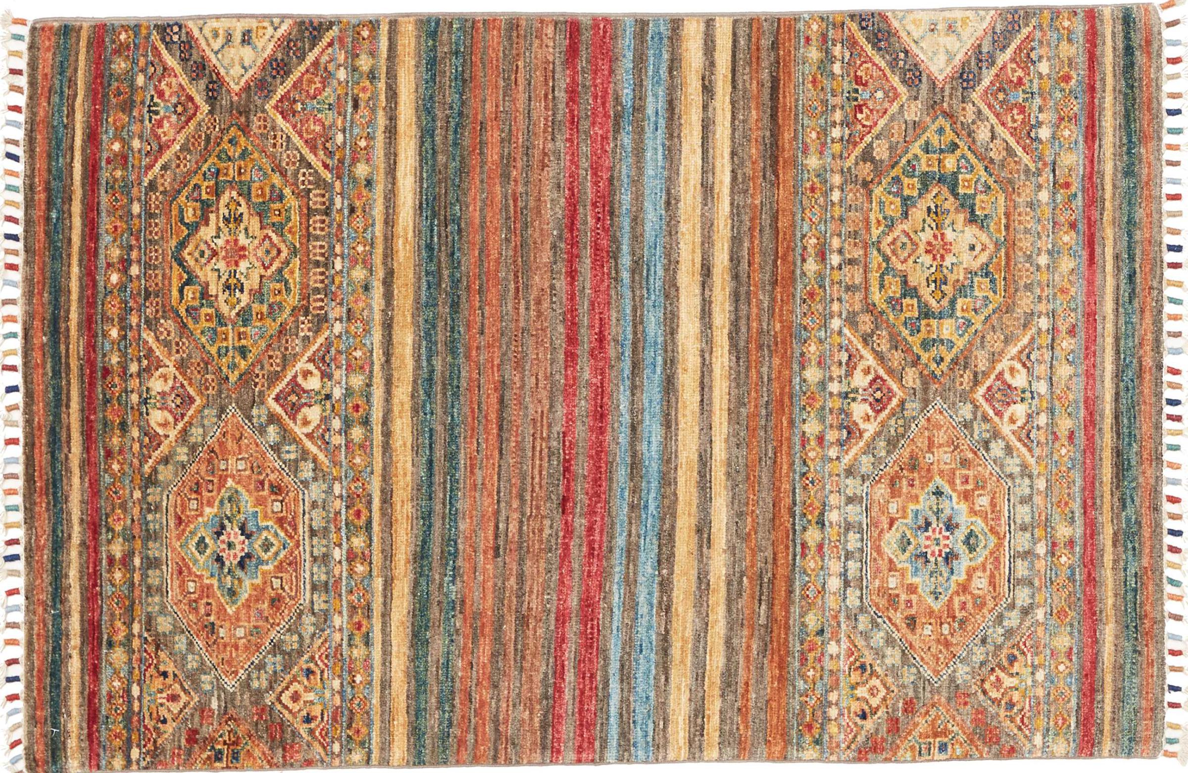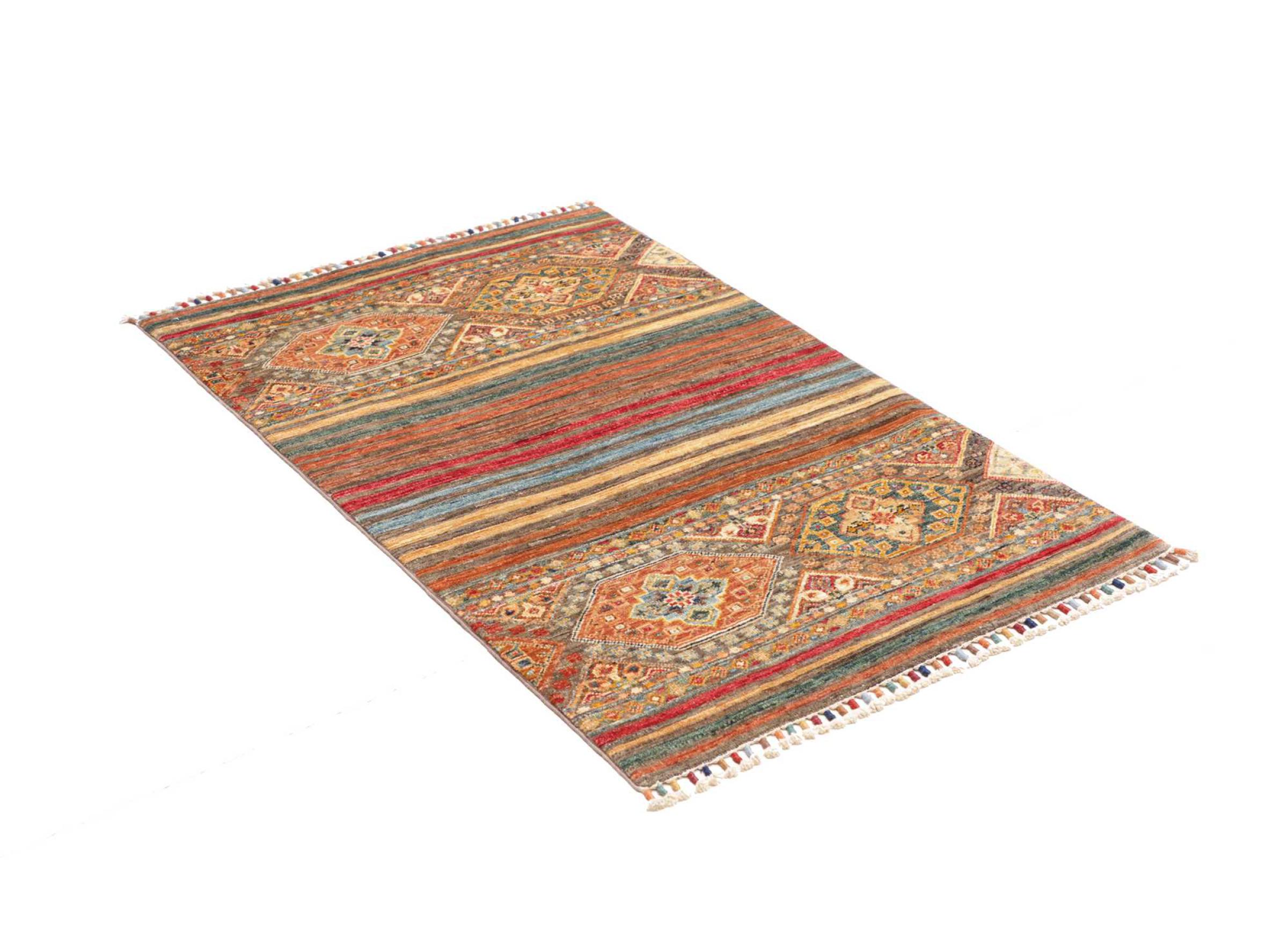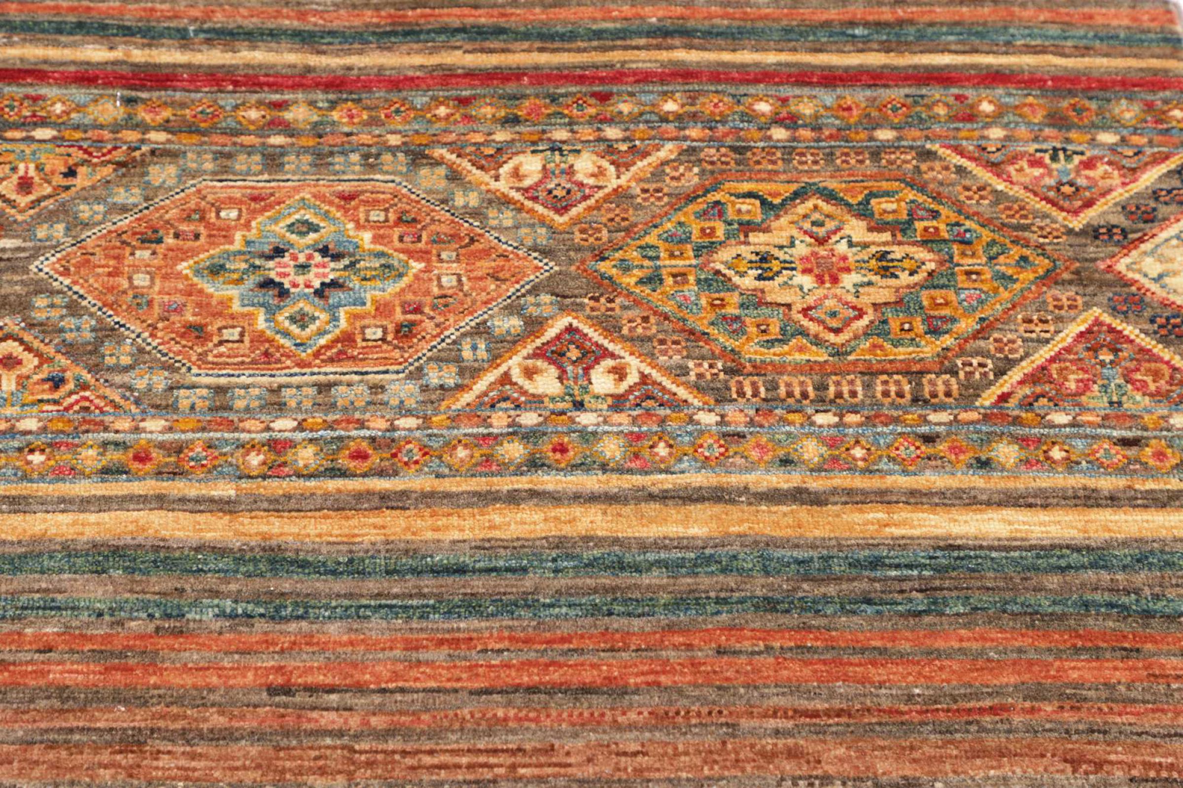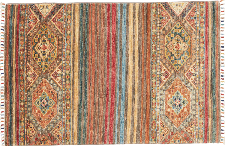 This Arijana Shaal carpet was knotted by hand in Pakistan. It promises a very high quality and thus offers long lasting pleasure. The pattern in stripes is varied and exciting. It was inspired by the well-known Moharamati design. If you find monochrome carpets too boring, you will certainly be delighted with this Arijana Shaal.