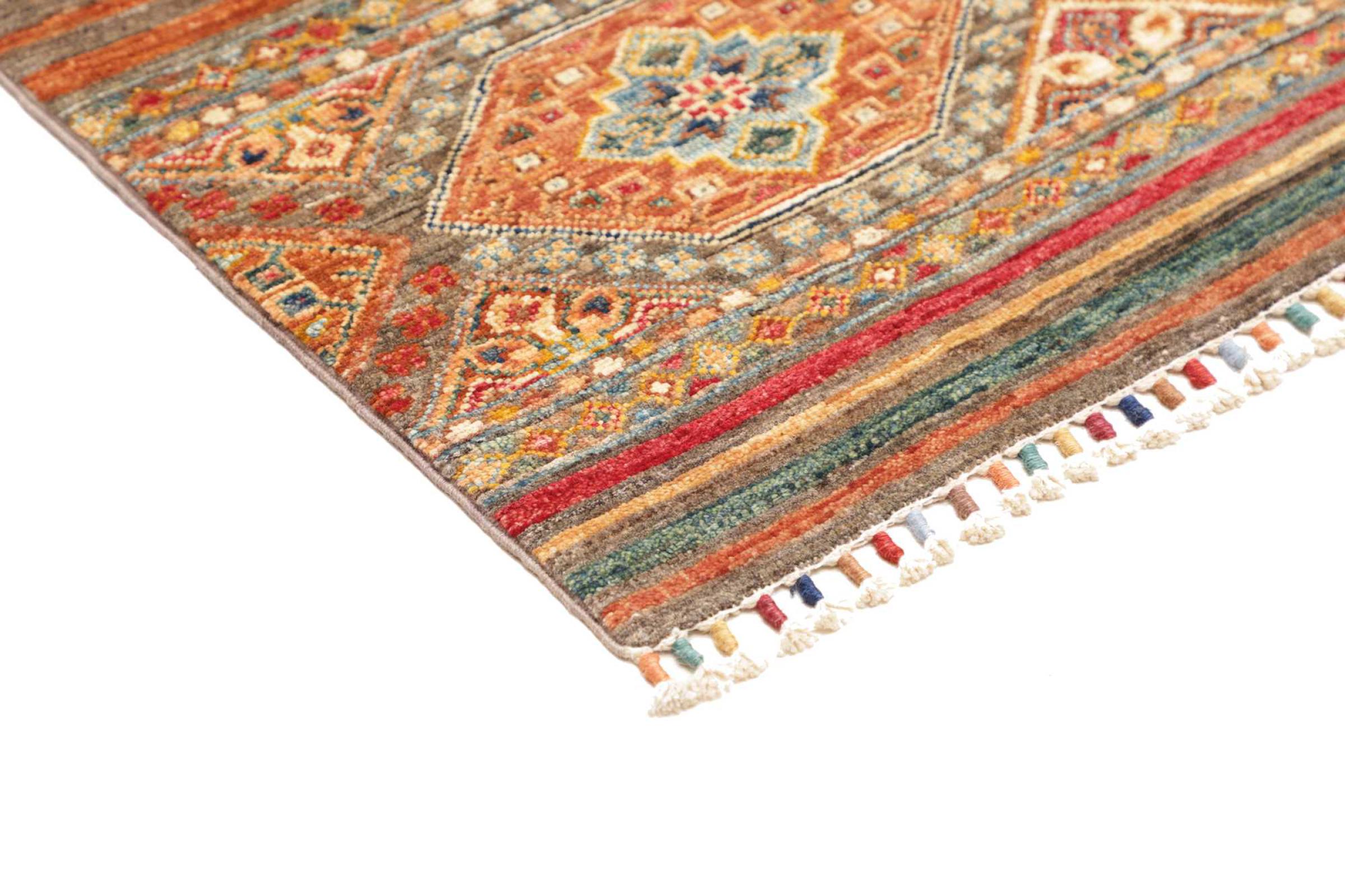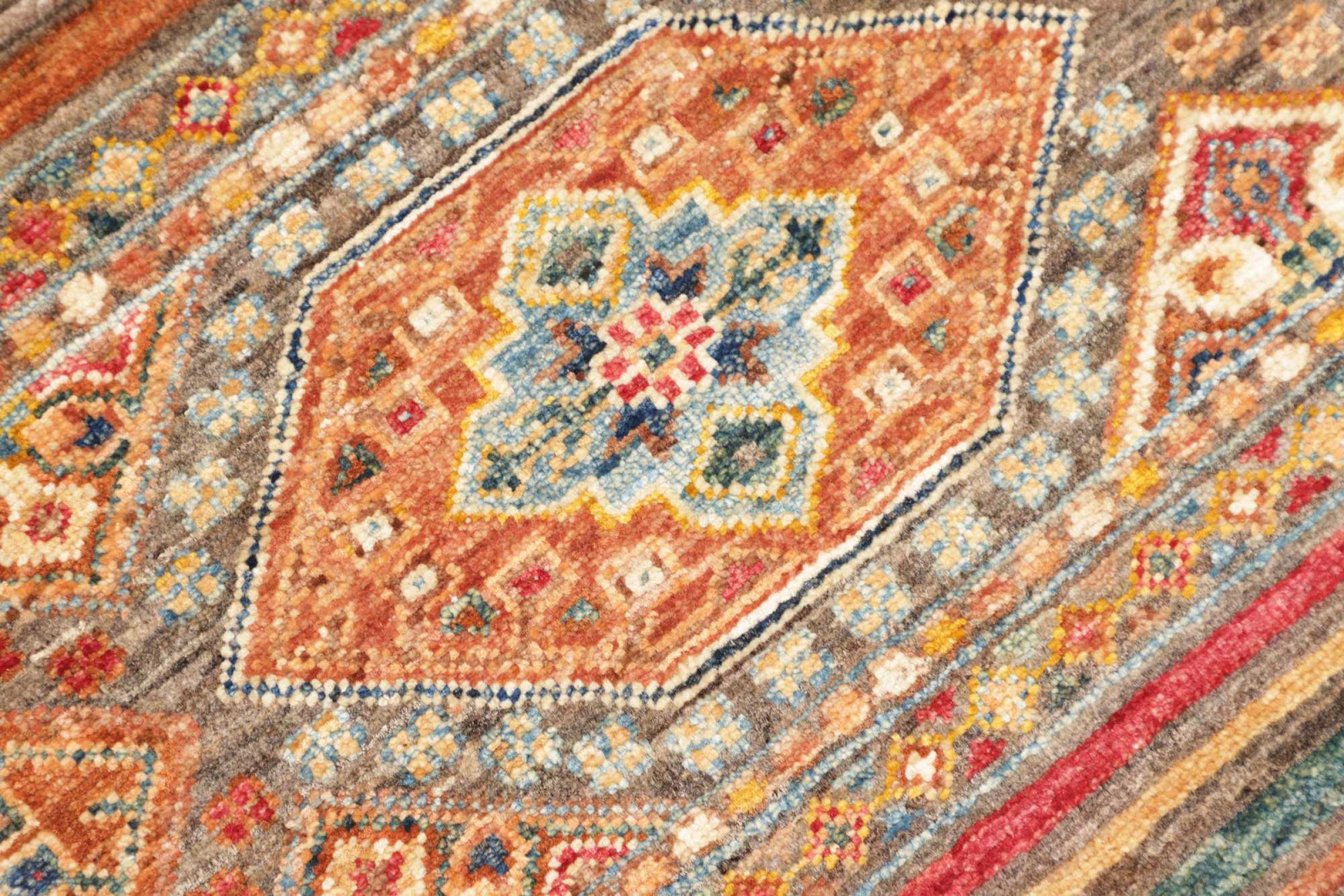 This rug is made of hand spun sheep wool of the highest quality. Especially in Iran (former Persia), Afghanistan and Pakistan wool is still spun by hand before the actual knotting of the rug begins. Wool has proven itself as a natural and extremely hard-wearing material over centuries. Among other things, it has dirt-repellent and heat-insulating properties. At the same time, wool is incomparably soft and has a natural shine.
