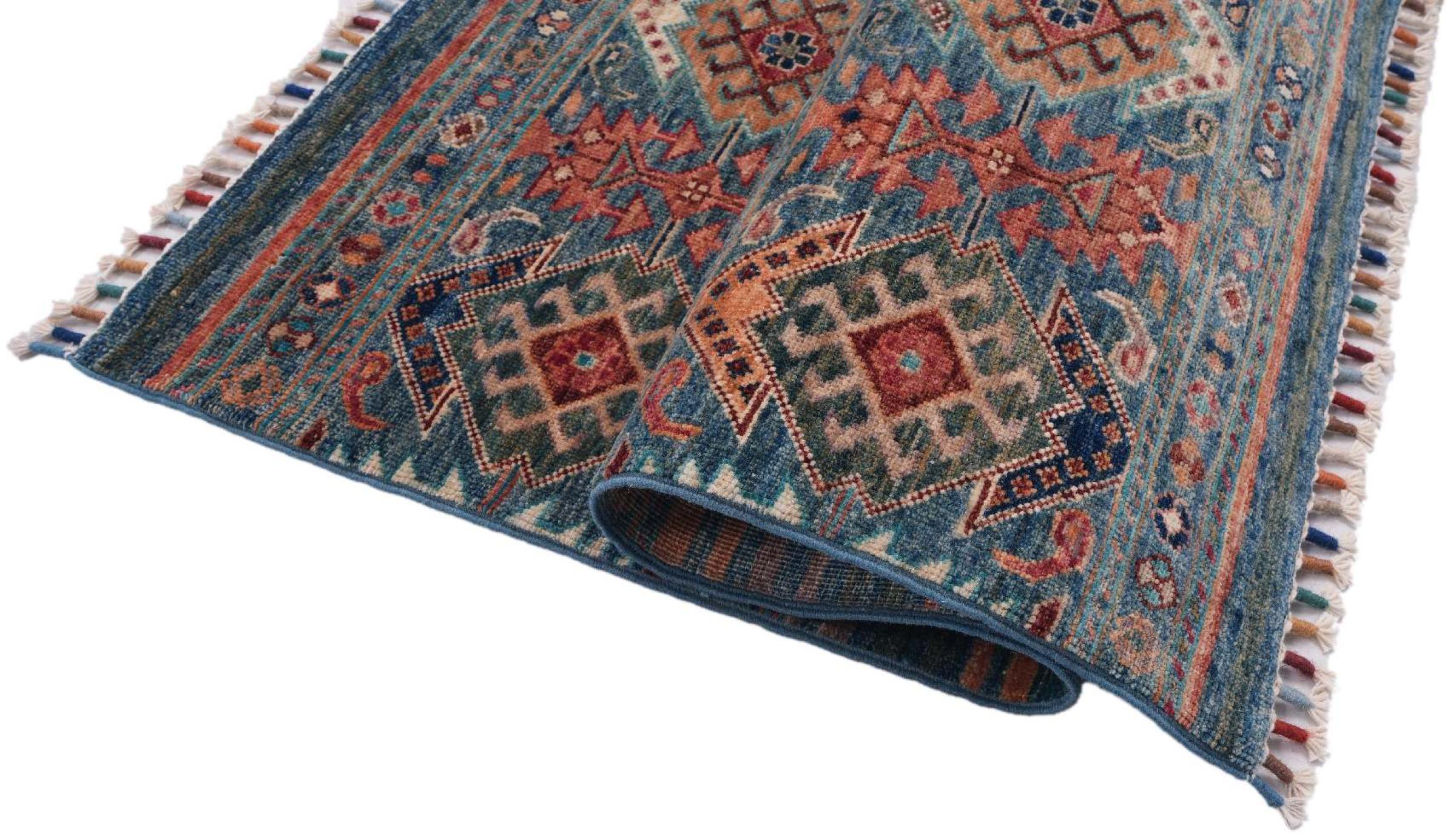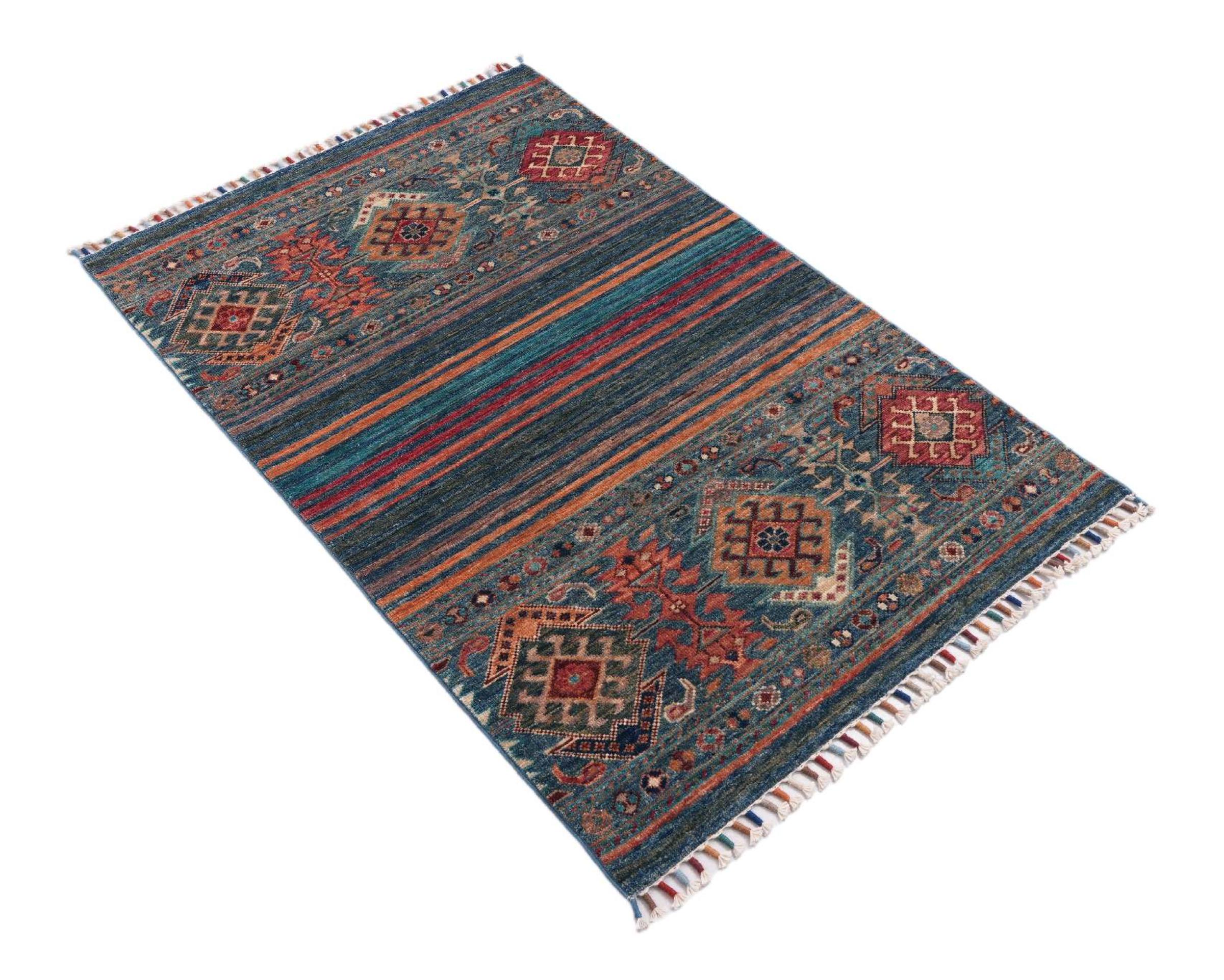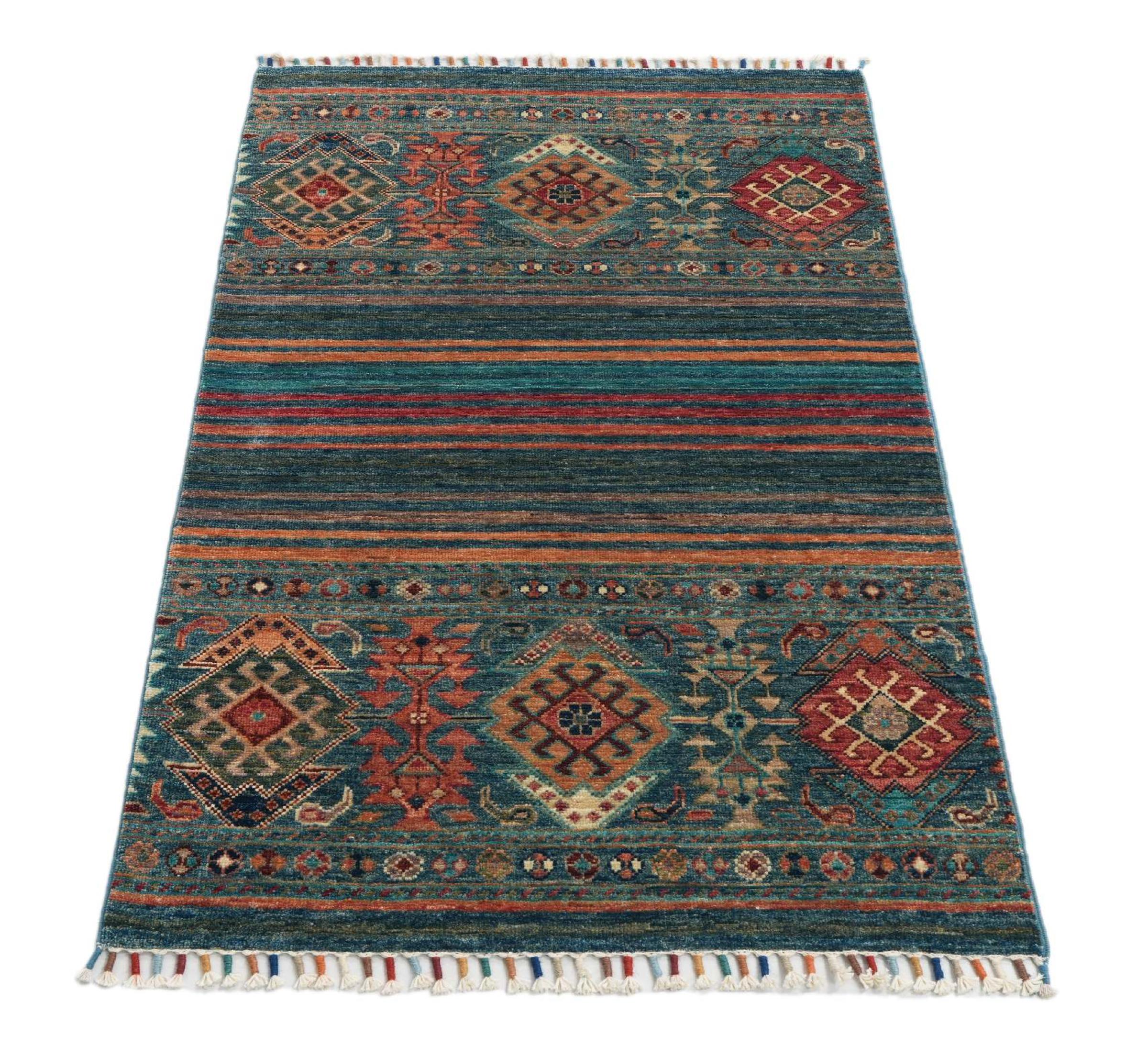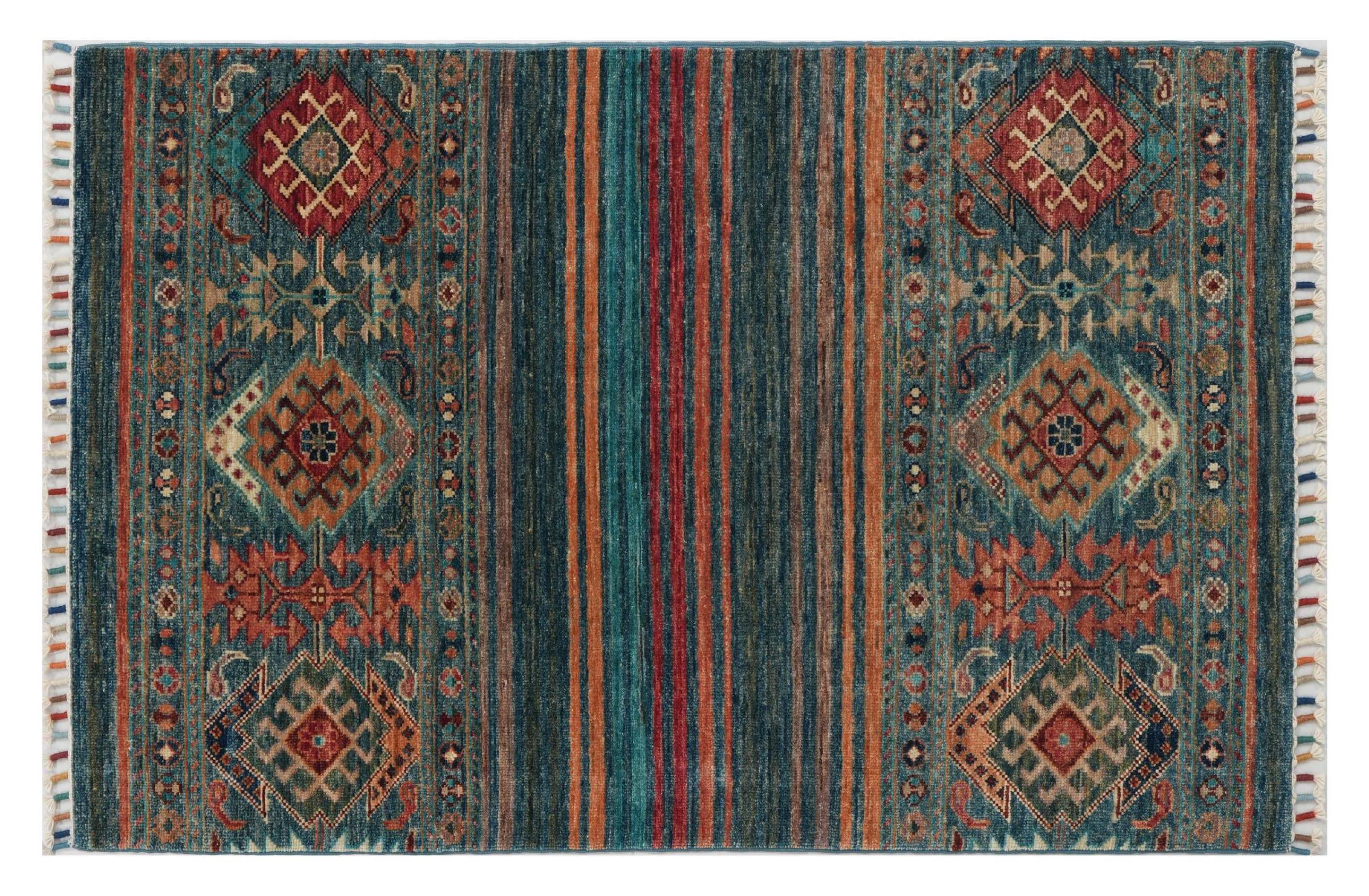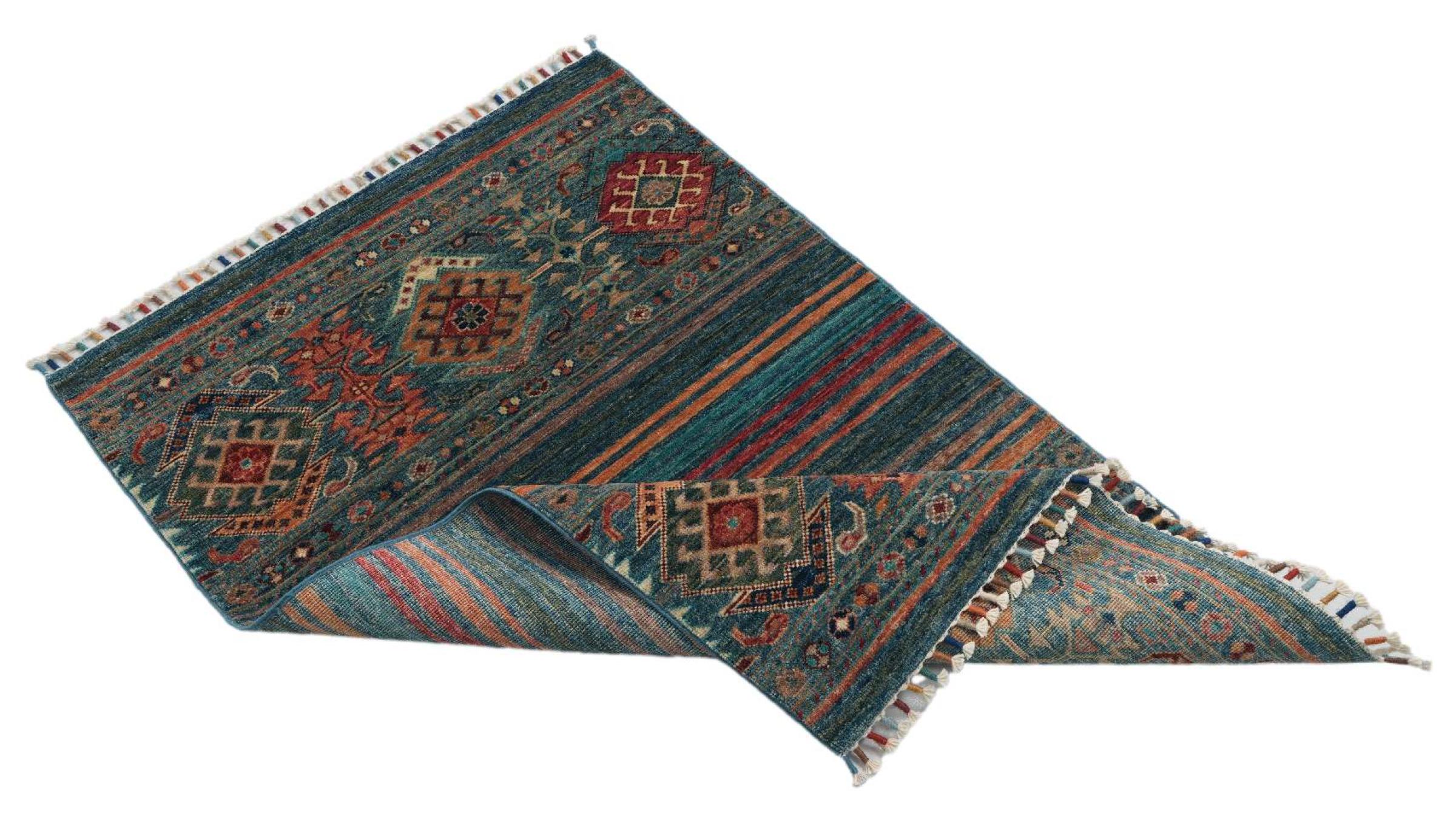 Carpet ID: 30612700557072 Size: 122x79 cm Thickness: ap. 6 mm Knot density: 120 000 - 150 000 / m² Manufacturing: Knotted by hand Pile: Handspun wool Warp: Cotton Origin: Pakistan Age: New Weight: ap. 3 kg In stock: Unique - Only 1 in stock