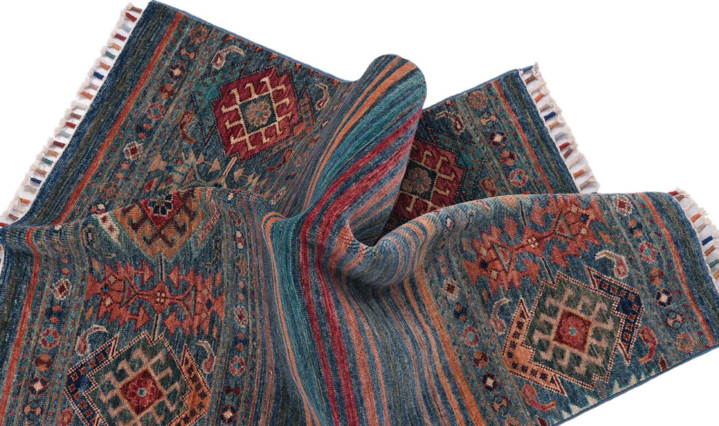 This rug is made of hand spun sheep wool of the highest quality. Especially in Iran (former Persia), Afghanistan and Pakistan wool is still spun by hand before the actual knotting of the rug begins. Wool has proven itself as a natural and extremely hard-wearing material over centuries. Among other things, it has dirt-repellent and heat-insulating properties. At the same time, wool is incomparably soft and has a natural shine.