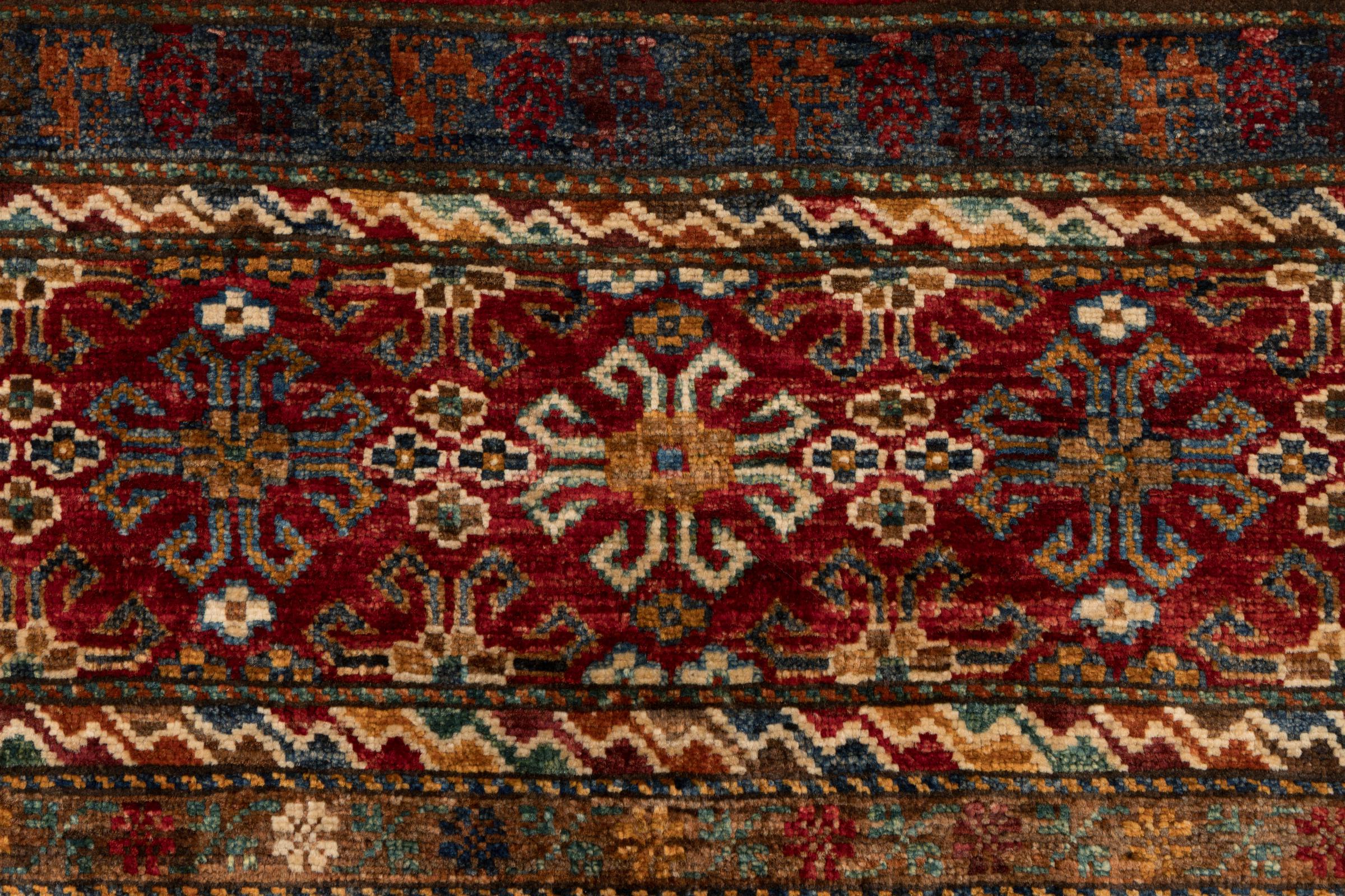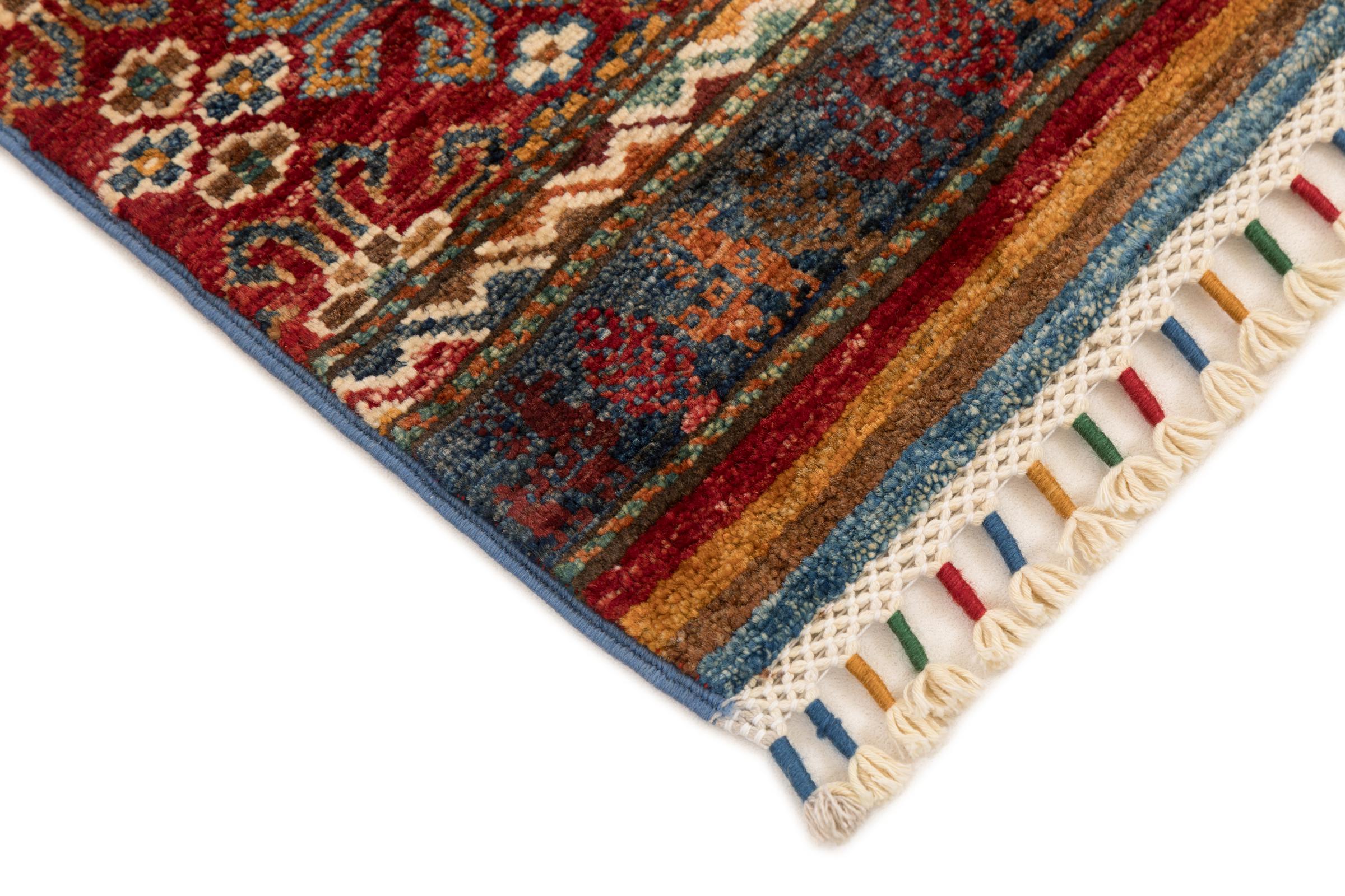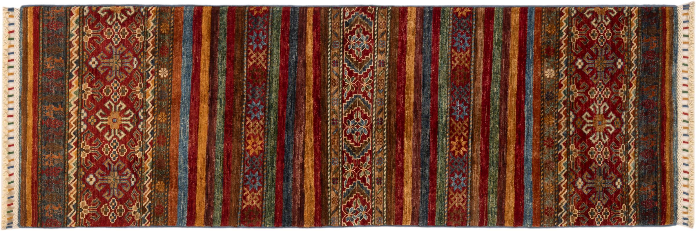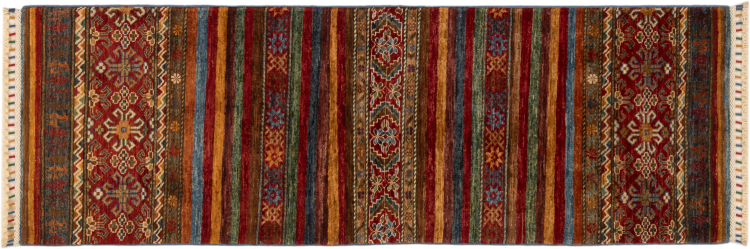 Carpet ID: 280296003427081 Size: 185x62 cm Thickness: ap. 5 mm Knot density: 128 000 - 160 000 / m² Manufacturing: Knotted by hand Pile: Handspun wool Warp: Cotton Origin: Afghanistan Age: New Weight: ap. 4 kg In stock: Unique - Only 1 in stock