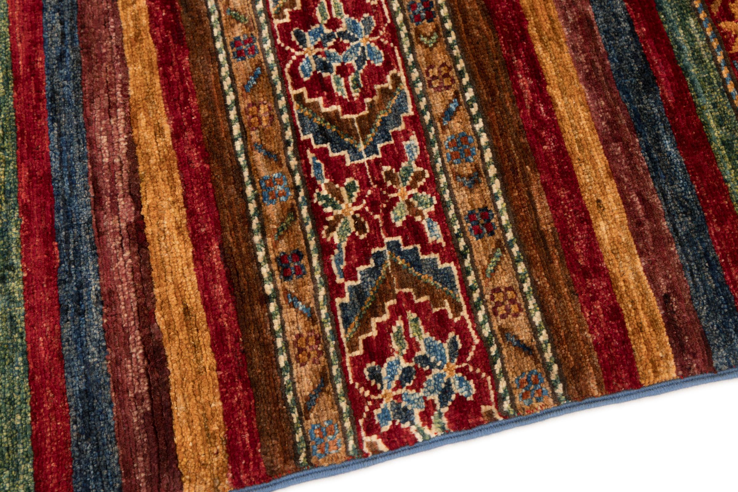 This Arijana Shaal carpet was knotted by hand in Pakistan. It promises a very high quality and thus offers long lasting pleasure. The pattern in stripes is varied and exciting. It was inspired by the well-known Moharamati design. If you find monochrome carpets too boring, you will certainly be delighted with this Arijana Shaal.