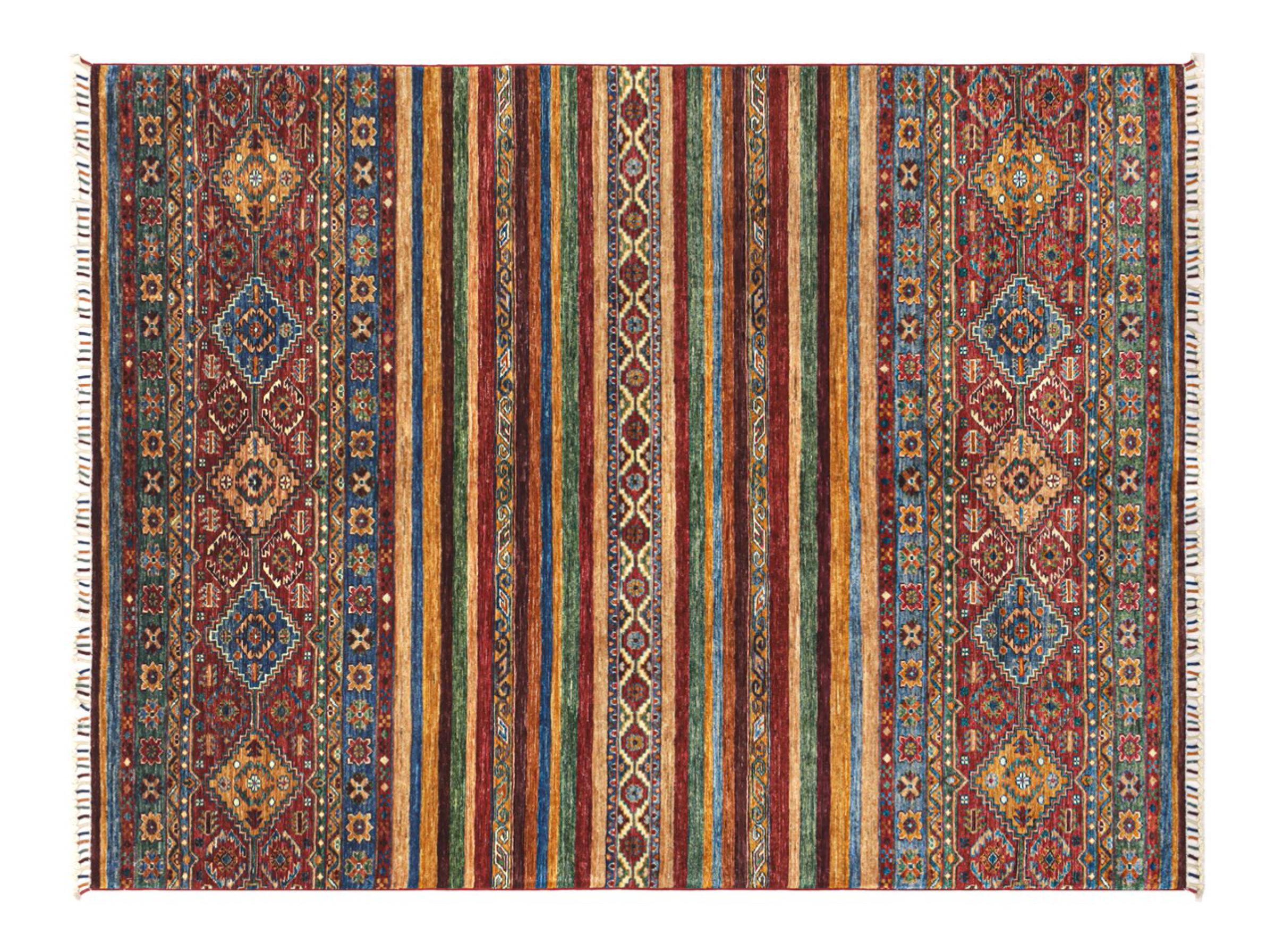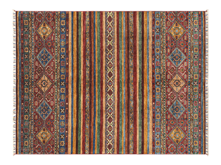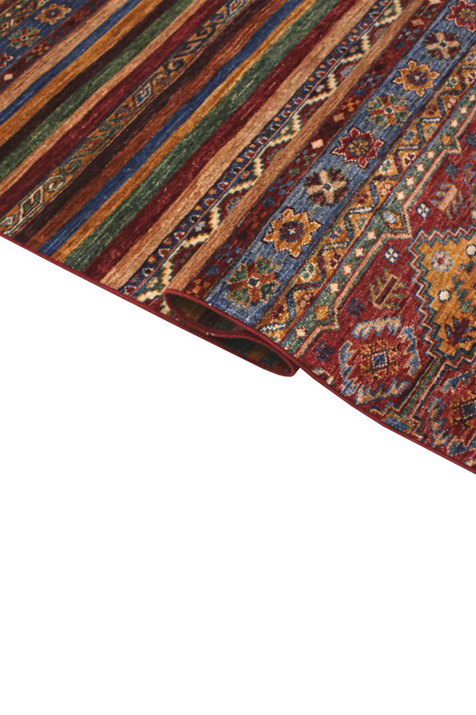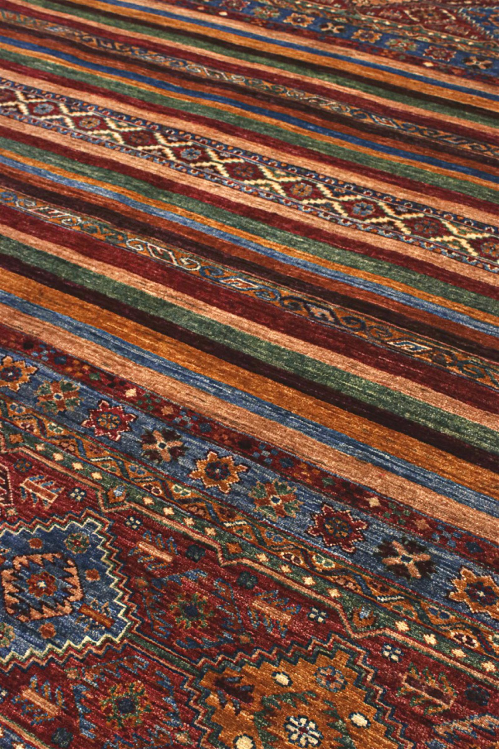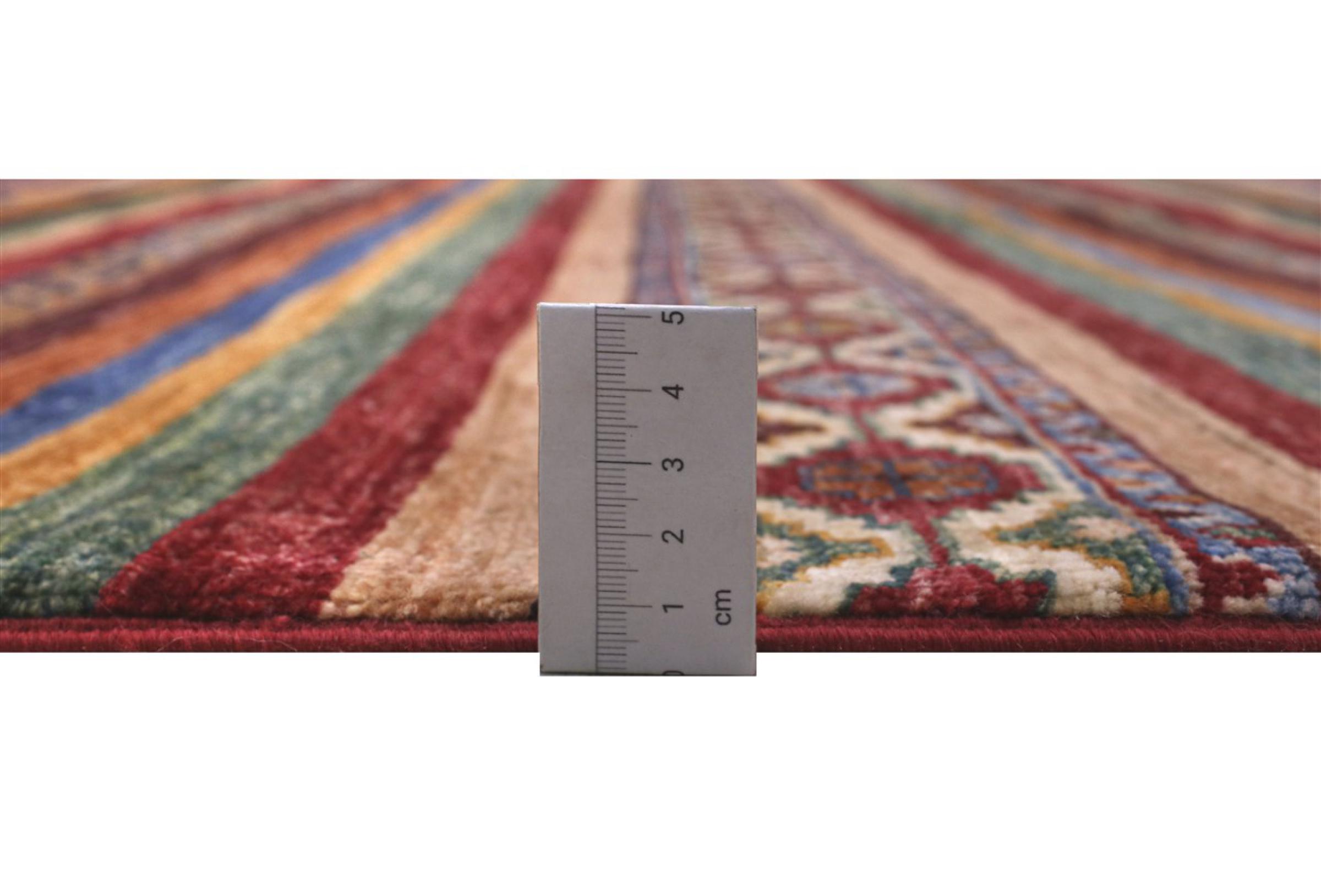 This Arijana Shaal carpet was knotted by hand in Pakistan. It promises a very high quality and thus offers long lasting pleasure. The pattern in stripes is varied and exciting. It was inspired by the well-known Moharamati design. If you find monochrome carpets too boring, you will certainly be delighted with this Arijana Shaal.