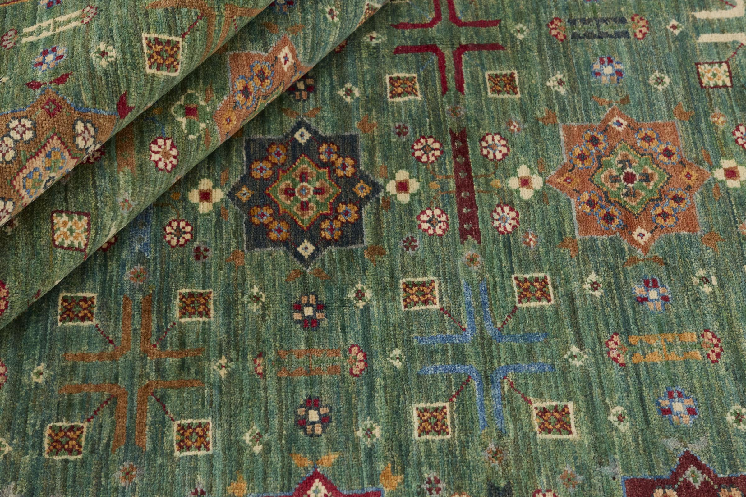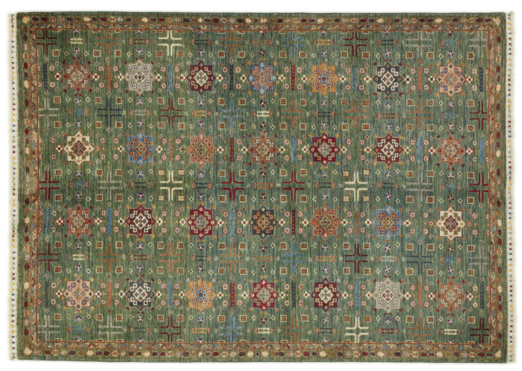 Carpet ID: 31028300584045 Size: 234x169 cm Thickness: ap. 5 mm Knot density: 144 000 - 180 000 / m² Manufacturing: Knotted by hand Pile: Handspun wool Warp: Cotton Origin: Pakistan Age: New Weight: ap. 14 kg In stock: Unique - Only 1 in stock