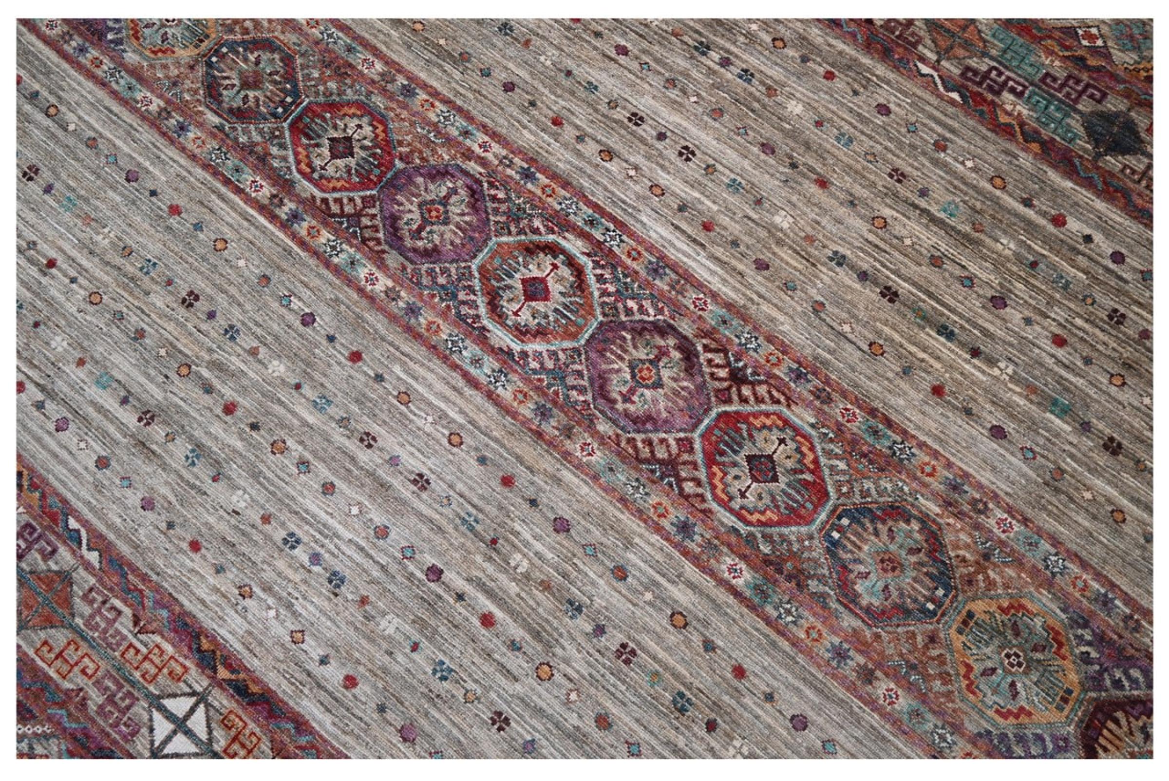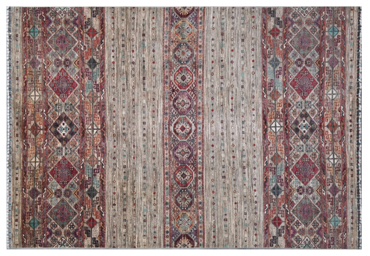 This Arijana Shaal carpet was knotted by hand in Pakistan. It promises a very high quality and thus offers long lasting pleasure. The pattern in stripes is varied and exciting. It was inspired by the well-known Moharamati design. If you find monochrome carpets too boring, you will certainly be delighted with this Arijana Shaal.