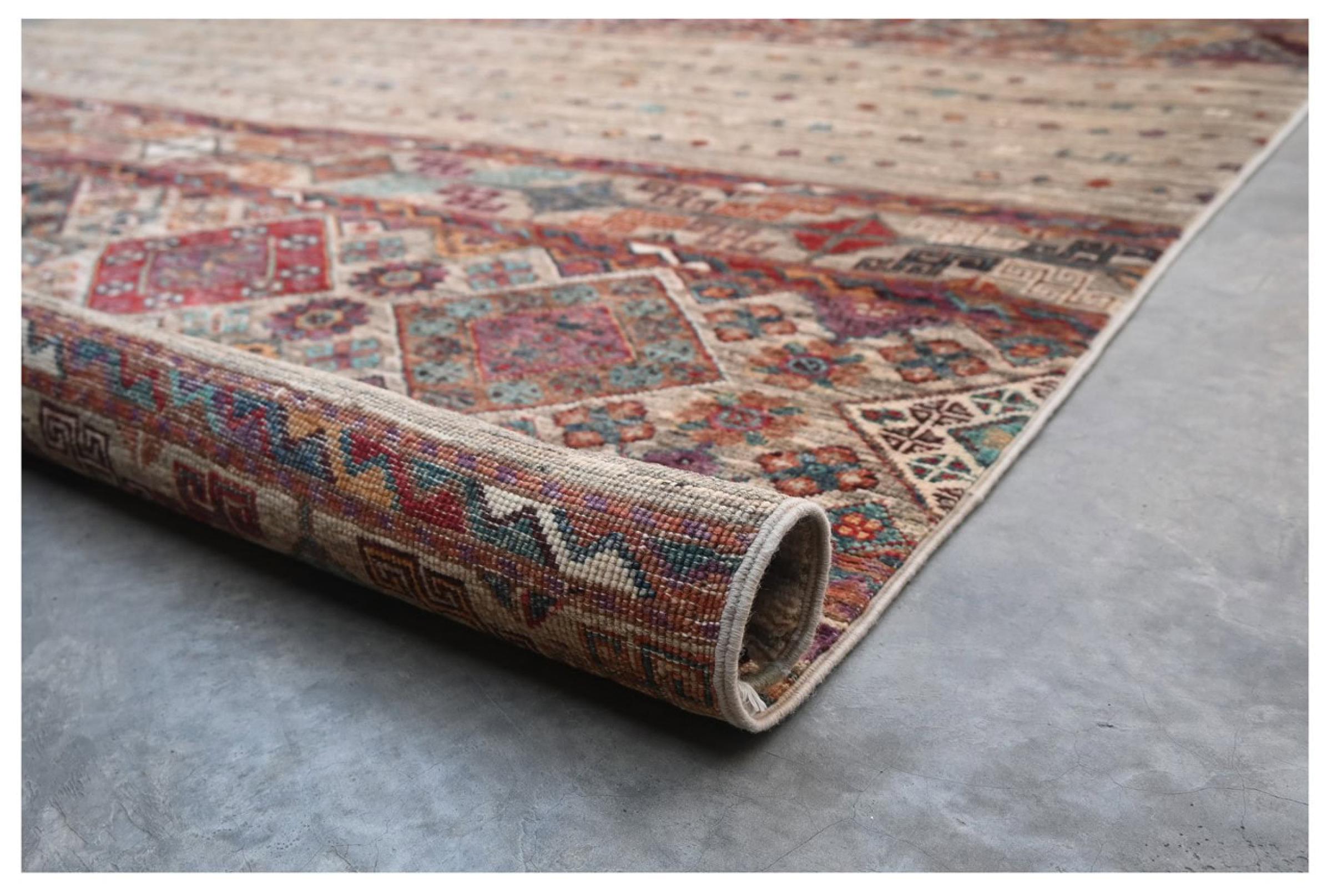 This rug is made of hand spun sheep wool of the highest quality. Especially in Iran (former Persia), Afghanistan and Pakistan wool is still spun by hand before the actual knotting of the rug begins. Wool has proven itself as a natural and extremely hard-wearing material over centuries. Among other things, it has dirt-repellent and heat-insulating properties. At the same time, wool is incomparably soft and has a natural shine.