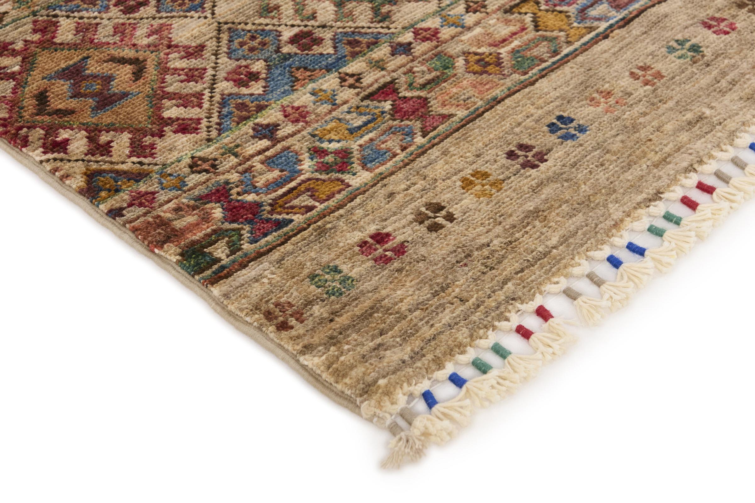 This rug is made of hand spun sheep wool of the highest quality. Especially in Iran (former Persia), Afghanistan and Pakistan wool is still spun by hand before the actual knotting of the rug begins. Wool has proven itself as a natural and extremely hard-wearing material over centuries. Among other things, it has dirt-repellent and heat-insulating properties. At the same time, wool is incomparably soft and has a natural shine.