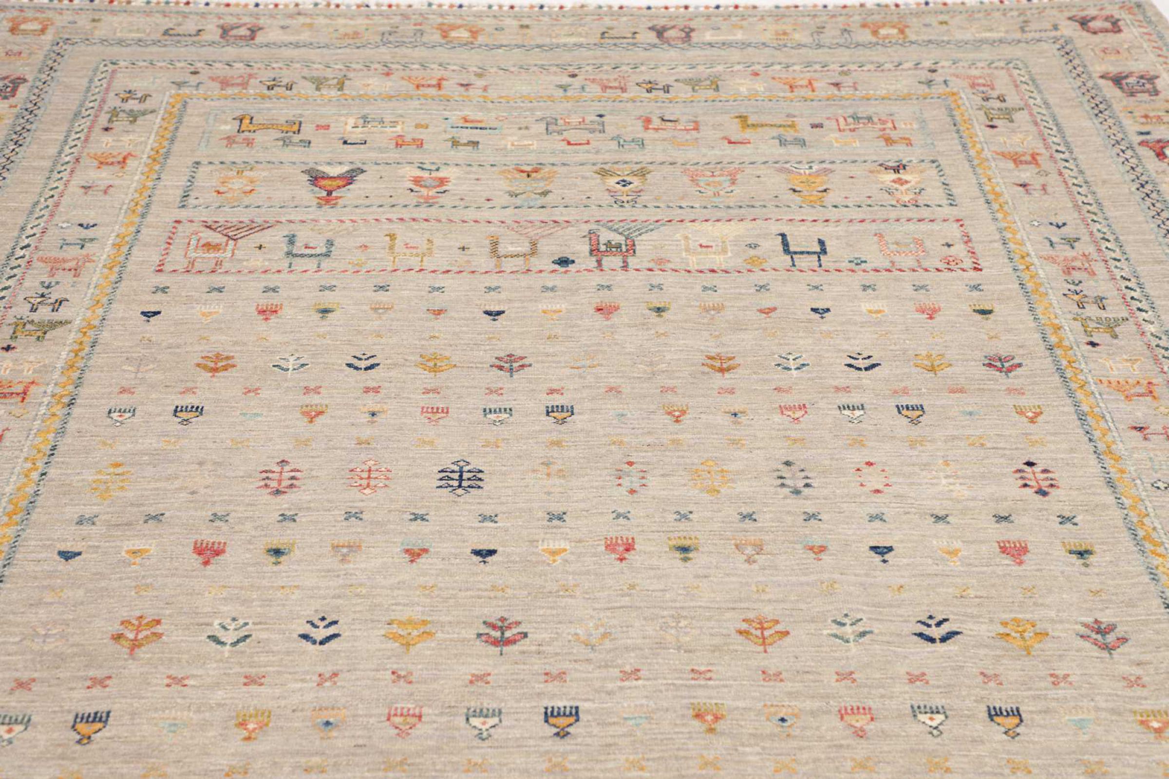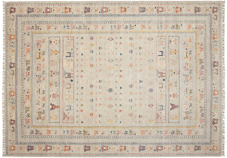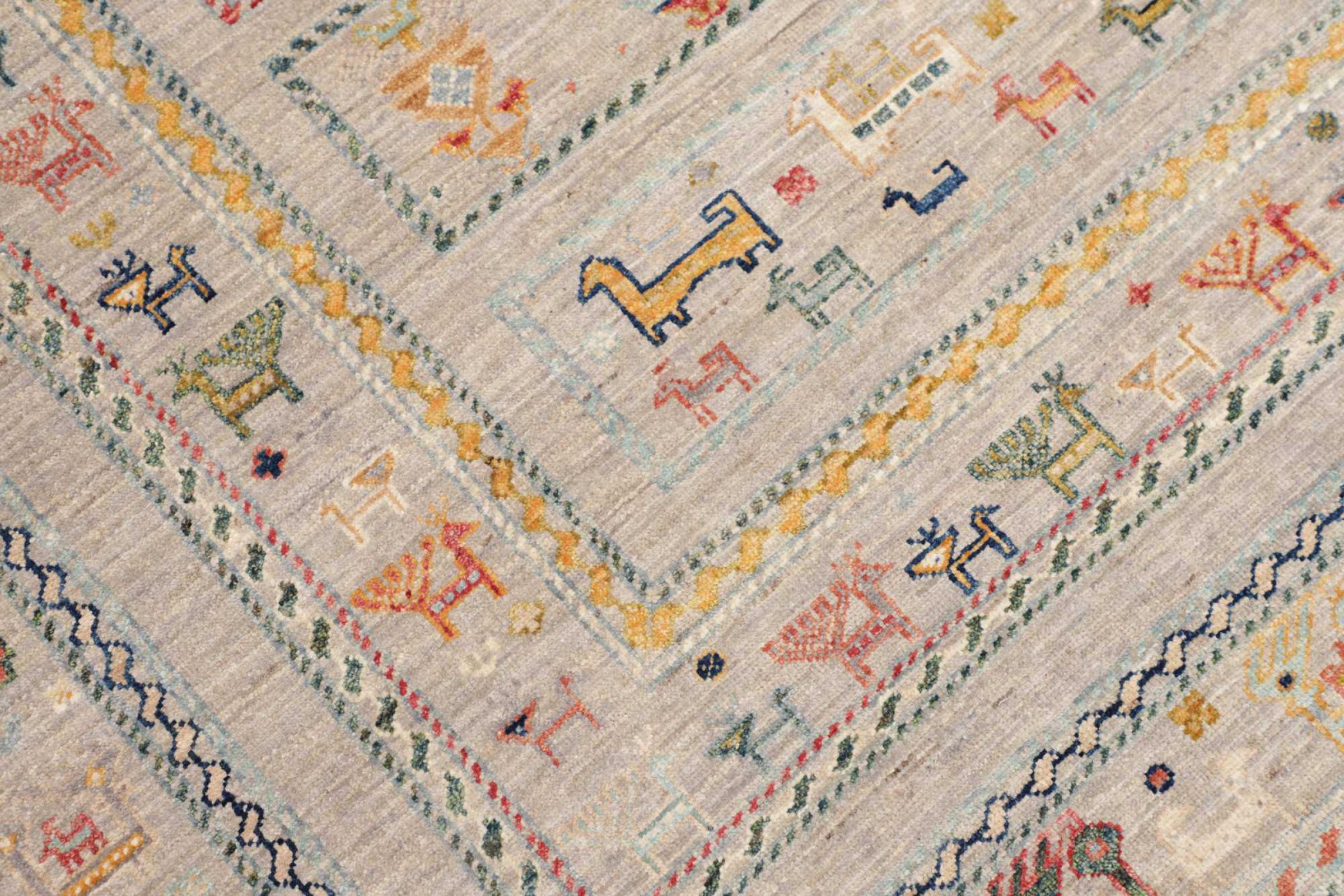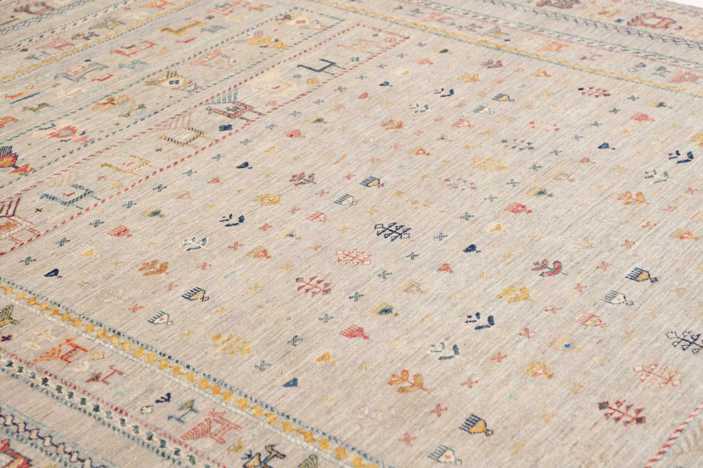 This rug is made of hand spun sheep wool of the highest quality. Especially in Iran (former Persia), Afghanistan and Pakistan wool is still spun by hand before the actual knotting of the rug begins. Wool has proven itself as a natural and extremely hard-wearing material over centuries. Among other things, it has dirt-repellent and heat-insulating properties. At the same time, wool is incomparably soft and has a natural shine.