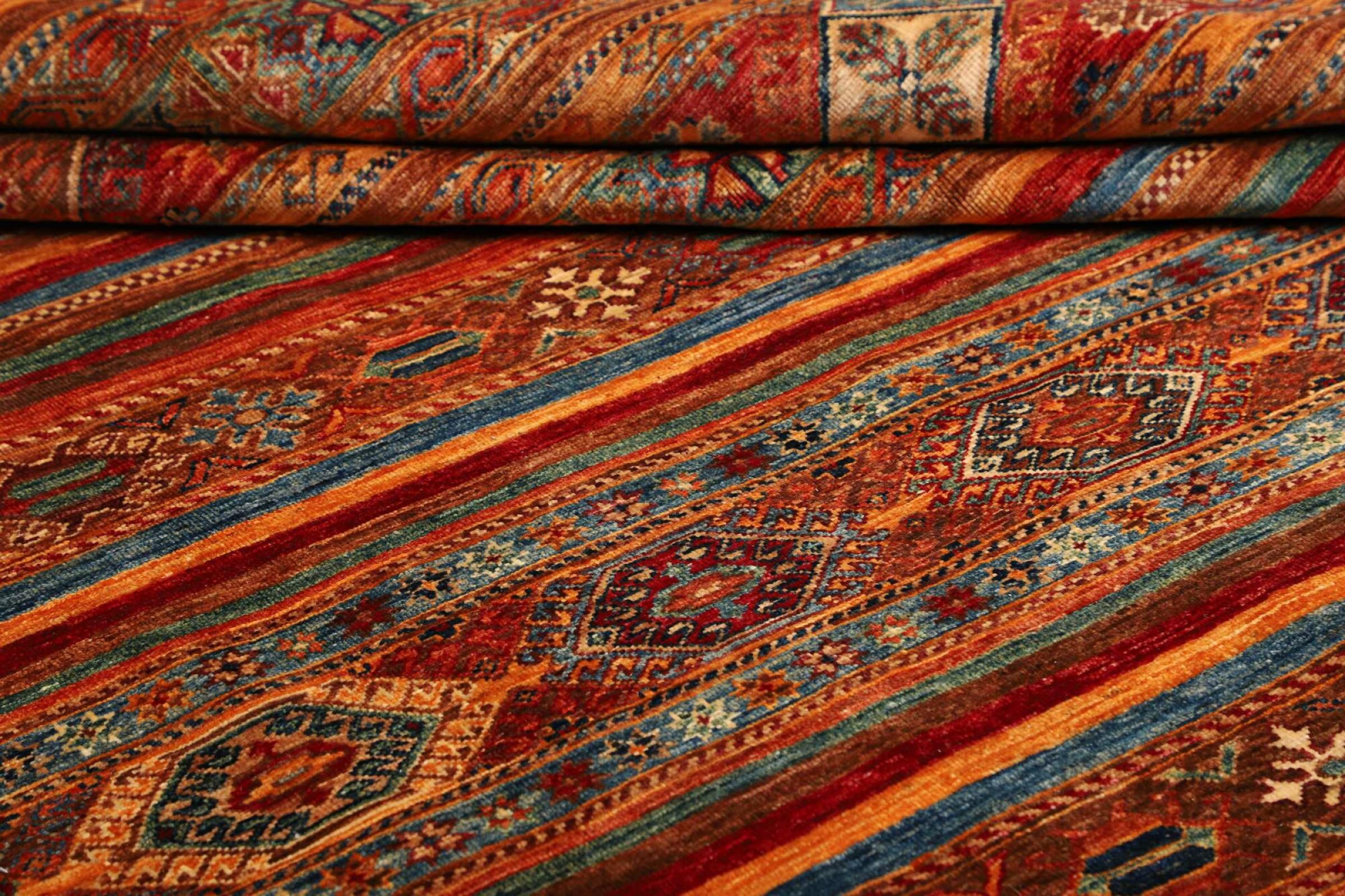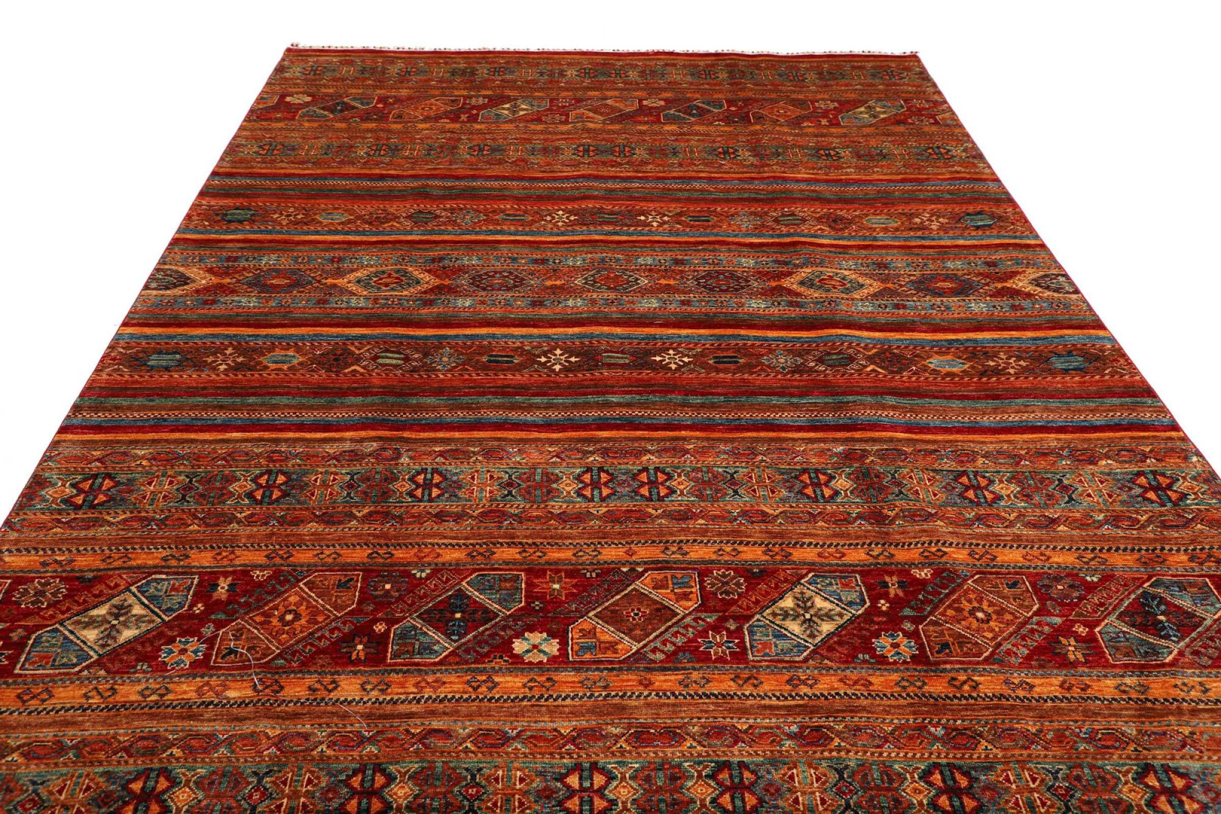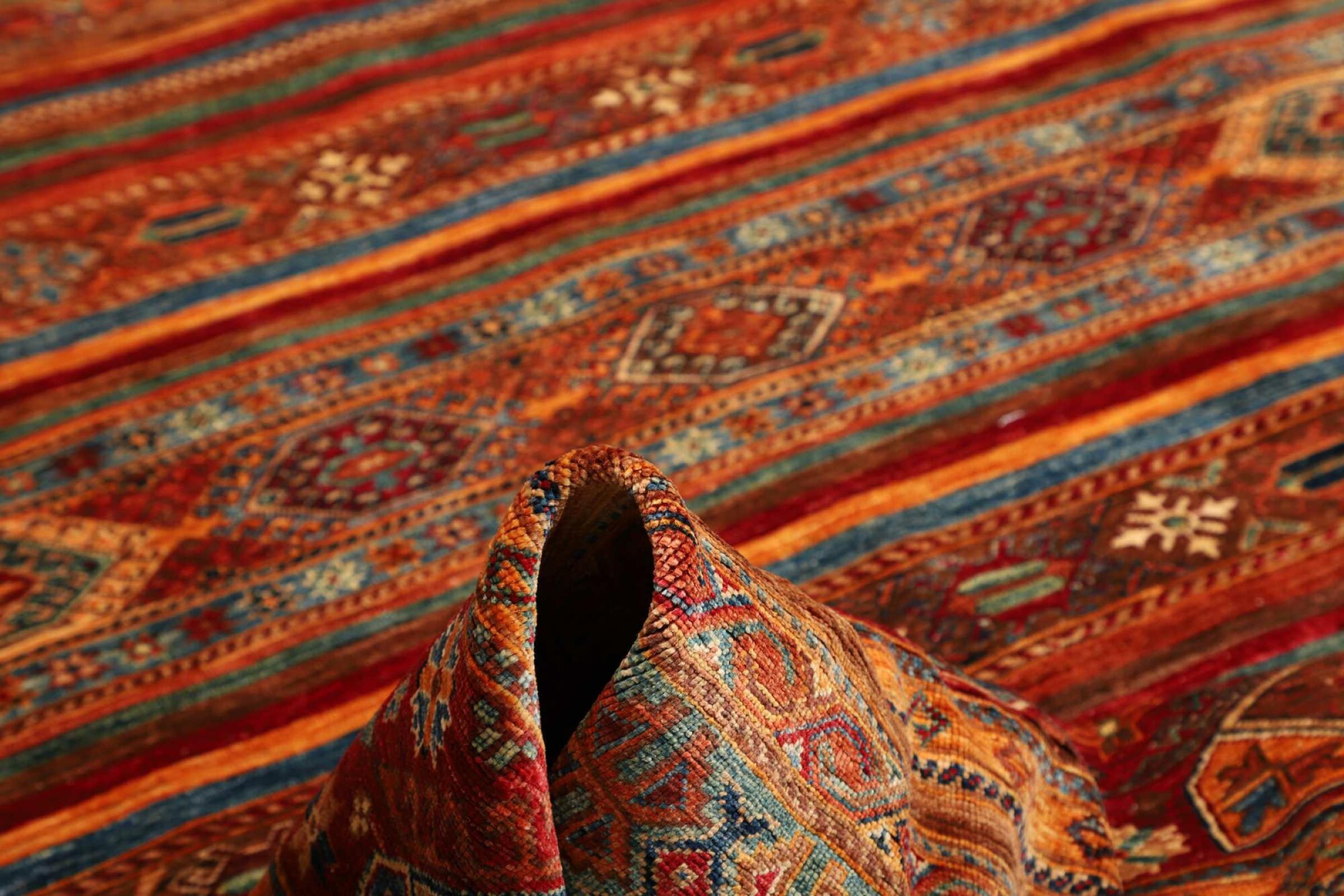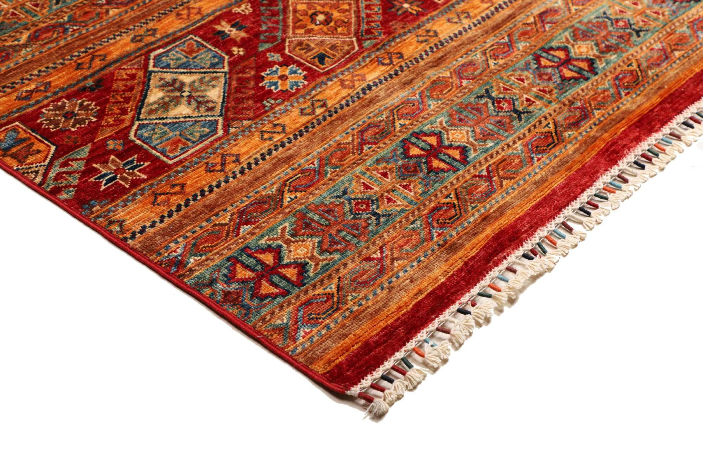 This Arijana Shaal carpet was knotted by hand in Pakistan. It promises a very high quality and thus offers long lasting pleasure. The pattern in stripes is varied and exciting. It was inspired by the well-known Moharamati design. If you find monochrome carpets too boring, you will certainly be delighted with this Arijana Shaal.