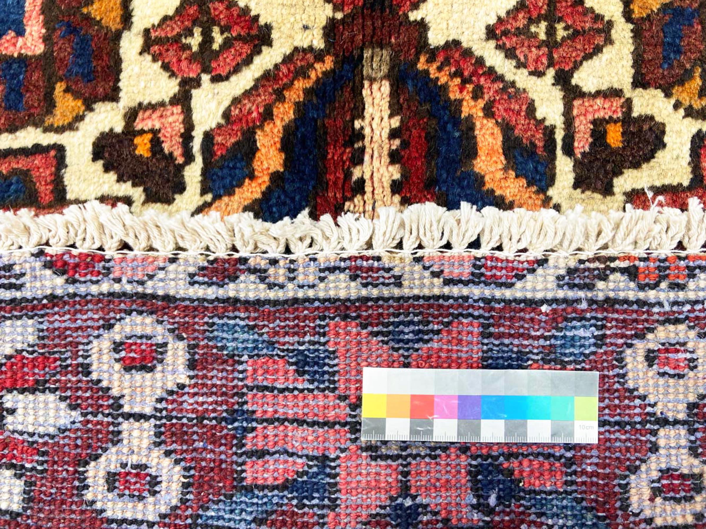 This Persian Bakhtiari was hand-knotted by nomads of the Bakhtiari tribe. This Persian carpet plays with the colours of the Orient in the most beautiful patterns. The design of its ornaments is inspired by Persian gardens. Over the years, the so-called traditional garden design has gained great popularity in the western world. Its high knotting density in combination with the strong yarn promises a long-lasting pleasure of Persian carpet art.