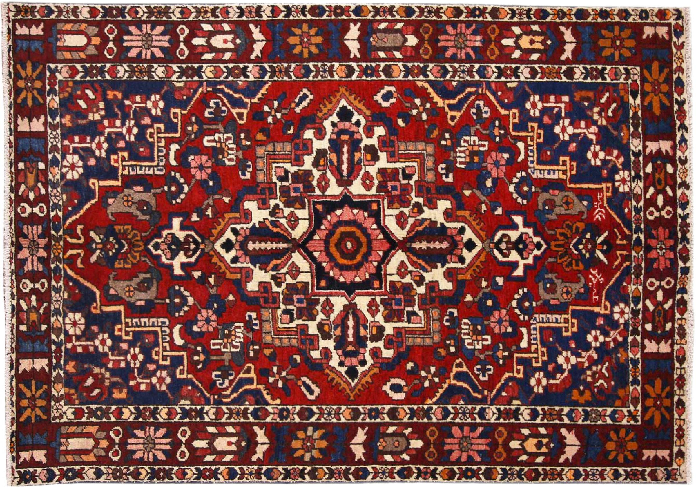 Carpet ID: 31901000909058 Size: 207x144 cm Thickness: ap. 12 mm Knot density: 128 000 - 160 000 / m² Manufacturing: Knotted by hand Pile: Handspun wool Warp: Cotton Origin: Persia Age: New Weight: ap. 12 kg Also know as Baktjar In stock: Unique - Only 1 in stock