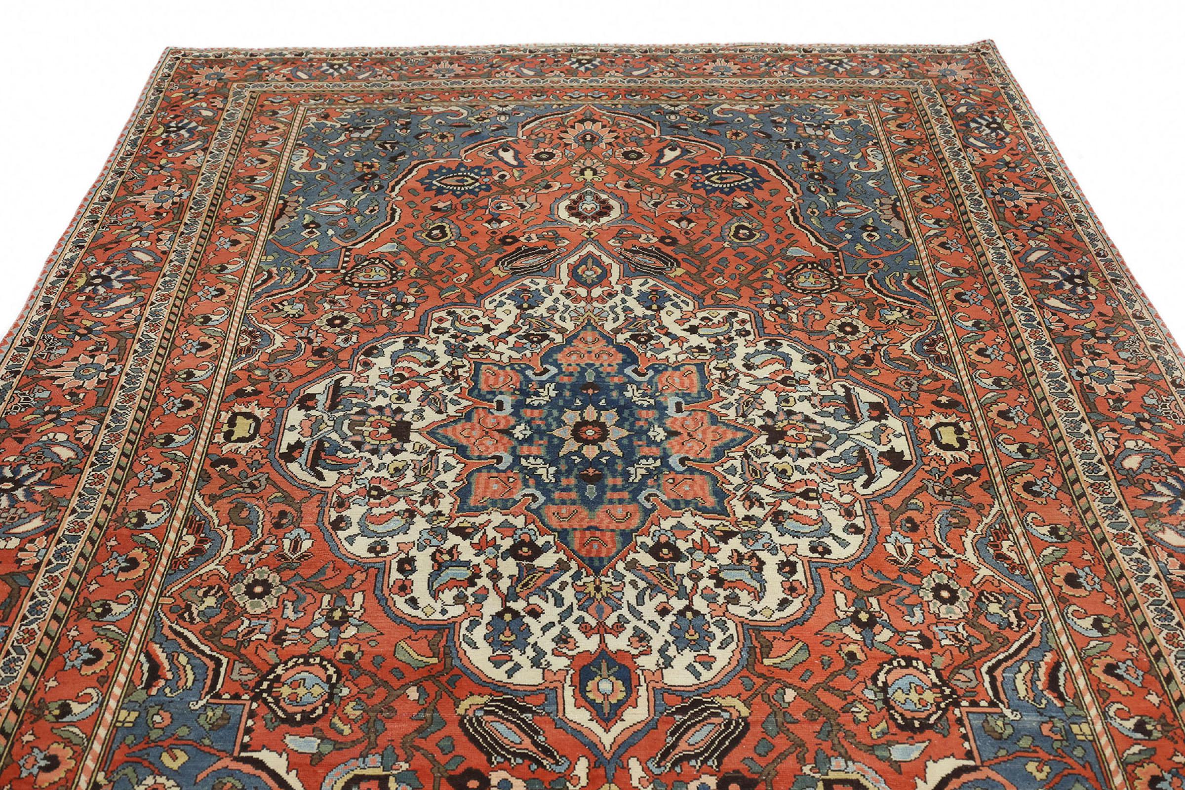 Carpet ID: 316284008774767 Size: 319x202 cm Thickness: ap. 12 mm Knot density: 160 000 - 200 000 / m² Manufacturing: Knotted by hand Pile: Handspun wool Warp: Cotton Condition / Conservation Perfect Origin: Persia Age: Antique, over 80 years Weight: ap. 26 kg Also know as Baktjar In stock: Unique - Only 1 in stock