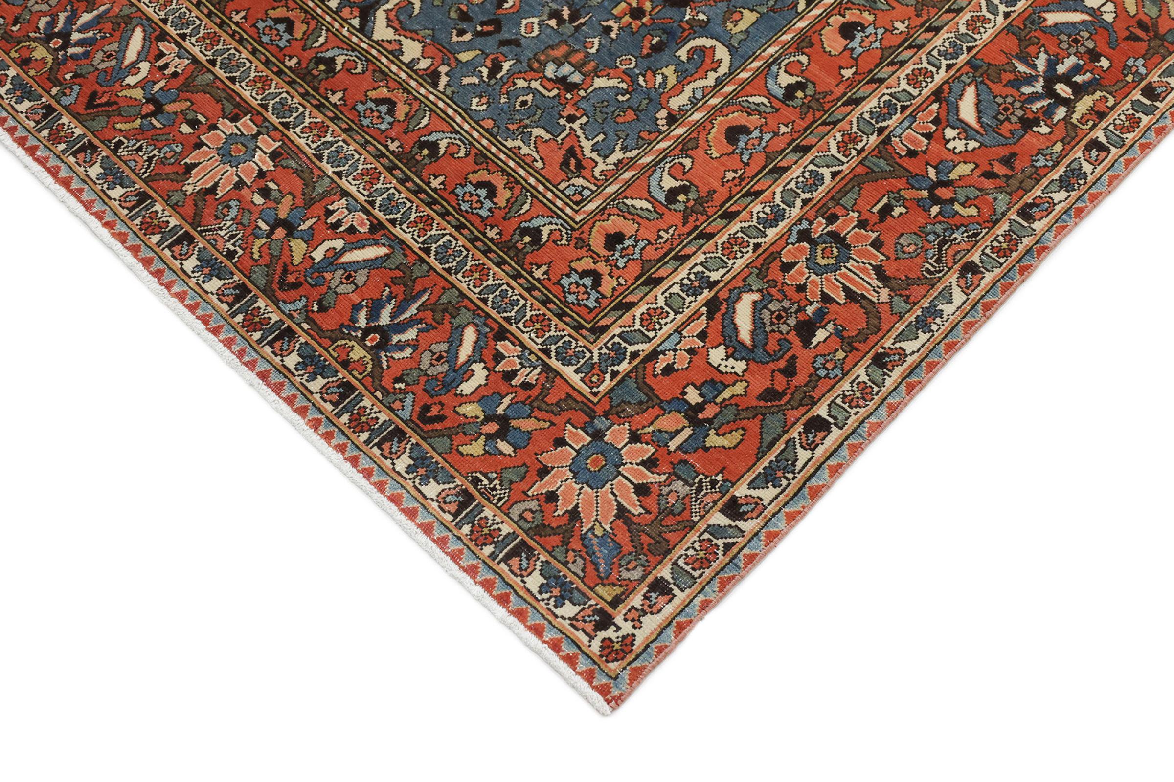 This Persian Bakhtiari was hand-knotted by nomads of the Bakhtiari tribe. This Persian carpet plays with the colours of the Orient in the most beautiful patterns. The design of its ornaments is inspired by Persian gardens. Over the years, the so-called traditional garden design has gained great popularity in the western world. Its high knotting density in combination with the strong yarn promises a long-lasting pleasure of Persian carpet art.