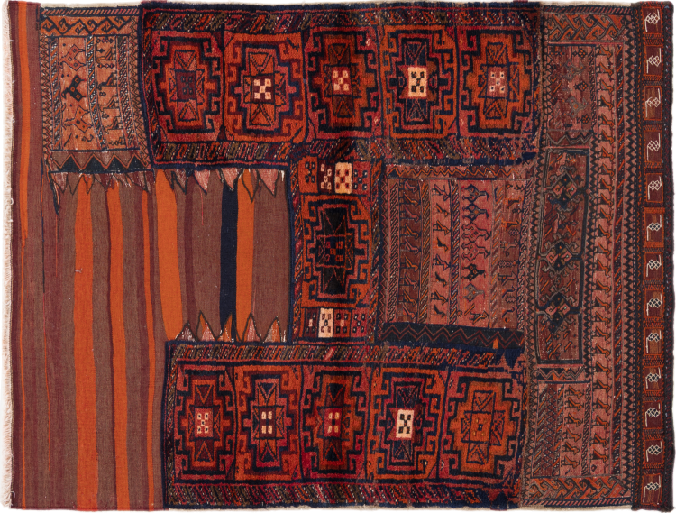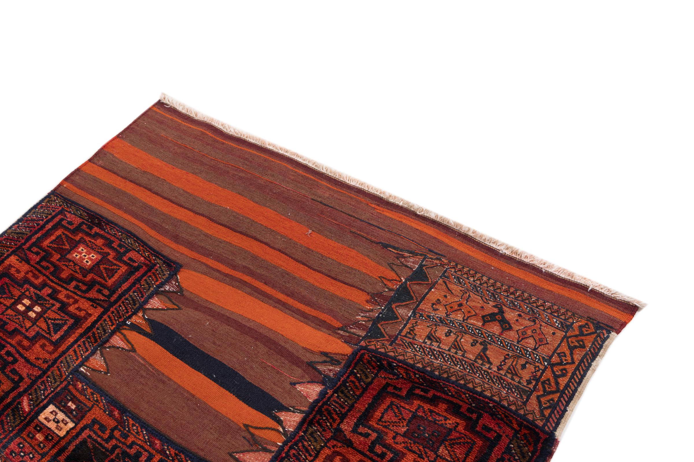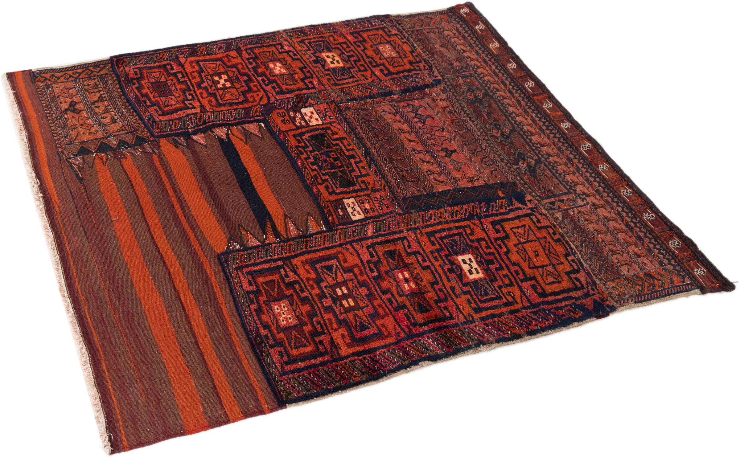 This Baluch carpet is a wonderful example of true nomadic art. The Persian carpet, made in the Iranian-Afghan border region, is convincing thanks to its dense, asymmetrical knotting. Lively patterns make it a real feast for the eyes. Typical are rather dark shades that spread a pleasant warmth. Its beautiful natural yarn conveys quality and makes it extremely durable. Typical for this carpet are the straight-lined patterns that make it an unmistakable nomadic carpet.