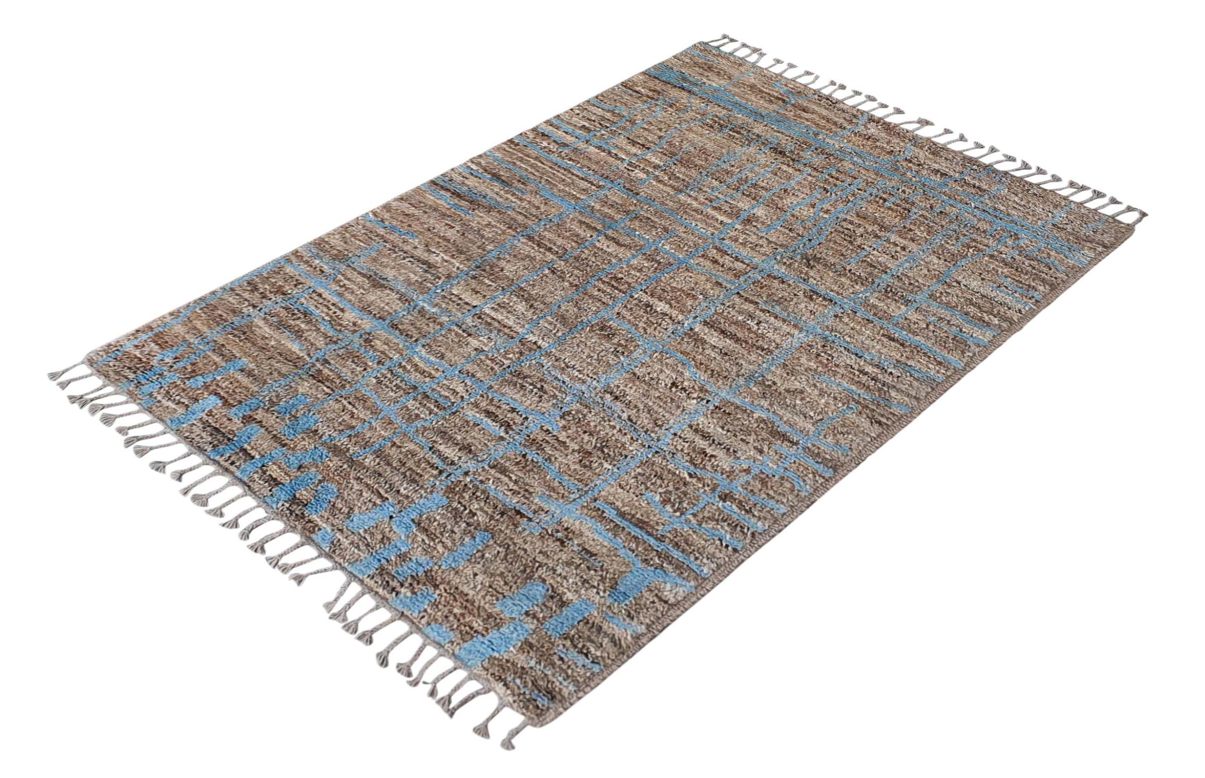 Carpet ID: 283953005616996 Size: 189x129 cm Thickness: ap. 25 mm Knot density: 96 000 - 120 000 / m² Manufacturing: Knotted by hand Pile: Handspun wool Warp: Cotton Origin: Pakistan Age: New Weight: ap. 10 kg Also know as Beni Ourain, Beni Ouarain, Boucherouite In stock: Unique - Only 1 in stock