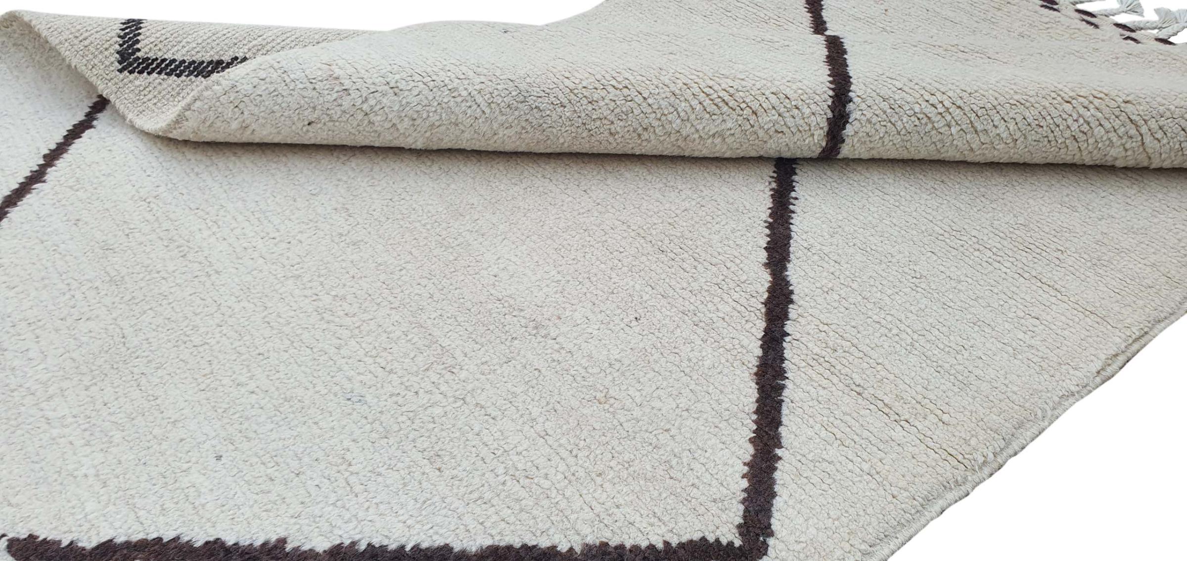 This Berber Moroccan style rug is inspired by traditional Berber art and impresses with its clear patterns and modern design. It brings structure, warmth, and a timeless style to contemporary living spaces.