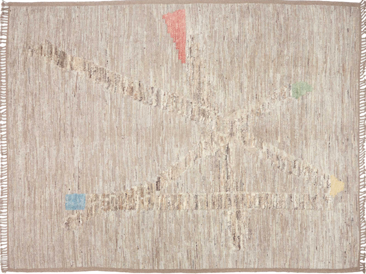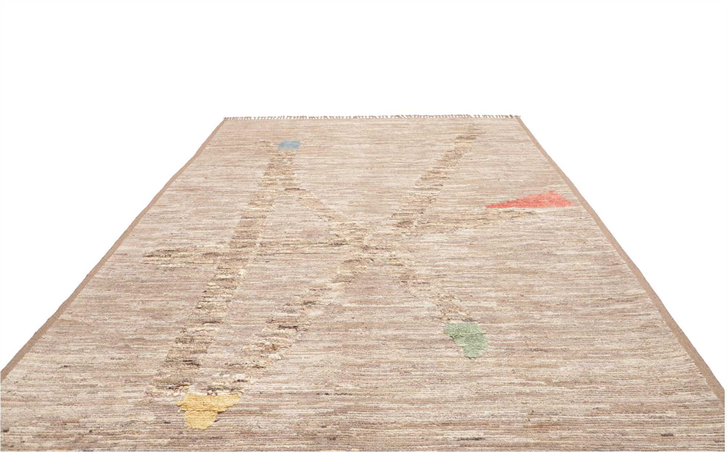 Carpet ID: 310661005709983 Size: 356x274 cm Thickness: ap. 20 mm Knot density: 96 000 - 120 000 / m² Manufacturing: Knotted by hand Pile: Handspun wool Warp: Sheep wool Origin: Pakistan Age: New Weight: ap. 39 kg Also know as Beni Ourain, Beni Ouarain, Boucherouite In stock: Unique - Only 1 in stock