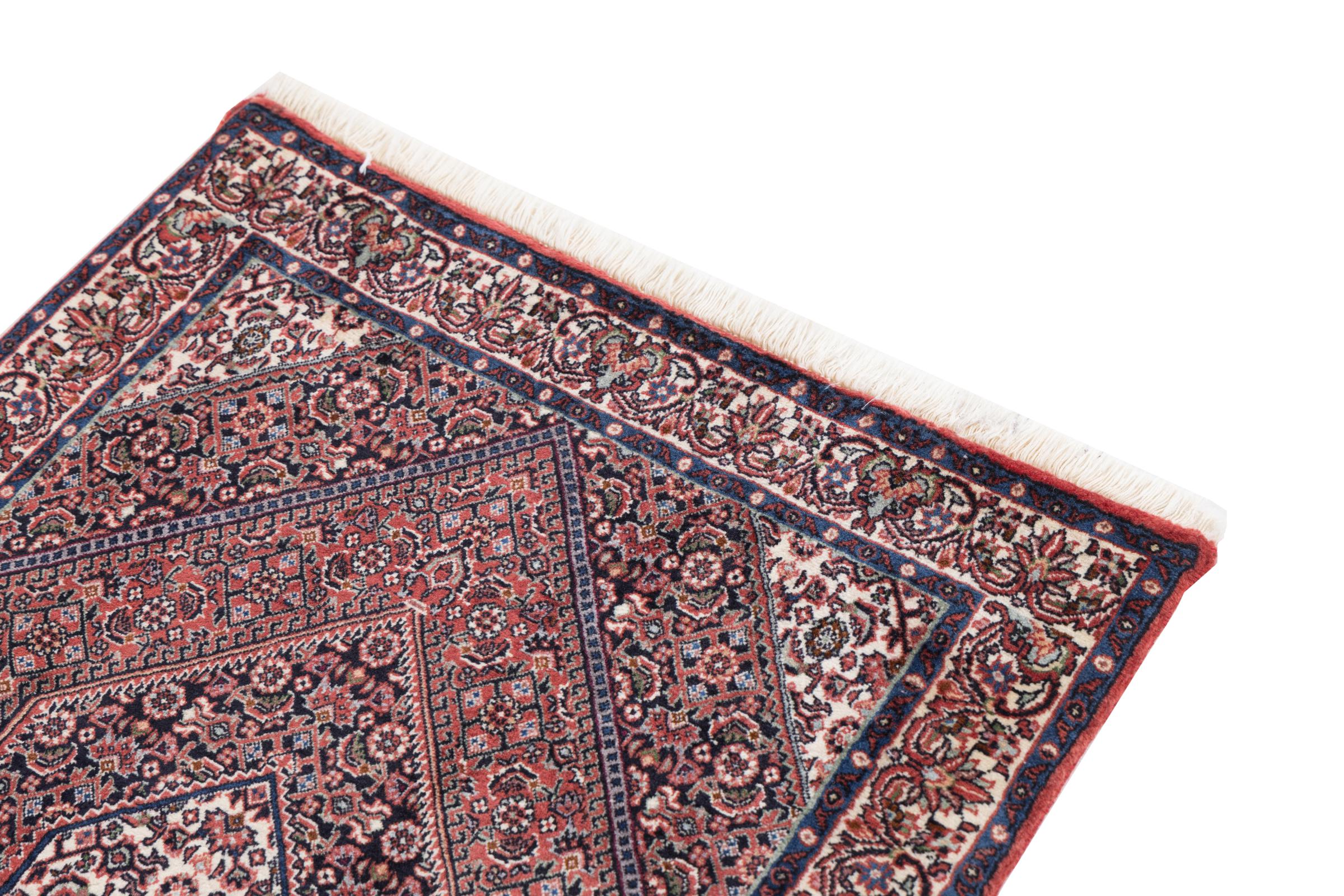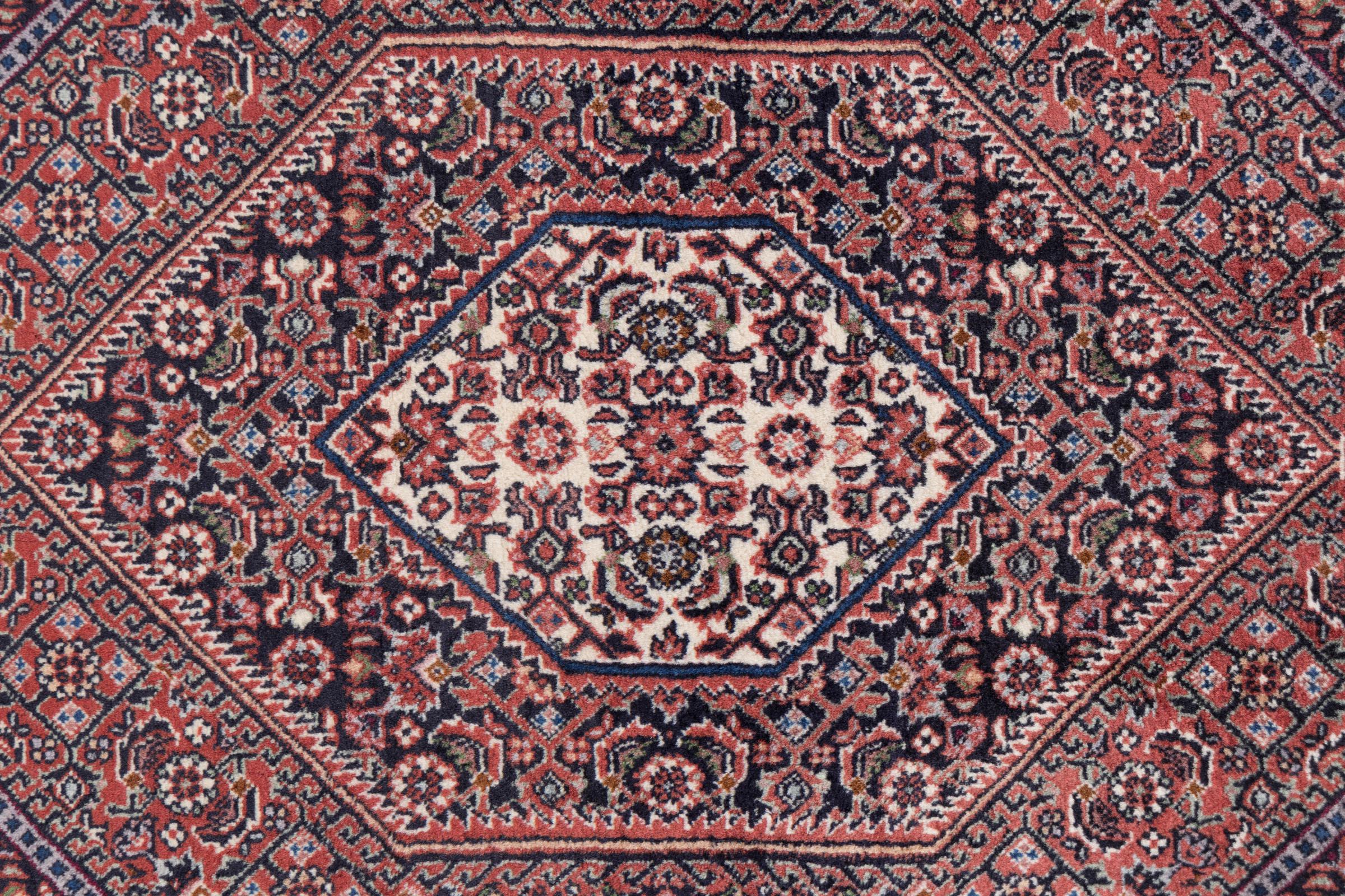 This Persian carpet has been crafted in a small Kurdish town in Western Persia. Bidjar carpets stand for high quality and contemporary design. With geometric patterns and ornaments it is highly popular even for modern interior concepts. Additionally, its compact pile is popular due to its resilience and robustness. This Persian rug made by a Kurdish minority is a great and long-lasting choice you wouldn't want to miss anymore.