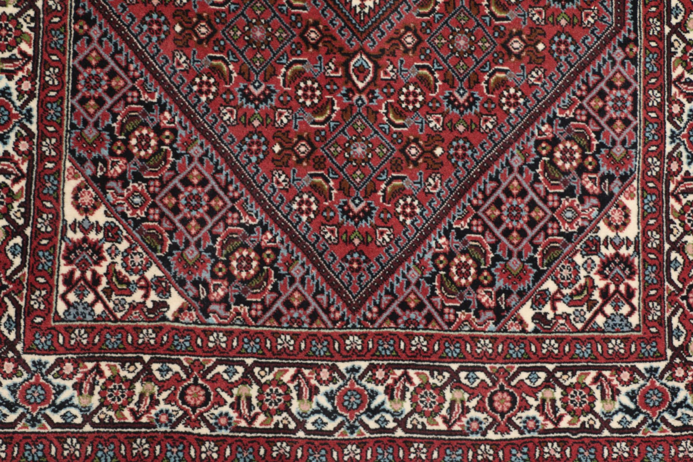 This Persian carpet has been crafted in a small Kurdish town in Western Persia. Bidjar carpets stand for high quality and contemporary design. With geometric patterns and ornaments it is highly popular even for modern interior concepts. Additionally, its compact pile is popular due to its resilience and robustness. This Persian rug made by a Kurdish minority is a great and long-lasting choice you wouldn't want to miss anymore.