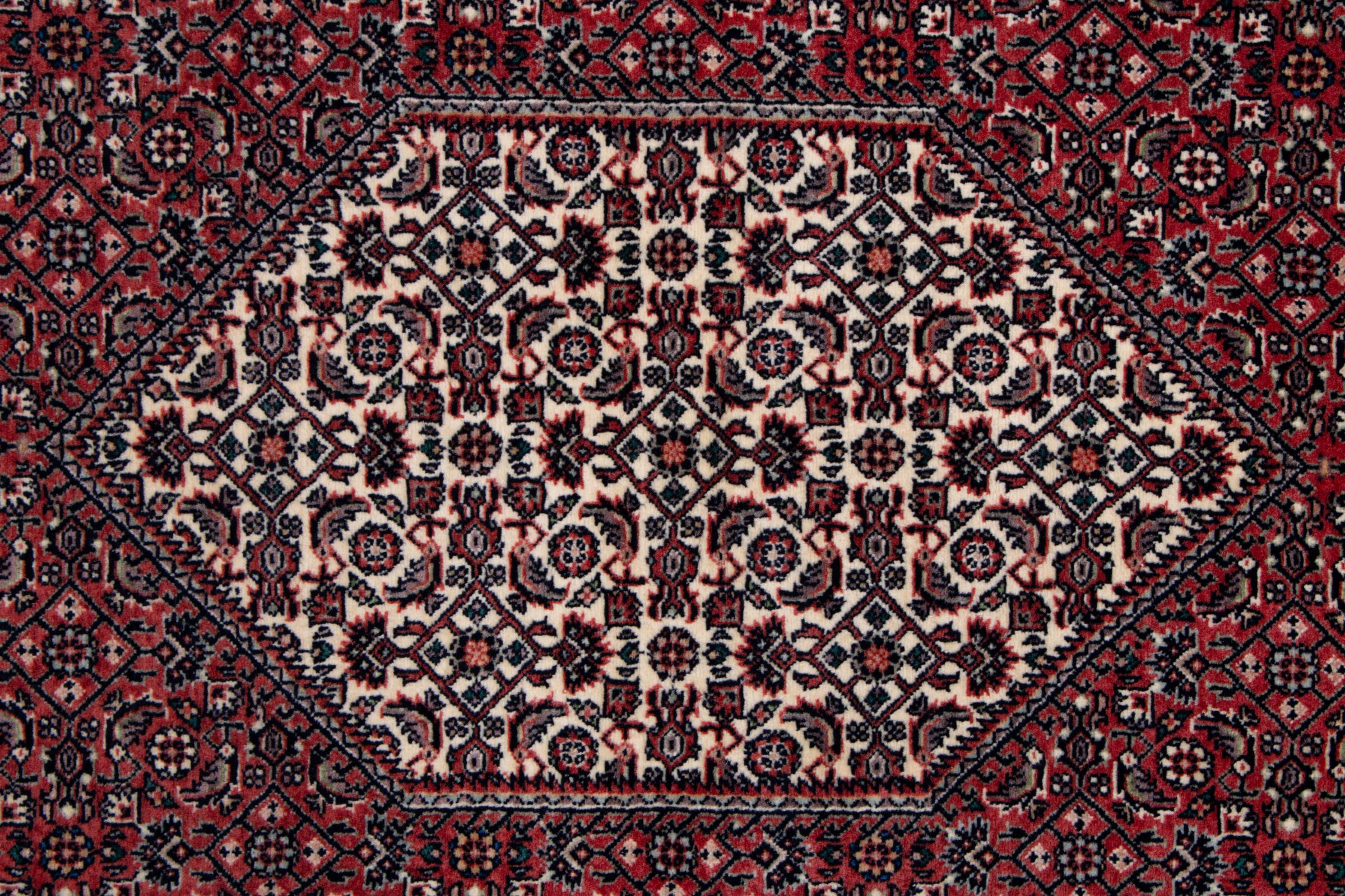 This Persian carpet has been crafted in a small Kurdish town in Western Persia. Bidjar carpets stand for high quality and contemporary design. With geometric patterns and ornaments it is highly popular even for modern interior concepts. Additionally, its compact pile is popular due to its resilience and robustness. This Persian rug made by a Kurdish minority is a great and long-lasting choice you wouldn't want to miss anymore.
