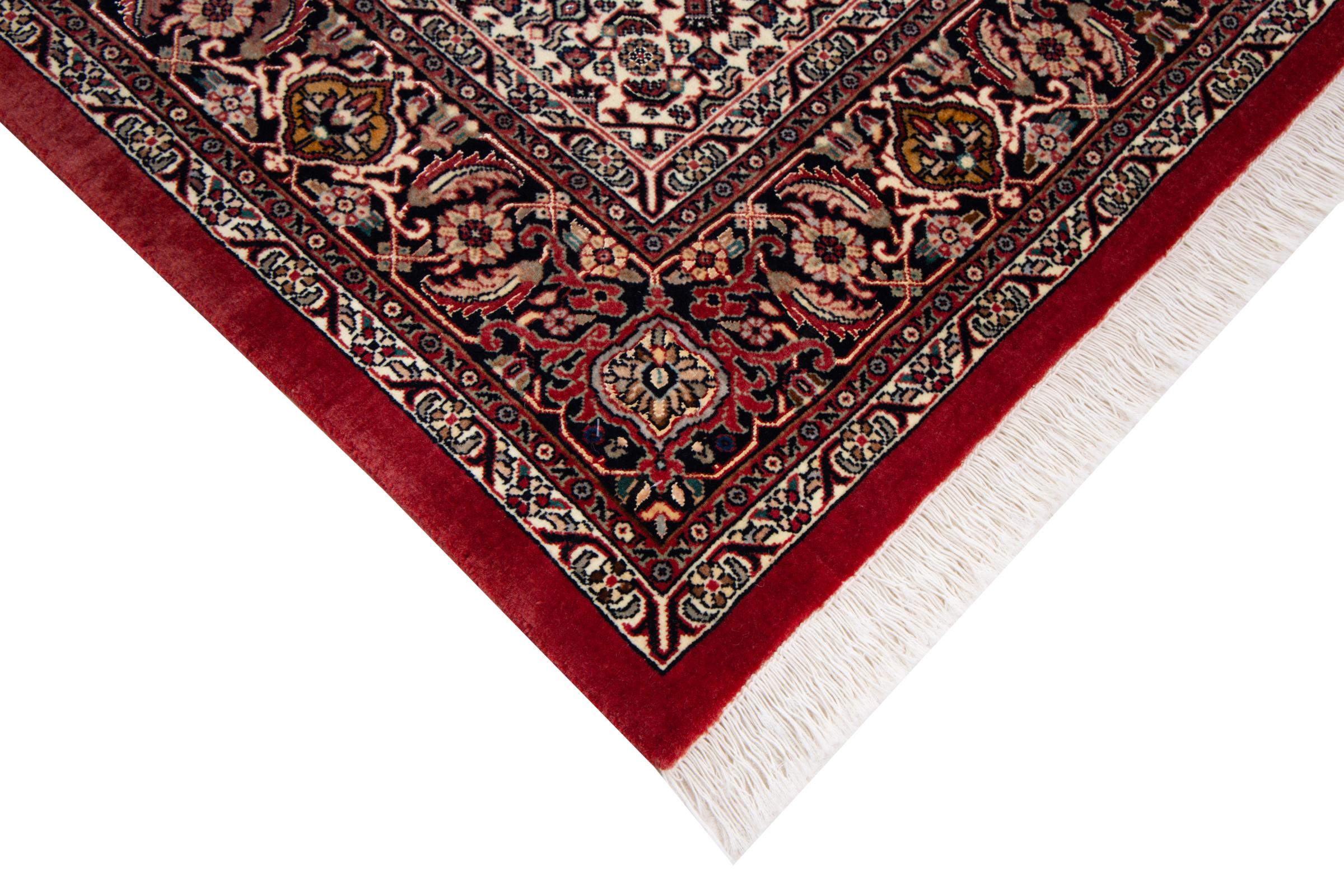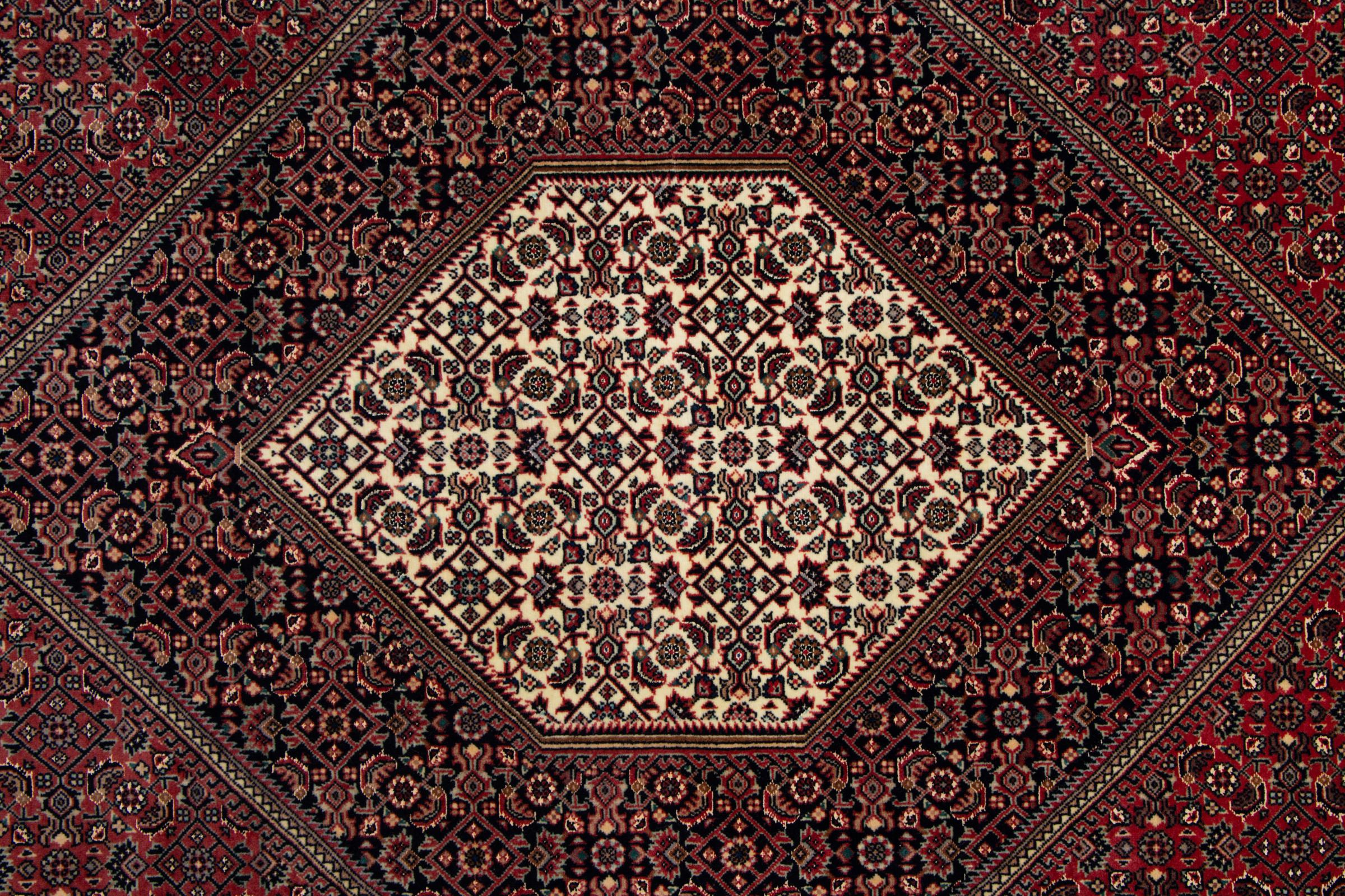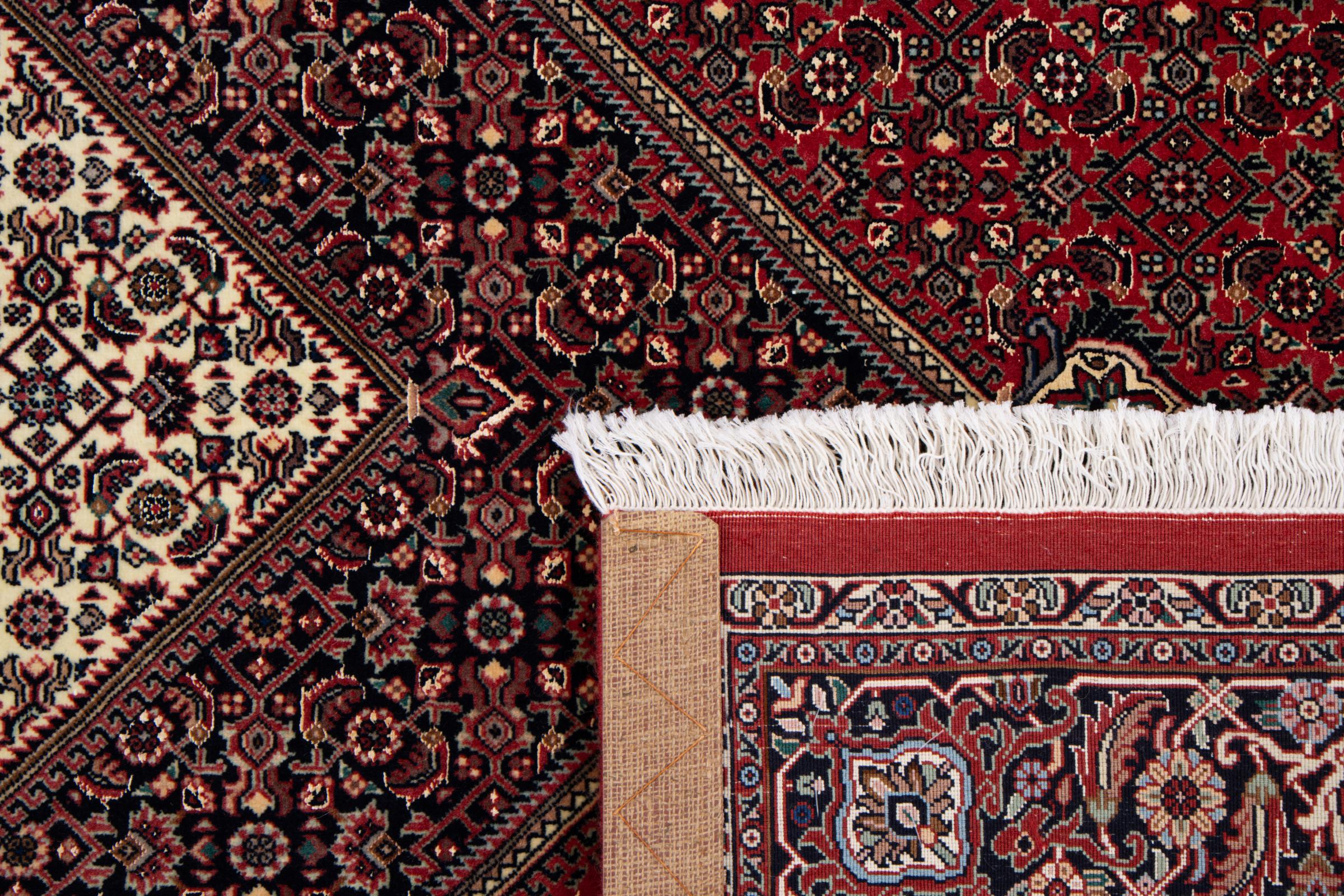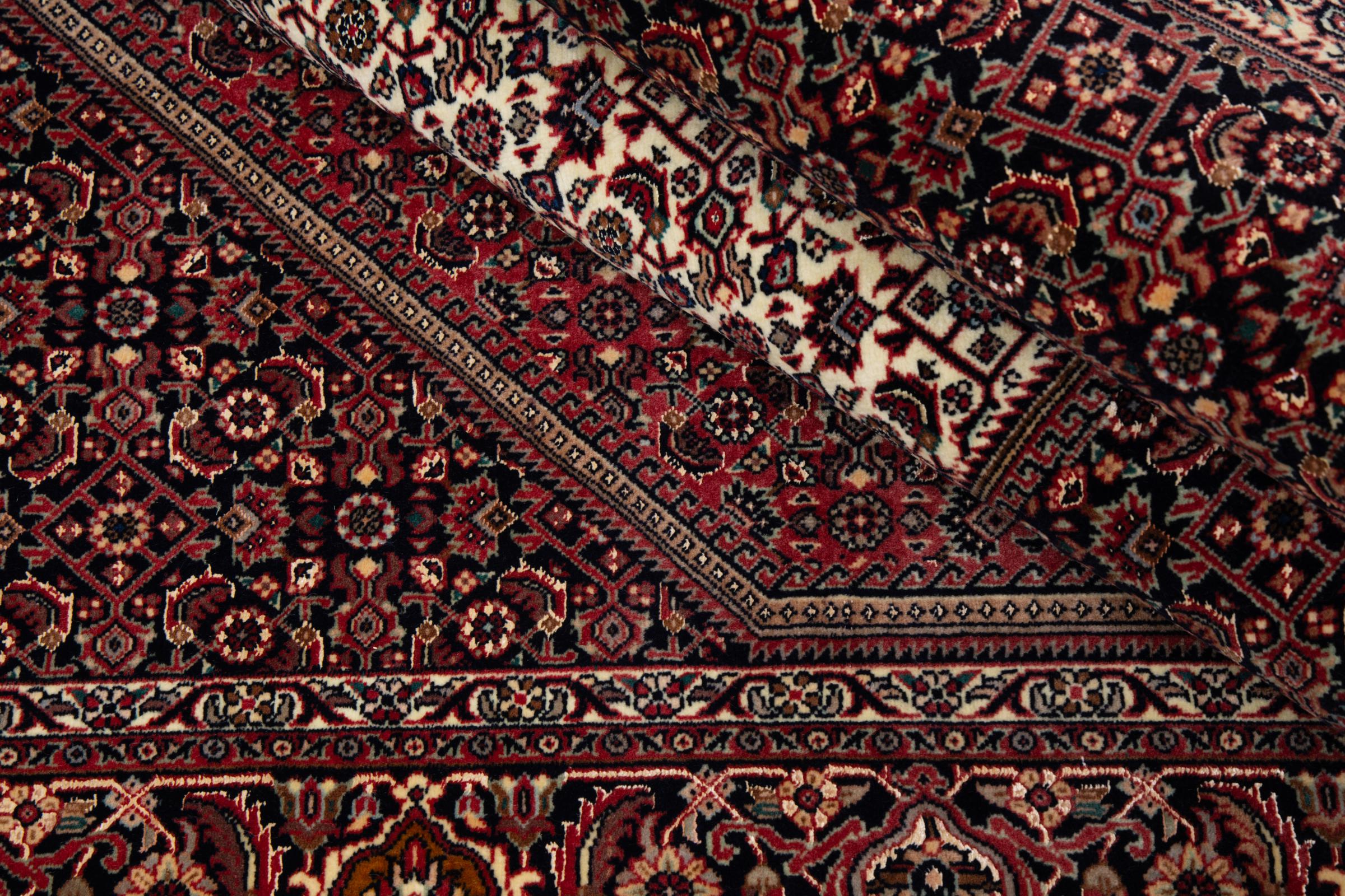 This Persian carpet has been crafted in a small Kurdish town in Western Persia. Bidjar carpets stand for high quality and contemporary design. With geometric patterns and ornaments it is highly popular even for modern interior concepts. Additionally, its compact pile is popular due to its resilience and robustness. This Persian rug made by a Kurdish minority is a great and long-lasting choice you wouldn't want to miss anymore.