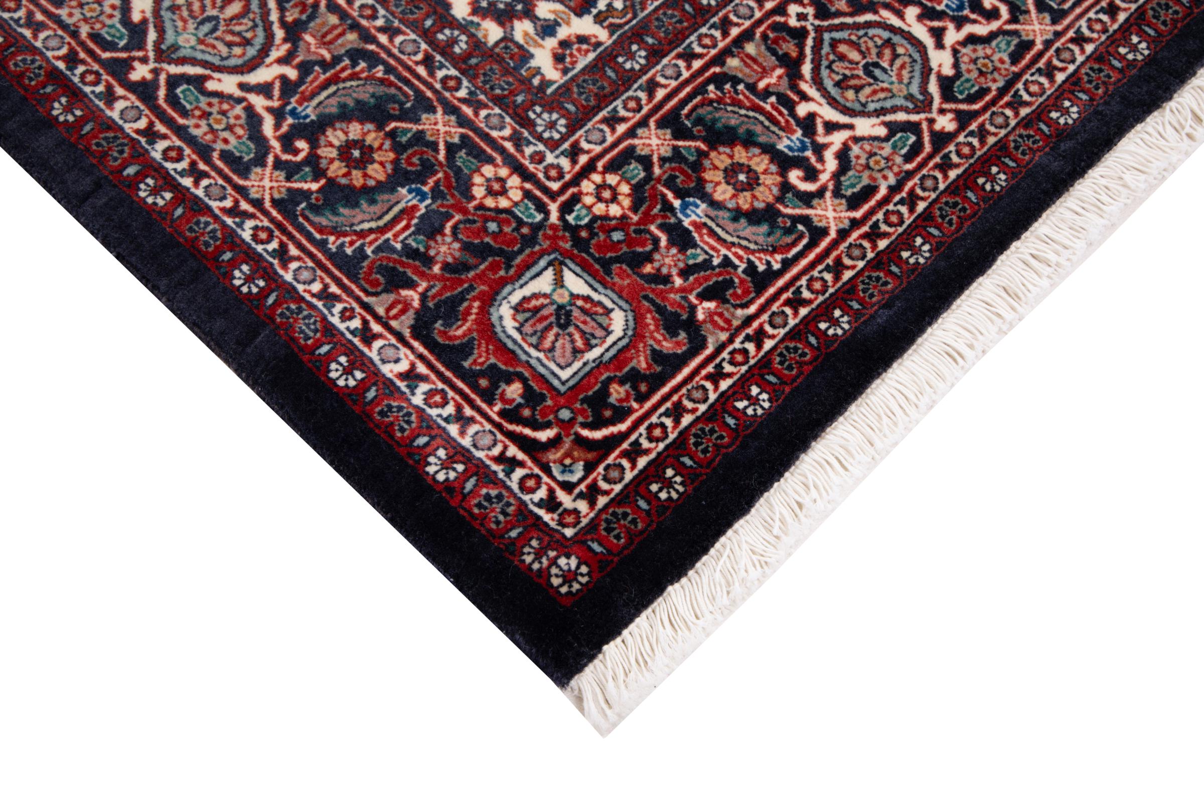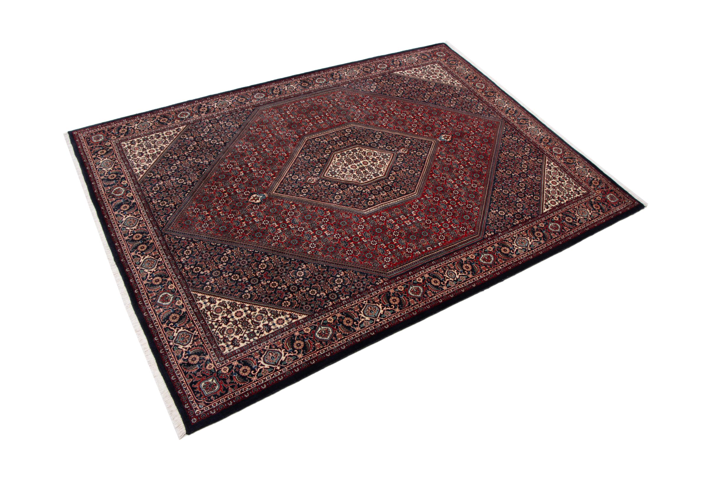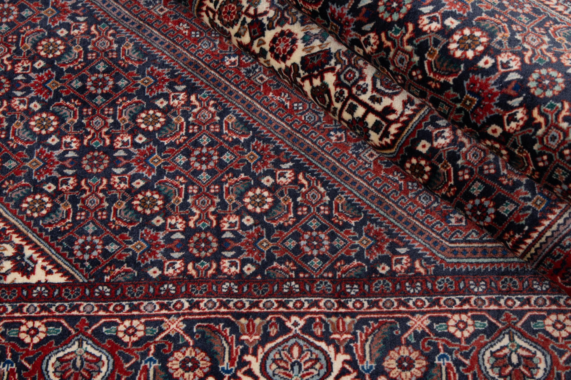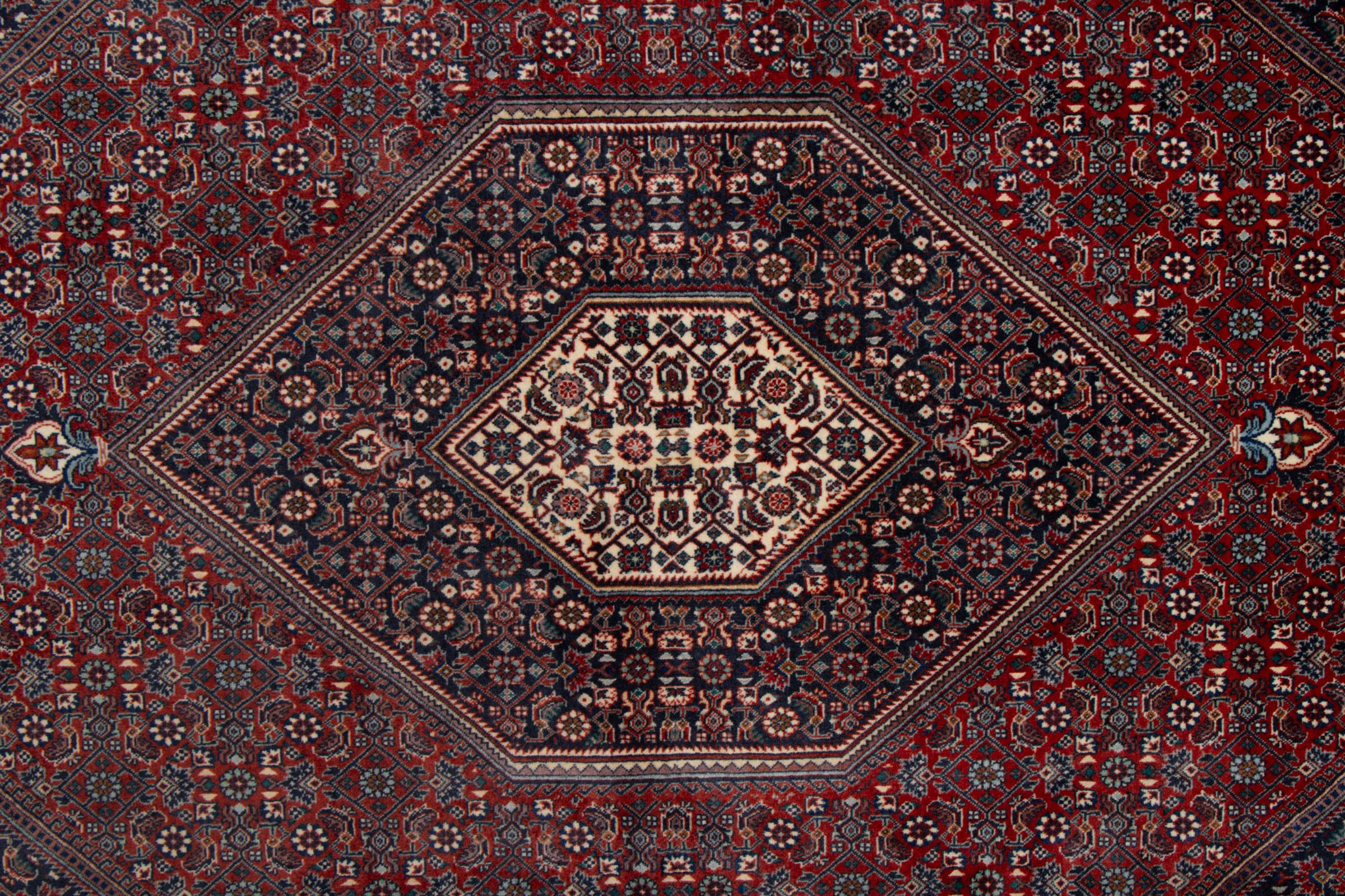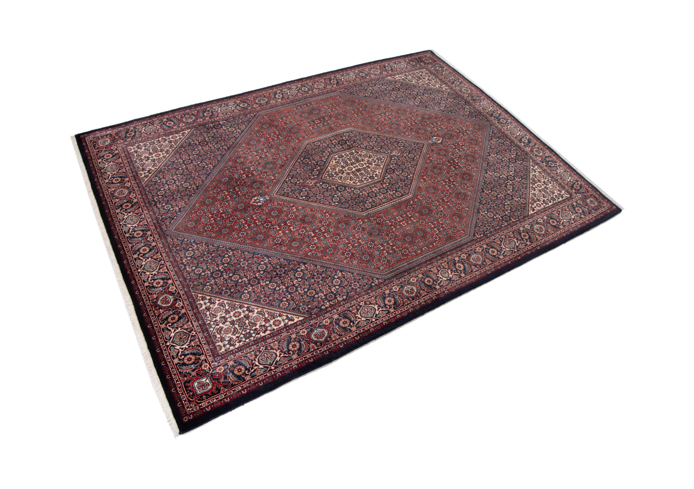 This Persian carpet has been crafted in a small Kurdish town in Western Persia. Bidjar carpets stand for high quality and contemporary design. With geometric patterns and ornaments it is highly popular even for modern interior concepts. Additionally, its compact pile is popular due to its resilience and robustness. This Persian rug made by a Kurdish minority is a great and long-lasting choice you wouldn't want to miss anymore.