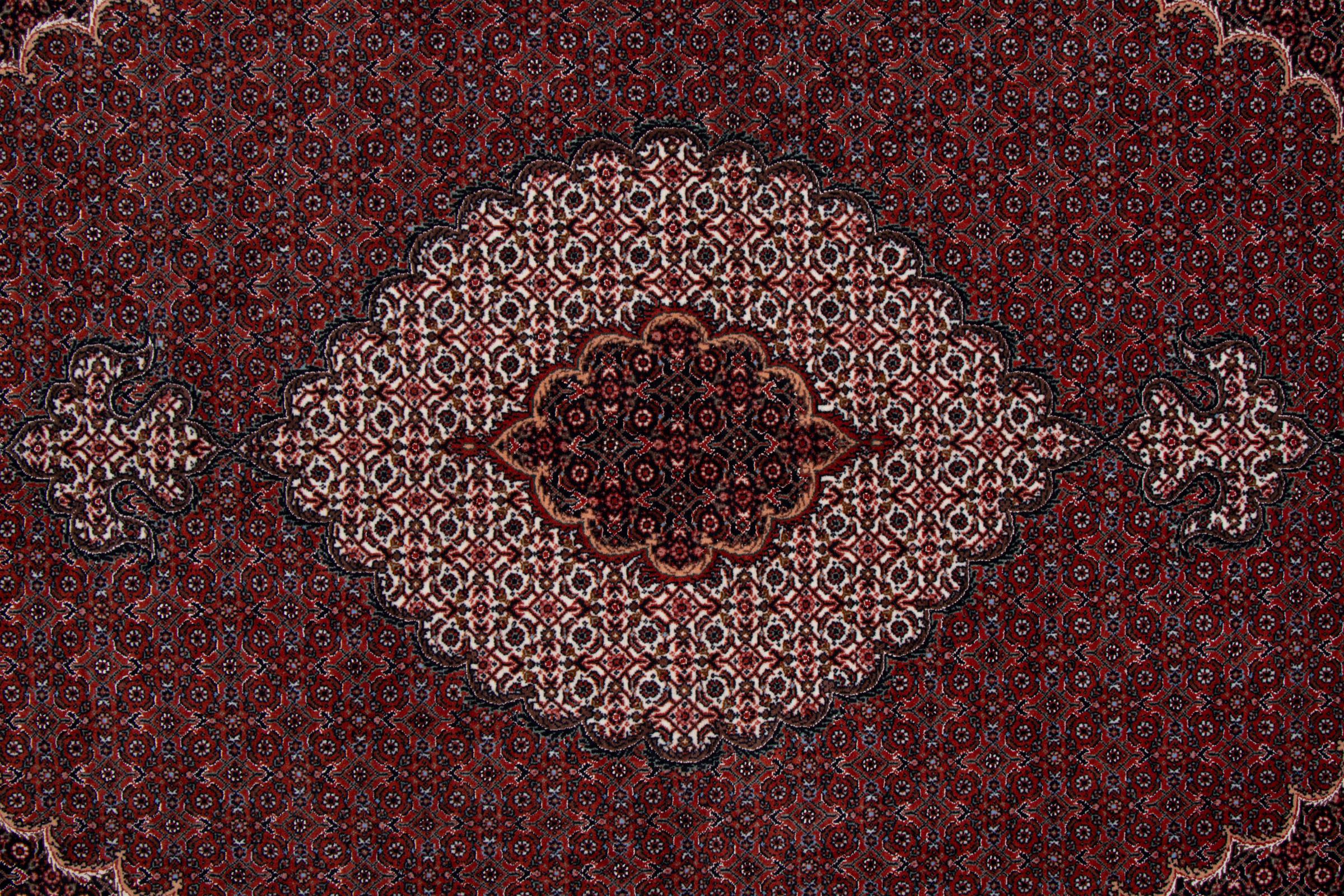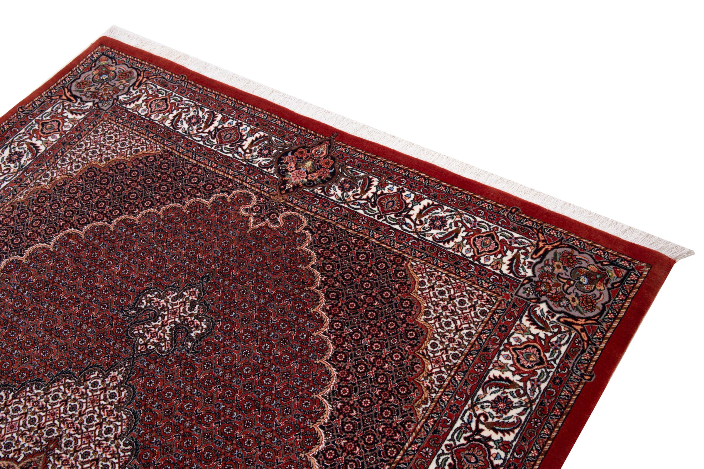 This Persian carpet has been crafted in a small Kurdish town in Western Persia. Bidjar carpets stand for high quality and contemporary design. With geometric patterns and ornaments it is highly popular even for modern interior concepts. Additionally, its compact pile is popular due to its resilience and robustness. This Persian rug made by a Kurdish minority is a great and long-lasting choice you wouldn't want to miss anymore.