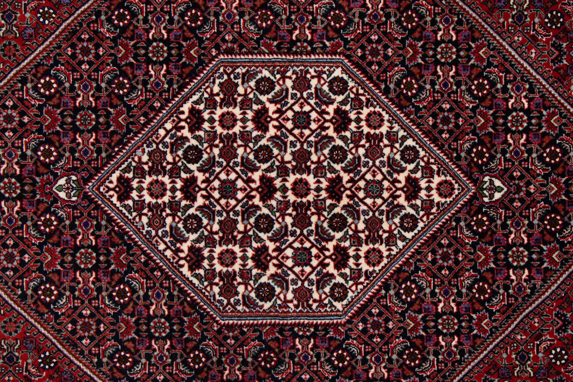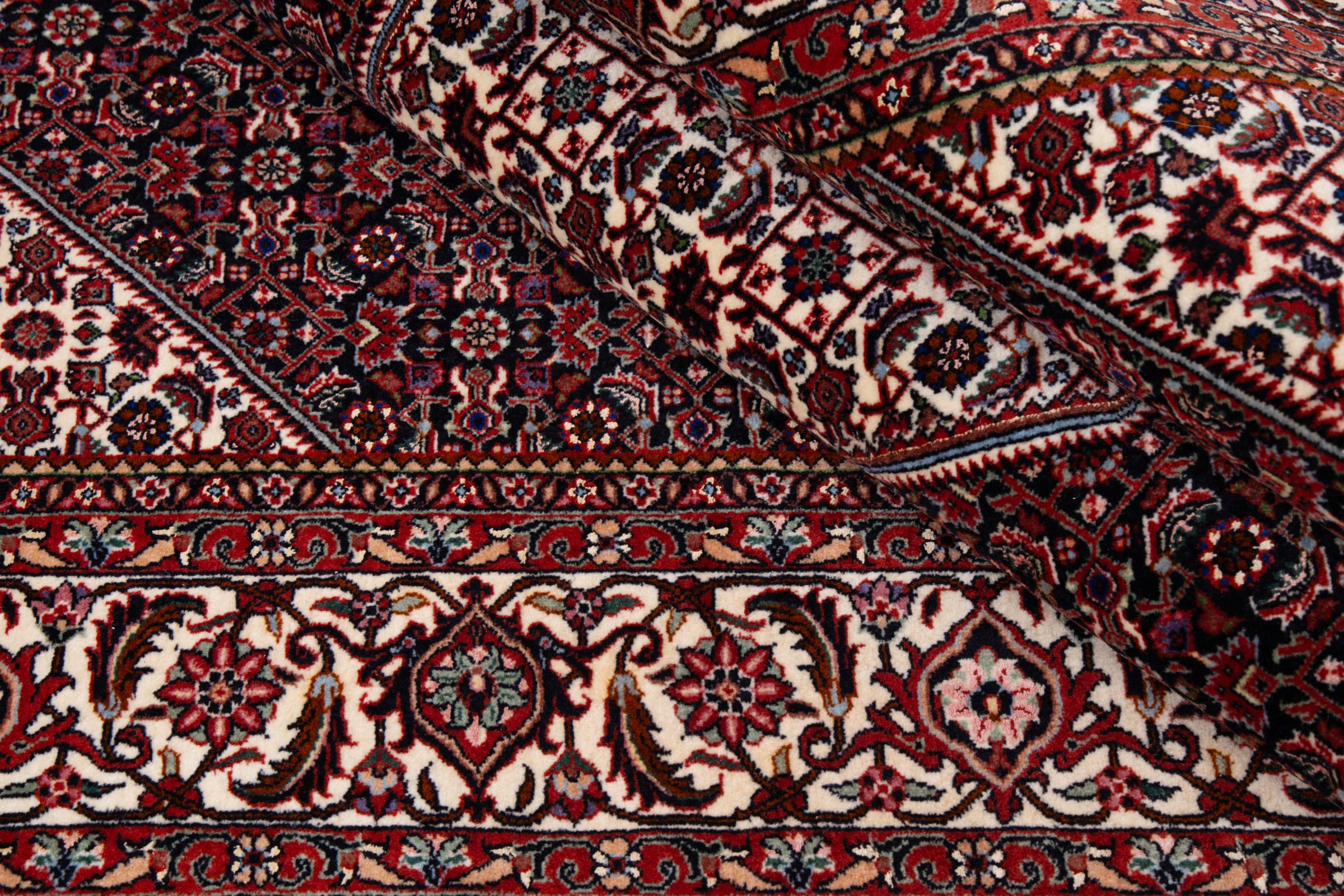 This Persian carpet has been crafted in a small Kurdish town in Western Persia. Bidjar carpets stand for high quality and contemporary design. With geometric patterns and ornaments it is highly popular even for modern interior concepts. Additionally, its compact pile is popular due to its resilience and robustness. This Persian rug made by a Kurdish minority is a great and long-lasting choice you wouldn't want to miss anymore.