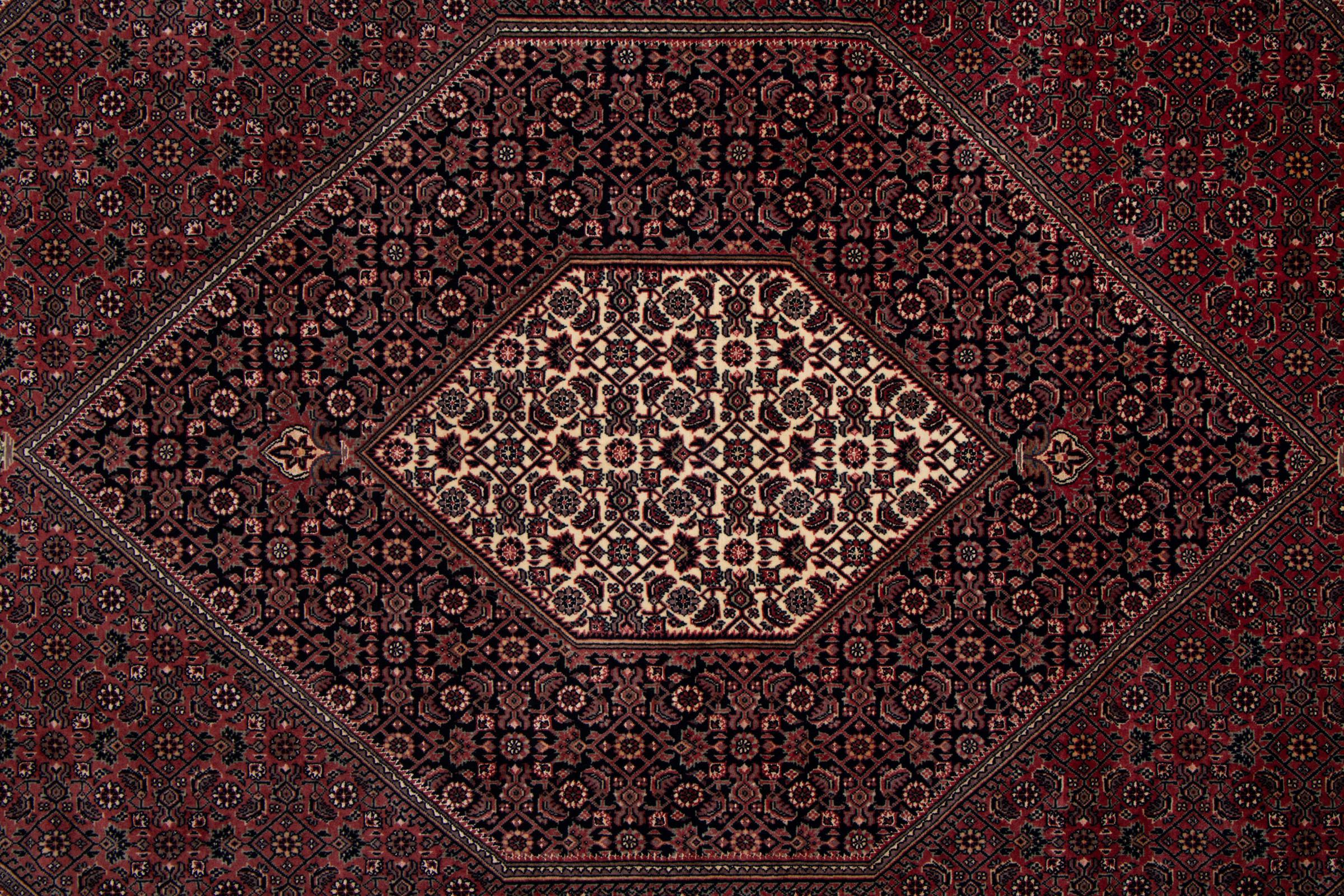 This Persian carpet has been crafted in a small Kurdish town in Western Persia. Bidjar carpets stand for high quality and contemporary design. With geometric patterns and ornaments it is highly popular even for modern interior concepts. Additionally, its compact pile is popular due to its resilience and robustness. This Persian rug made by a Kurdish minority is a great and long-lasting choice you wouldn't want to miss anymore.