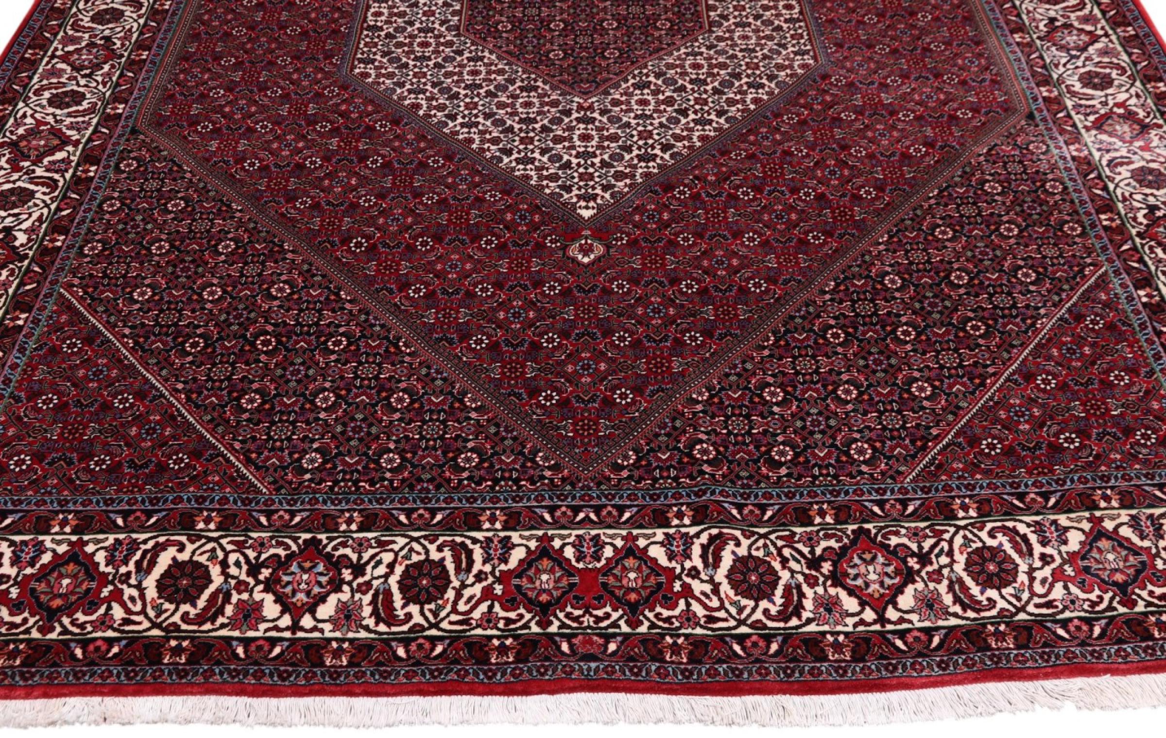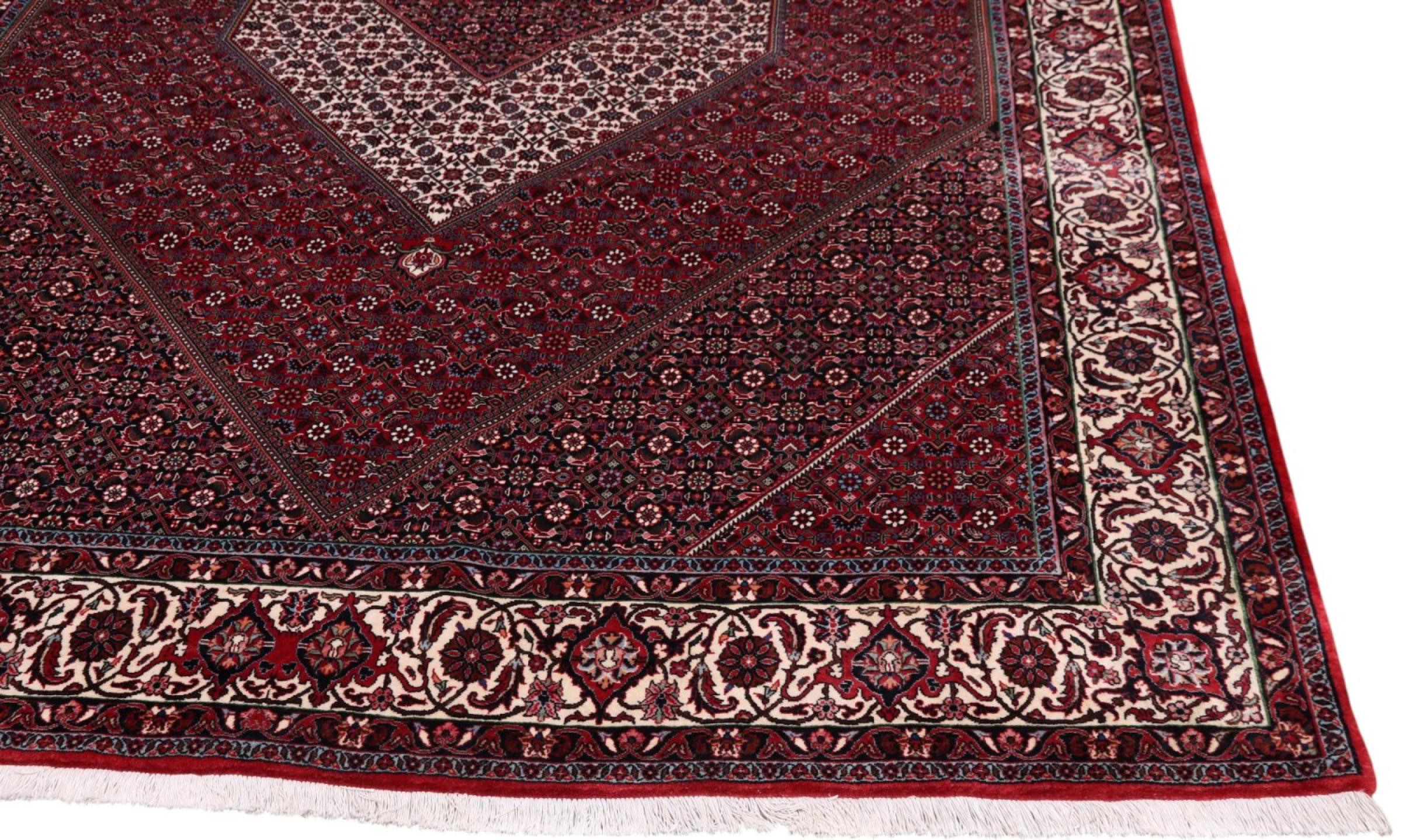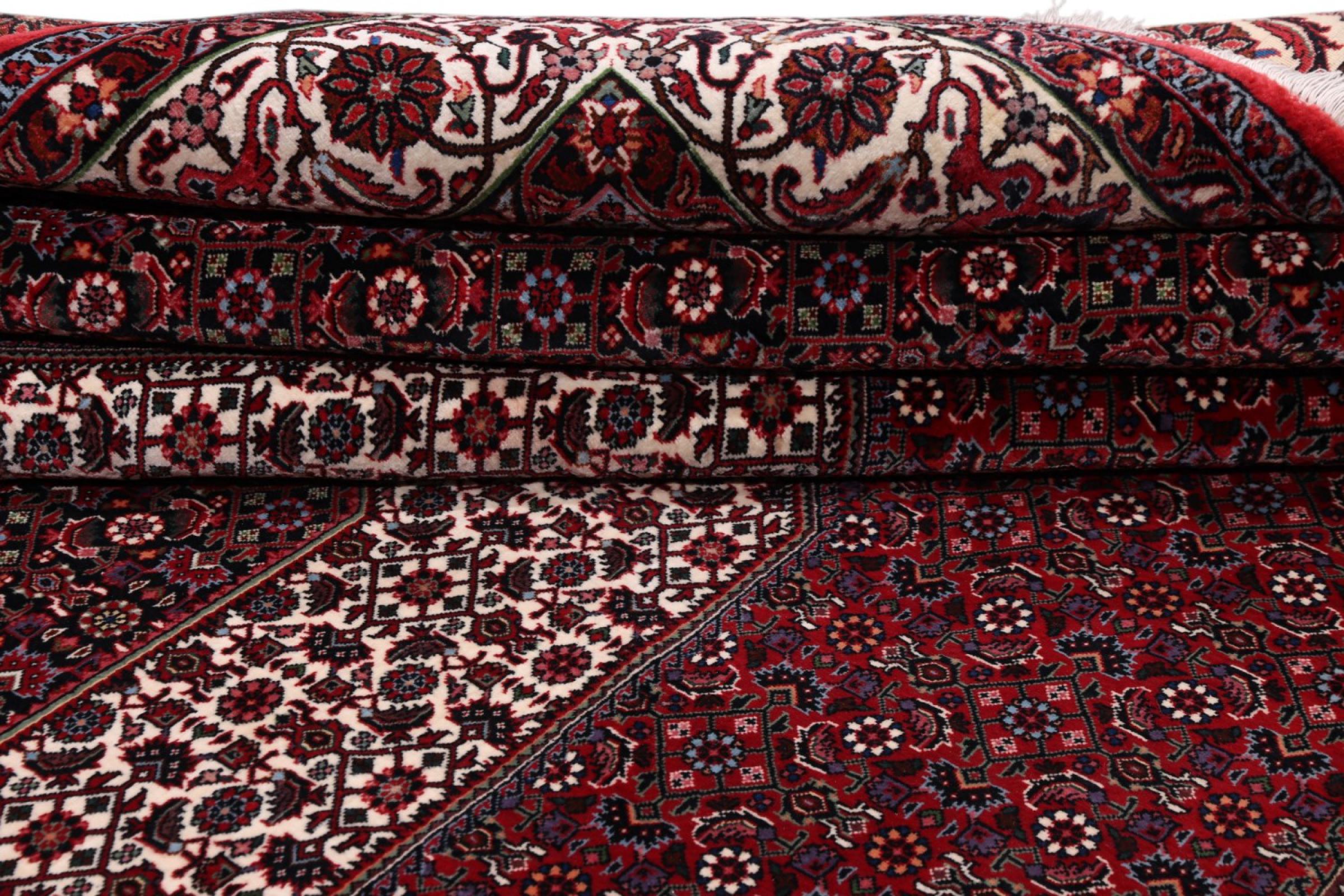 This Persian carpet has been crafted in a small Kurdish town in Western Persia. Bidjar carpets stand for high quality and contemporary design. With geometric patterns and ornaments it is highly popular even for modern interior concepts. Additionally, its compact pile is popular due to its resilience and robustness. This Persian rug made by a Kurdish minority is a great and long-lasting choice you wouldn't want to miss anymore.