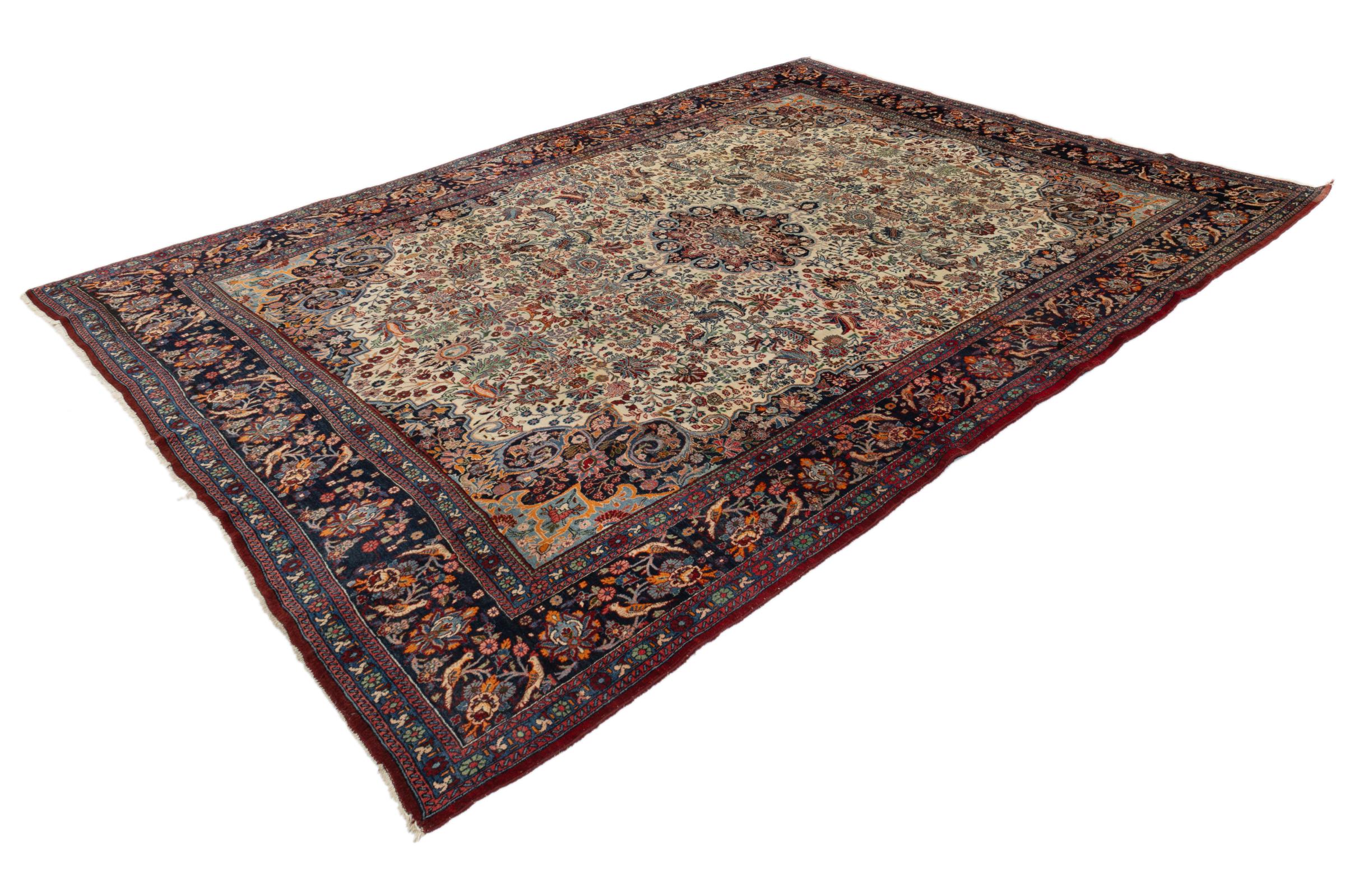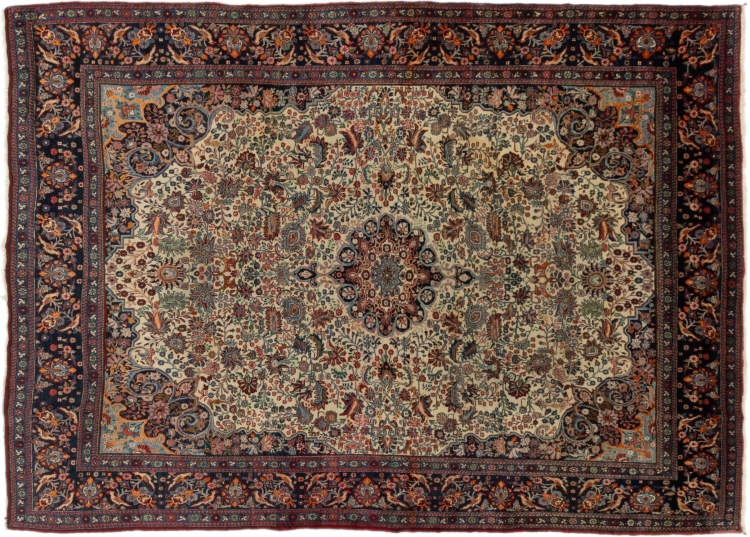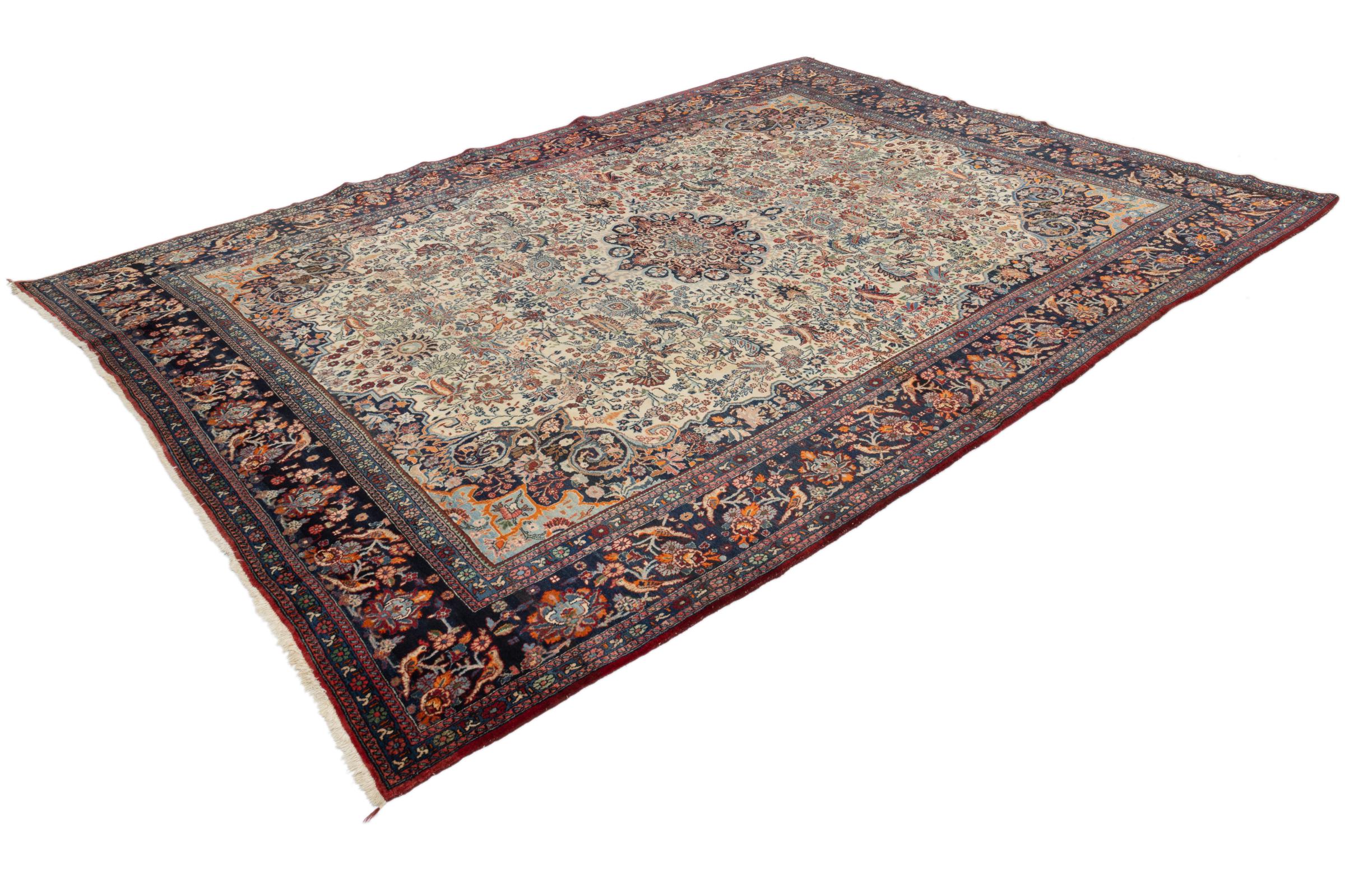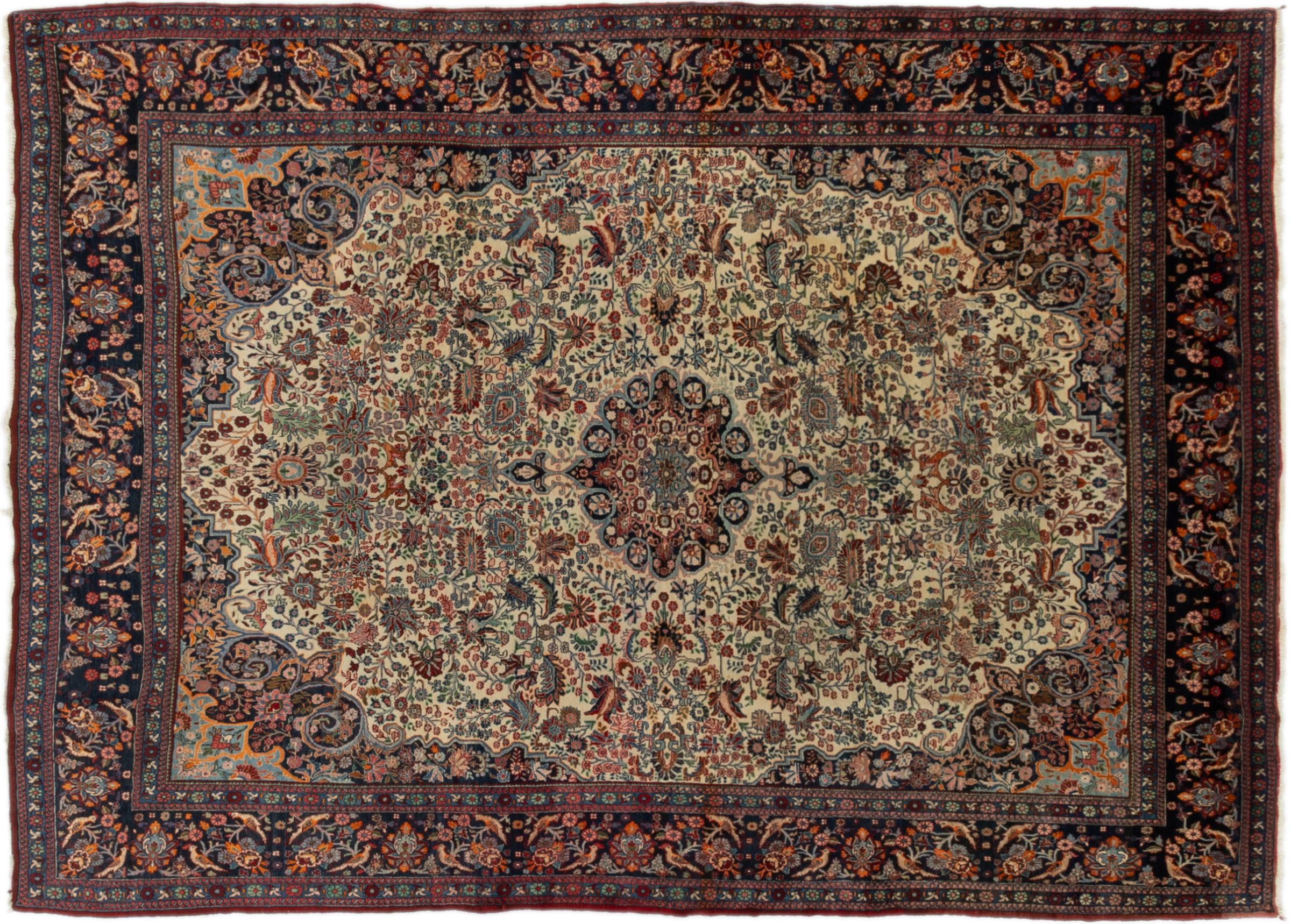 Carpet ID: 296973008956488 Size: 380x278 cm Thickness: ap. 15 mm Knot density: 200 000 - 250 000 / m² Manufacturing: Knotted by hand Pile: Sheep wool Warp: Cotton Origin: Persia Age: 30-50 years (New) Weight: ap. 53 kg In stock: Unique - Only 1 in stock