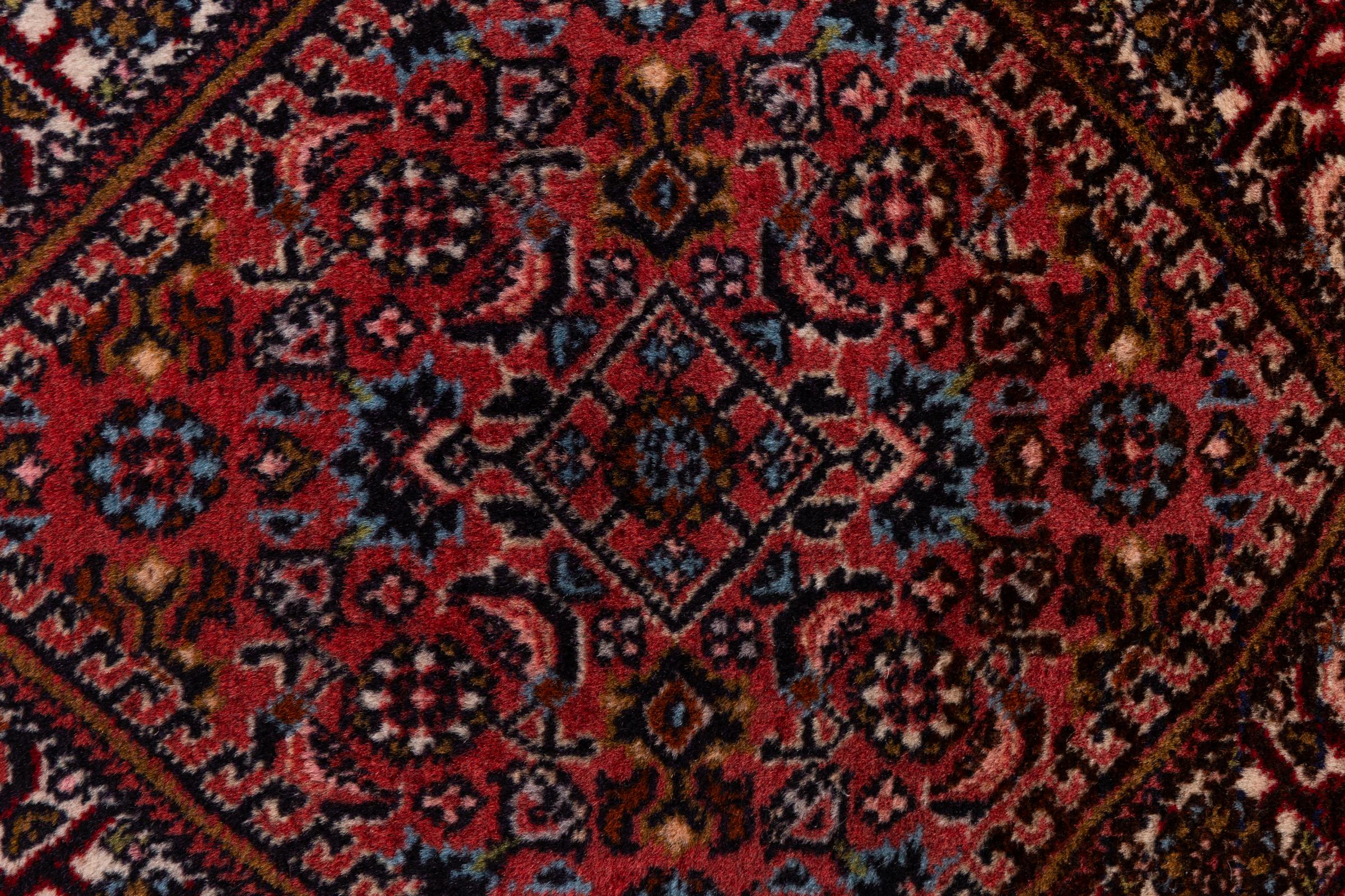 This Persian carpet has been crafted in a small Kurdish town in Western Persia. Bidjar carpets stand for high quality and contemporary design. With geometric patterns and ornaments it is highly popular even for modern interior concepts. Additionally, its compact pile is popular due to its resilience and robustness. This Persian rug made by a Kurdish minority is a great and long-lasting choice you wouldn't want to miss anymore.