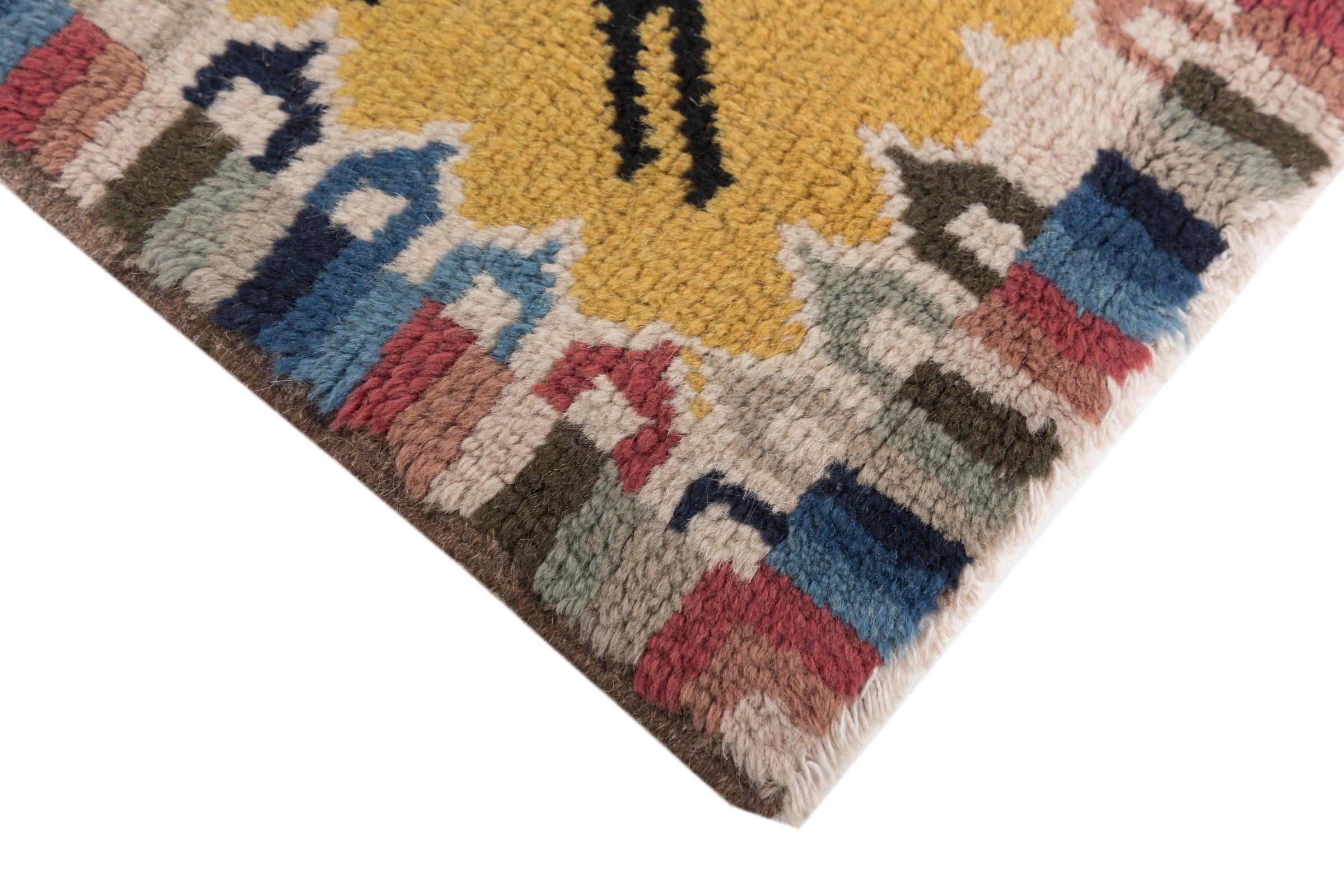 Carpet ID: 296801001865 Size: 165x77 cm Thickness: ap. 12 mm Knot density: 200 000 - 250 000 / m² Manufacturing: Knotted by hand Pile: Handspun wool Warp: Cotton Origin: China Age: Old, 30-50 years Weight: ap. 4 kg In stock: Unique - Only 1 in stock