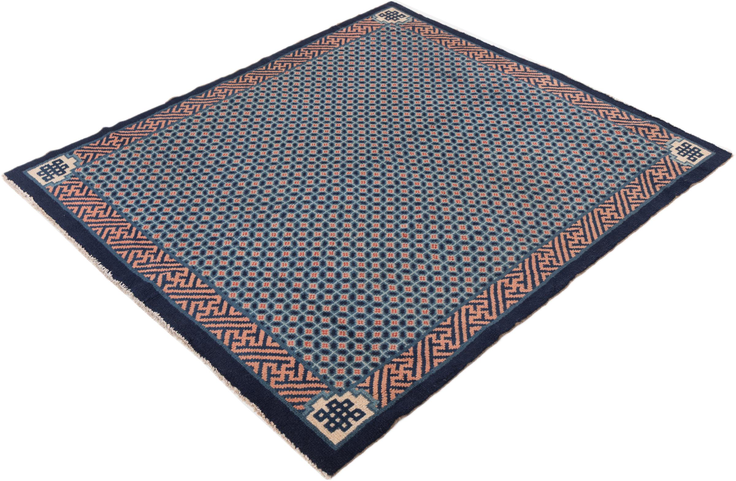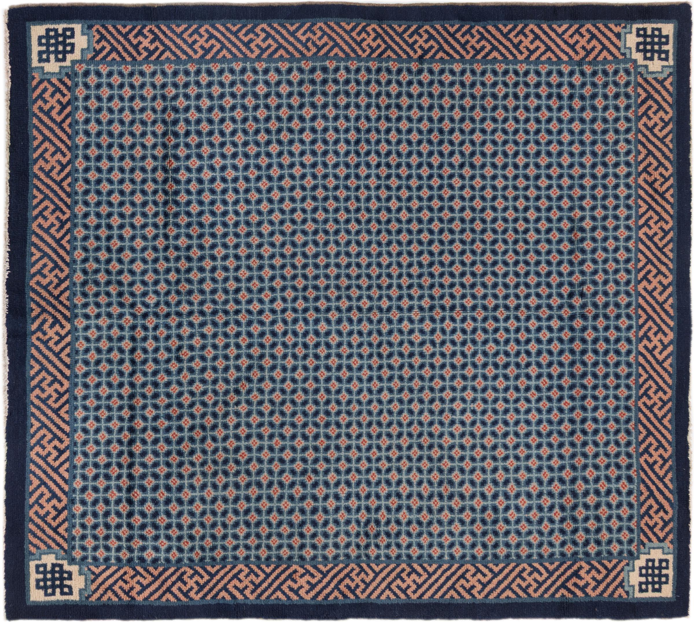 Carpet ID: 296236001867 Size: 180x163 cm Thickness: ap. 12 mm Knot density: 72 000 - 90 000 / m² Manufacturing: Knotted by hand Pile: Handspun wool Warp: Cotton Origin: China Age: Old/Semi antique, over 50 years Weight: ap. 10 kg In stock: Unique - Only 1 in stock