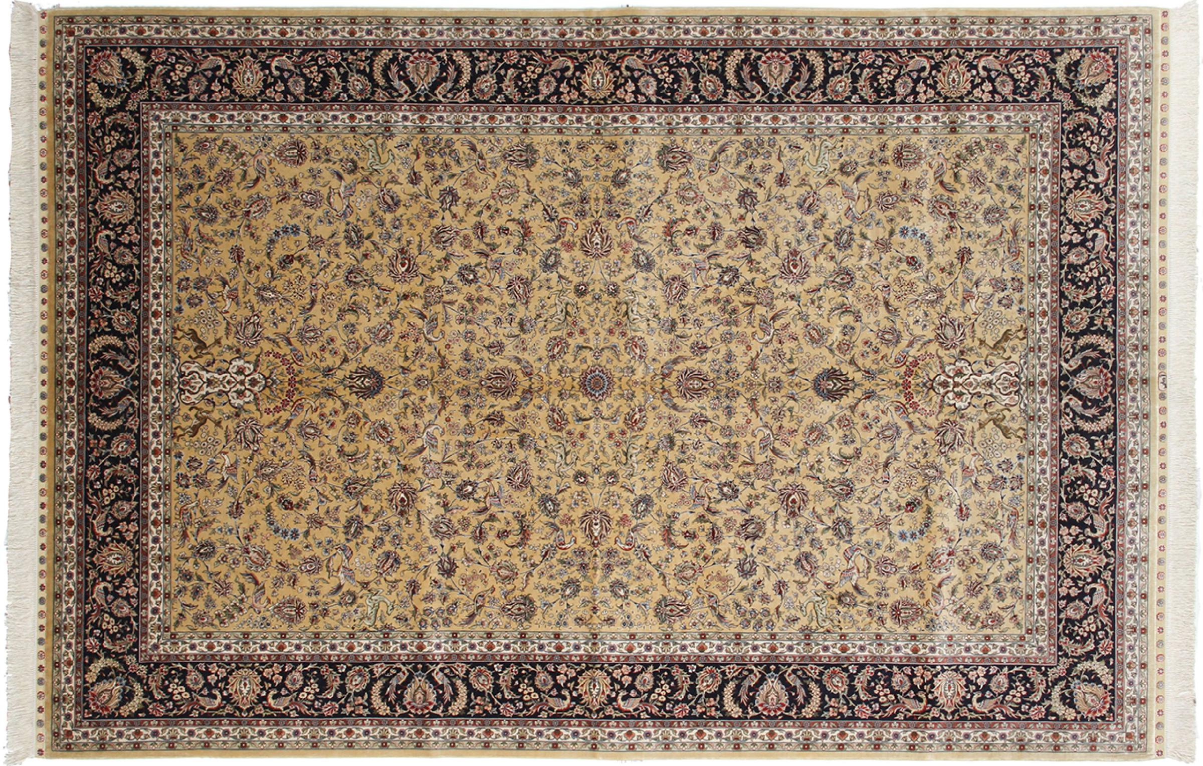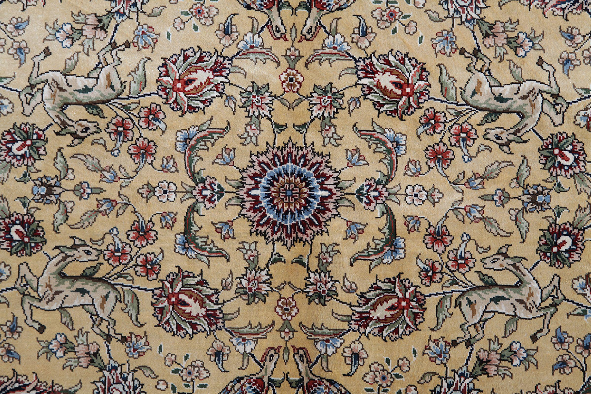 Carpet ID: 261397001802227 Size: 278x184 cm Thickness: ap. 5 mm Knot density: 1 000 000 / m² Manufacturing: Knotted by hand Pile: Silk Warp: Silk Origin: China Age: New Weight: ap. 15 kg In stock: Unique - Only 1 in stock