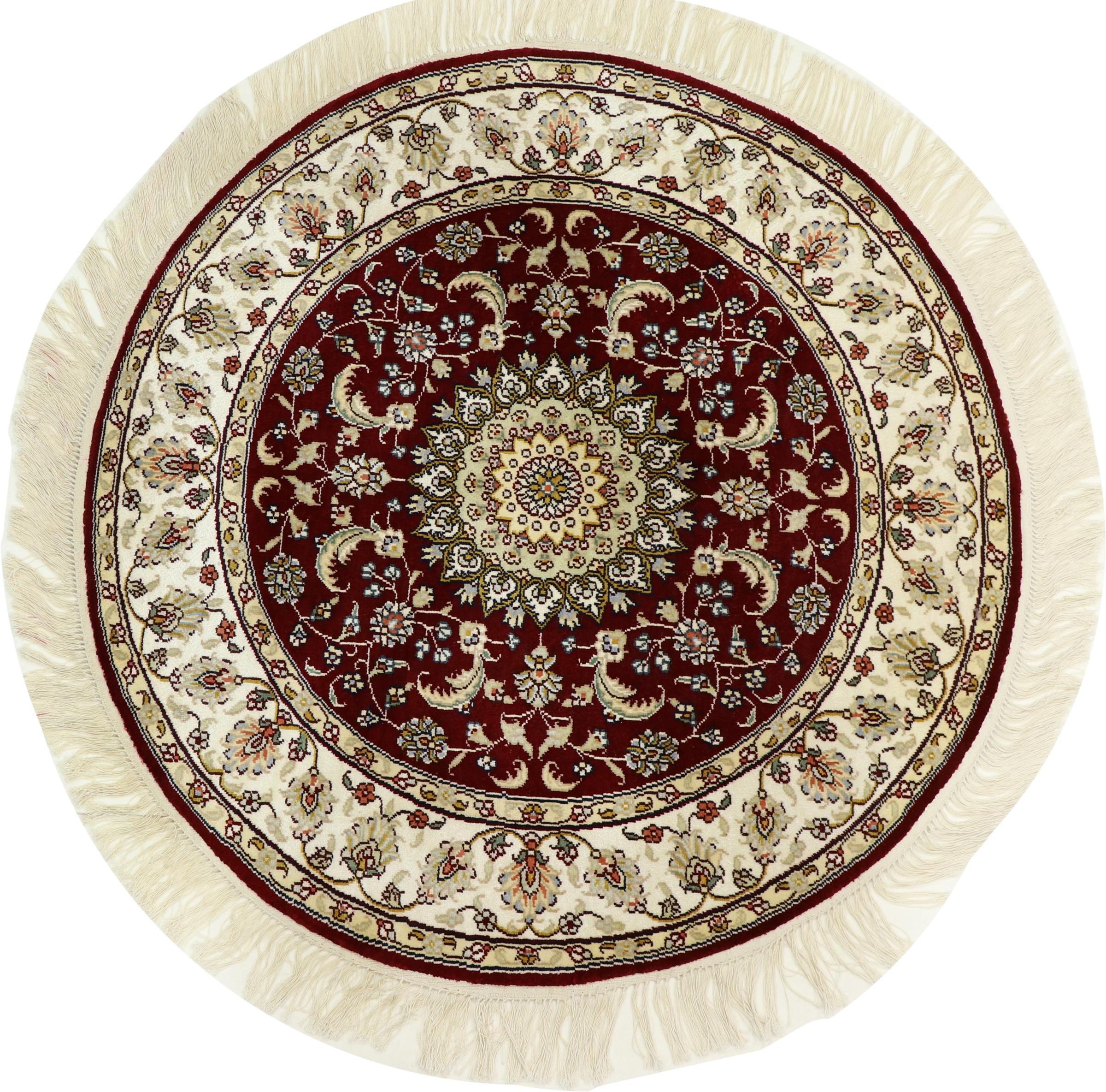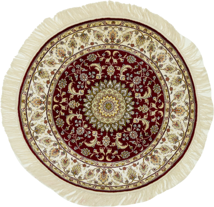 Carpet ID: 303829006586308 Size: 89x89 cm Thickness: ap. 5 mm Knot density: 440 000 - 490 000 / m² Manufacturing: Knotted by hand Pile: Silk Warp: Silk Origin: China Age: New Weight: ap. 3 kg In stock: Unique - Only 1 in stock