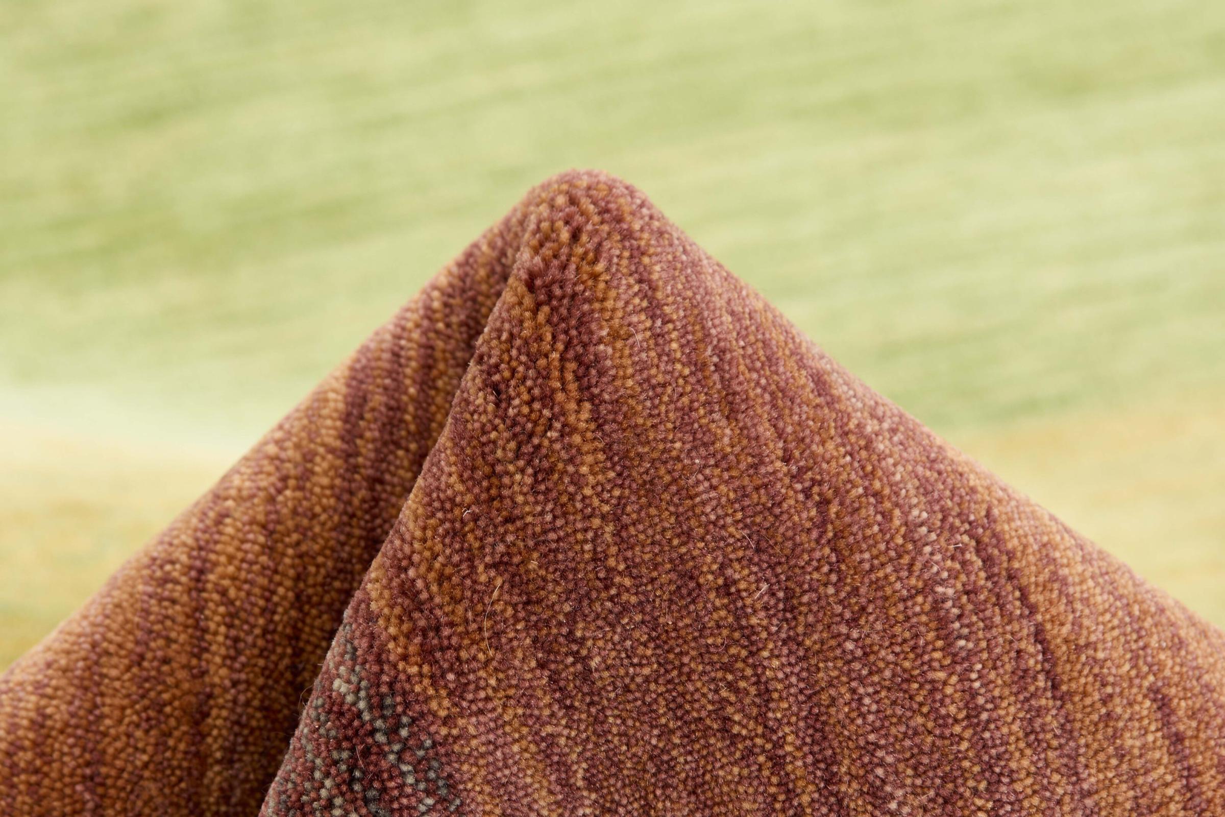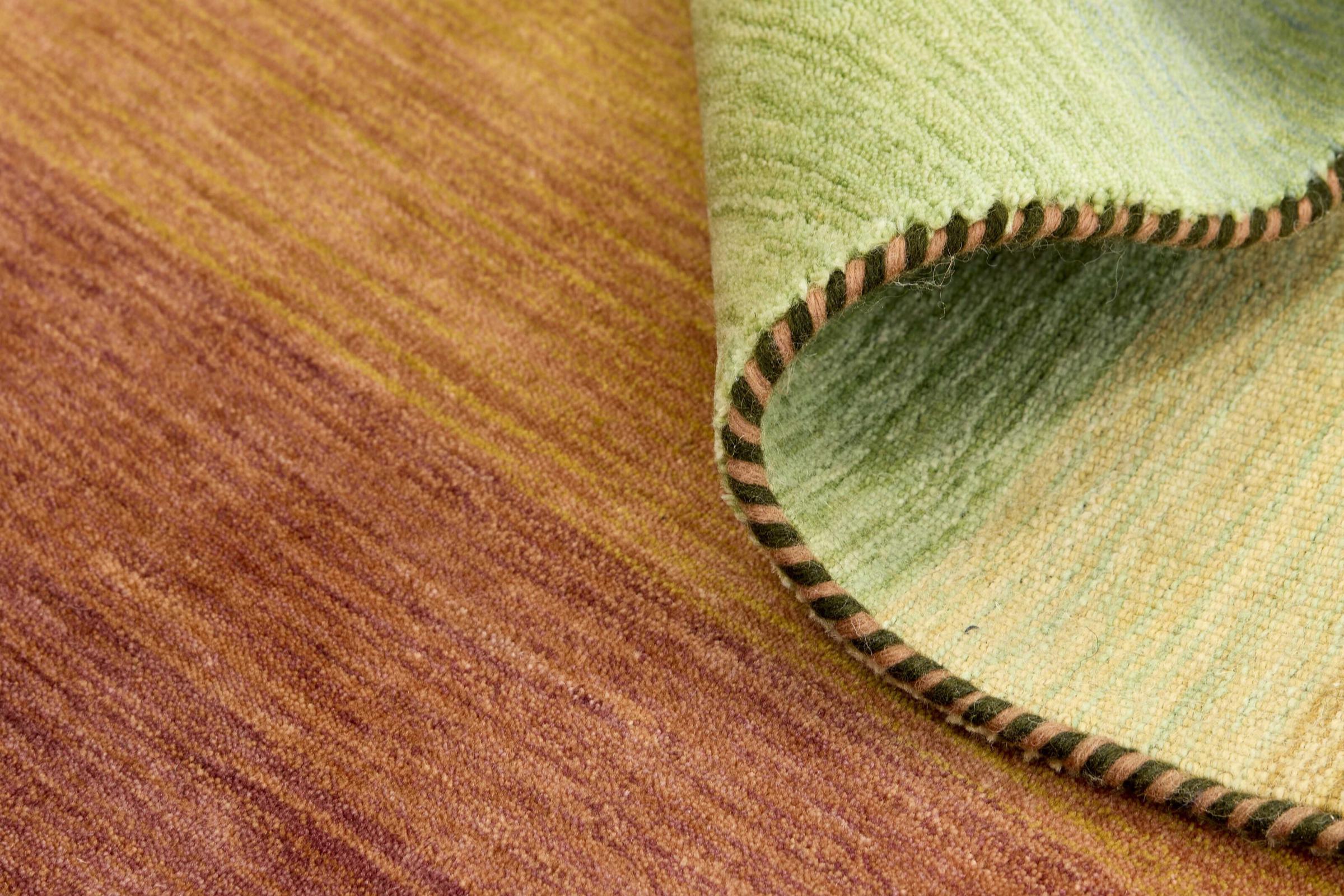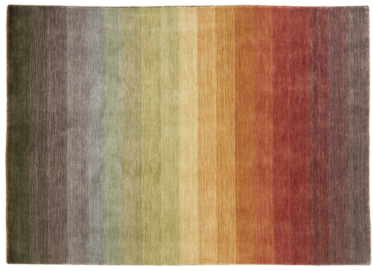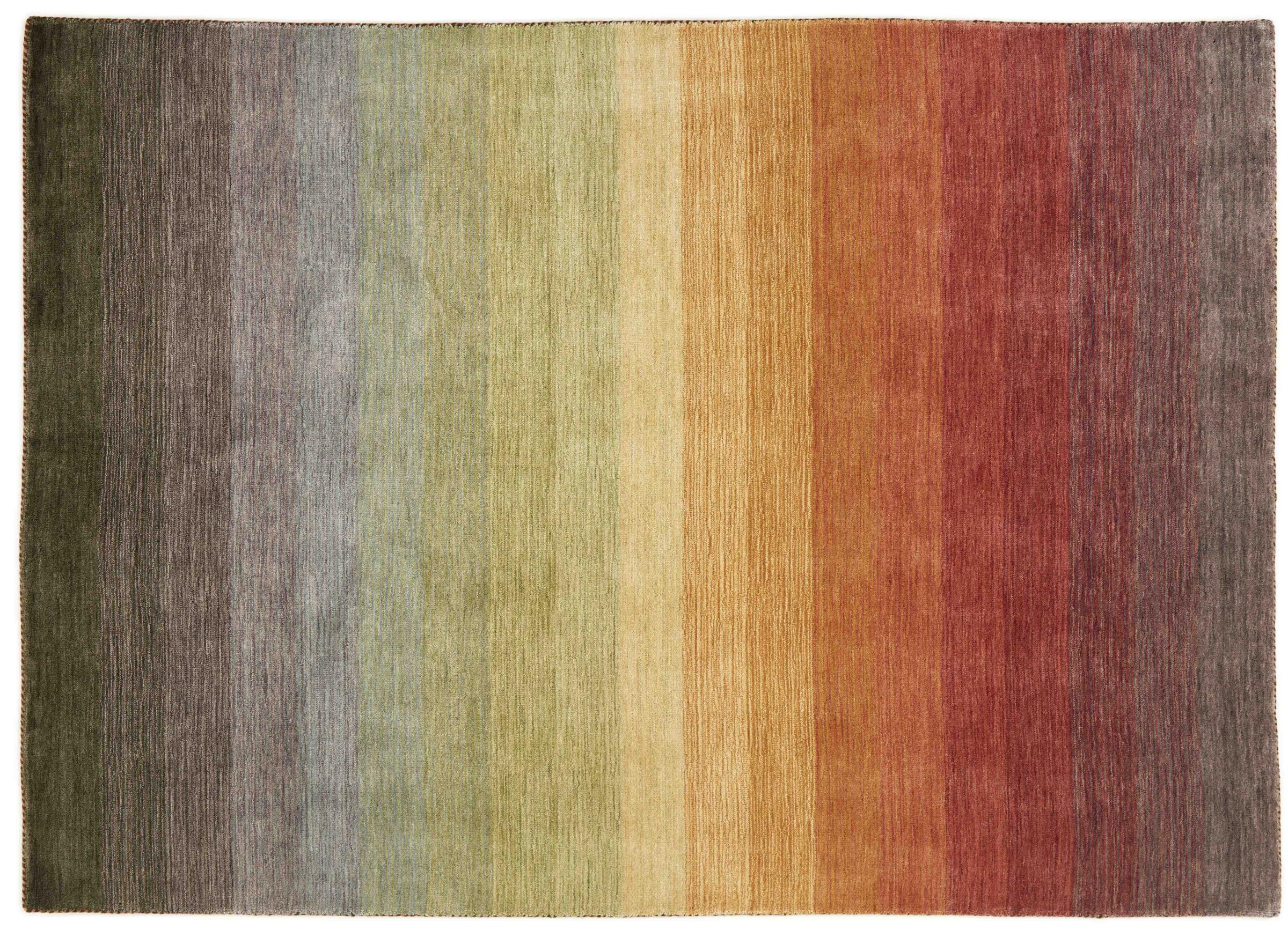 This handmade designer rug deliberately picks up on subtle shades of a particular colour spectrum. The result is a calm yet modern design. Natural wool has been used together with viscose to create a beautiful lustre. This makes the colour spectrum look downright breathtaking in reality.