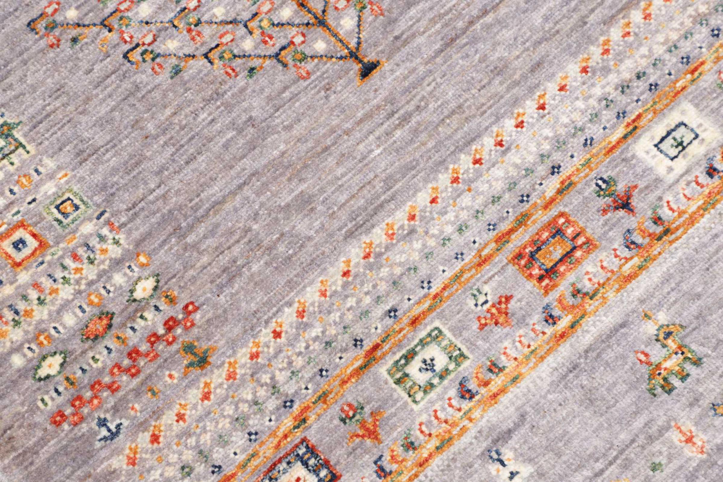 This rug is made of hand spun sheep wool of the highest quality. Especially in Iran (former Persia), Afghanistan and Pakistan wool is still spun by hand before the actual knotting of the rug begins. Wool has proven itself as a natural and extremely hard-wearing material over centuries. Among other things, it has dirt-repellent and heat-insulating properties. At the same time, wool is incomparably soft and has a natural shine.