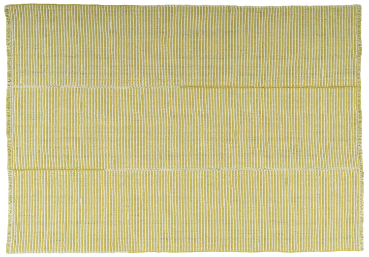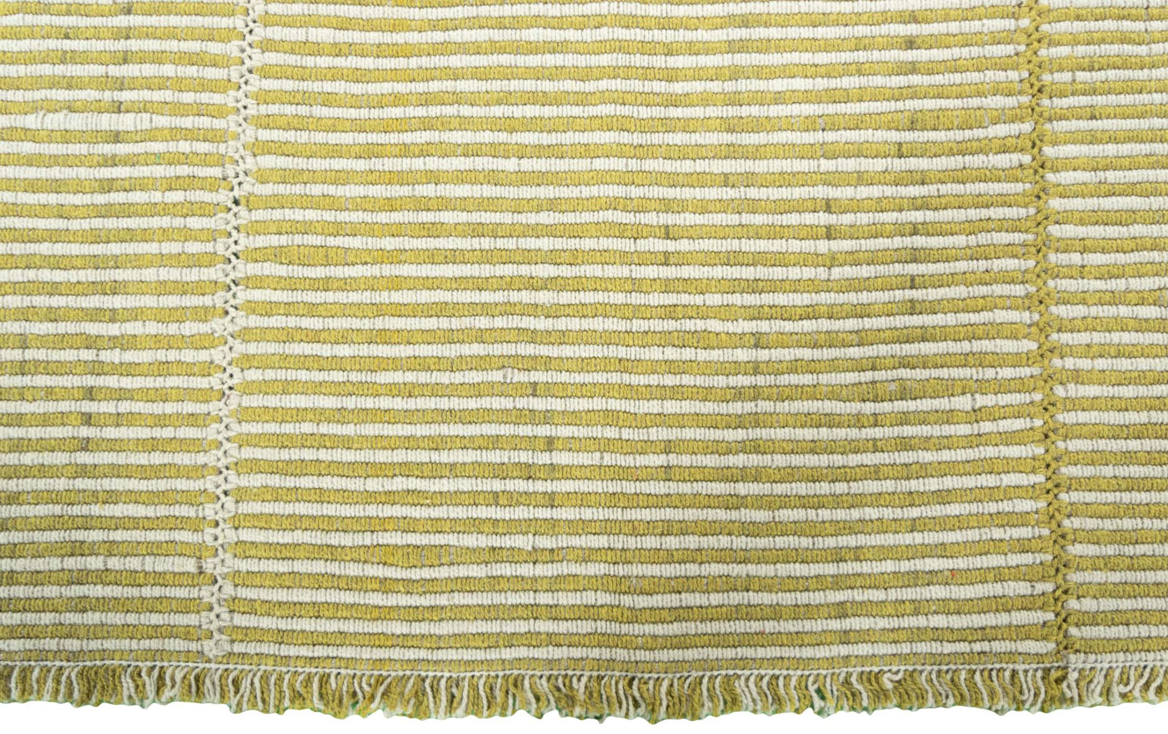 This rug was made as a flat weave by hand on a loom. Flatweave is the term used to describe rugs that have no pile. As the name promises, these rugs are woven and not knotted. This results in a flat rug with a structured surface. Flatweaves are not as soft and usually thinner than knotted rugs. At the same time they are much less complex to manufacture and can usually be laid out from both sides (front and back). Their patterns are usually geometric, which is determined by the fabric.