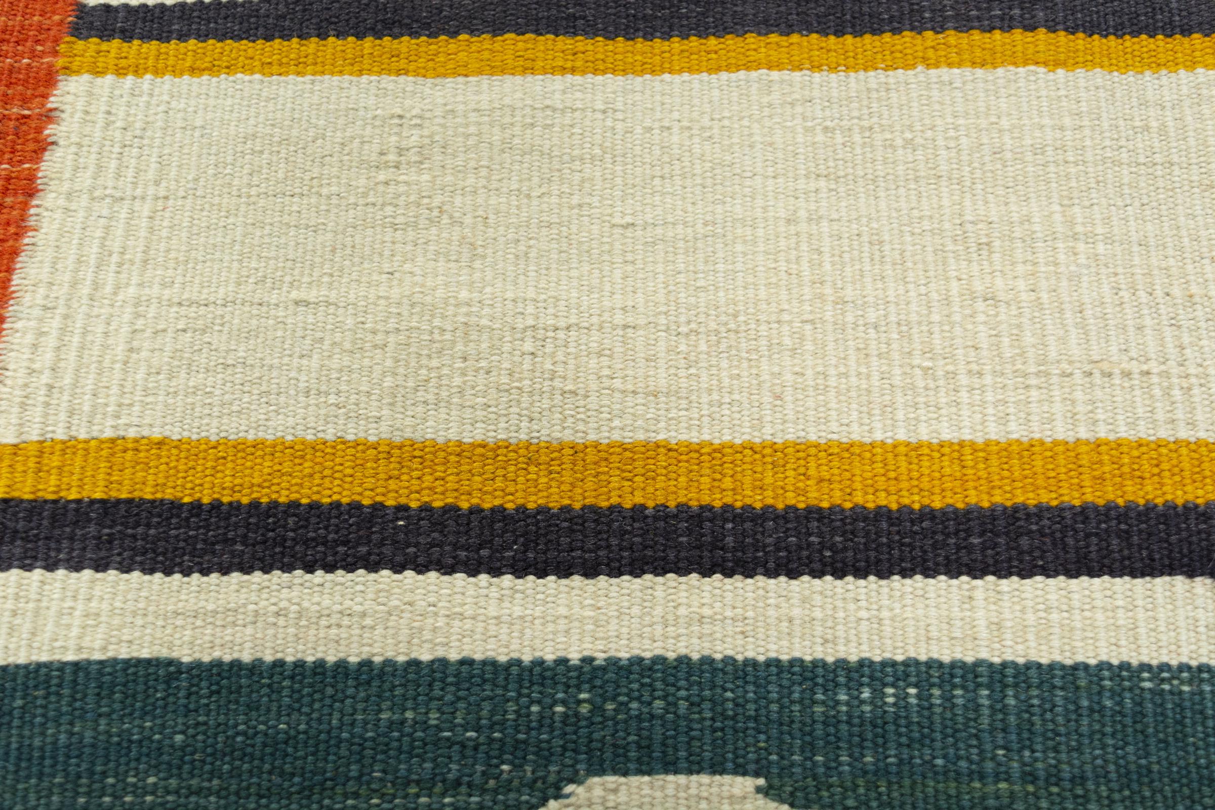This Eylisian is a particularly high-quality, modern, flat-woven design kilim. Its hand-spun/natural wool was hand-woven according to contemporary design using traditional Persian technique. Its robust, long-lasting quality makes it a popular, contemporary and timeless eye-catcher in your home.