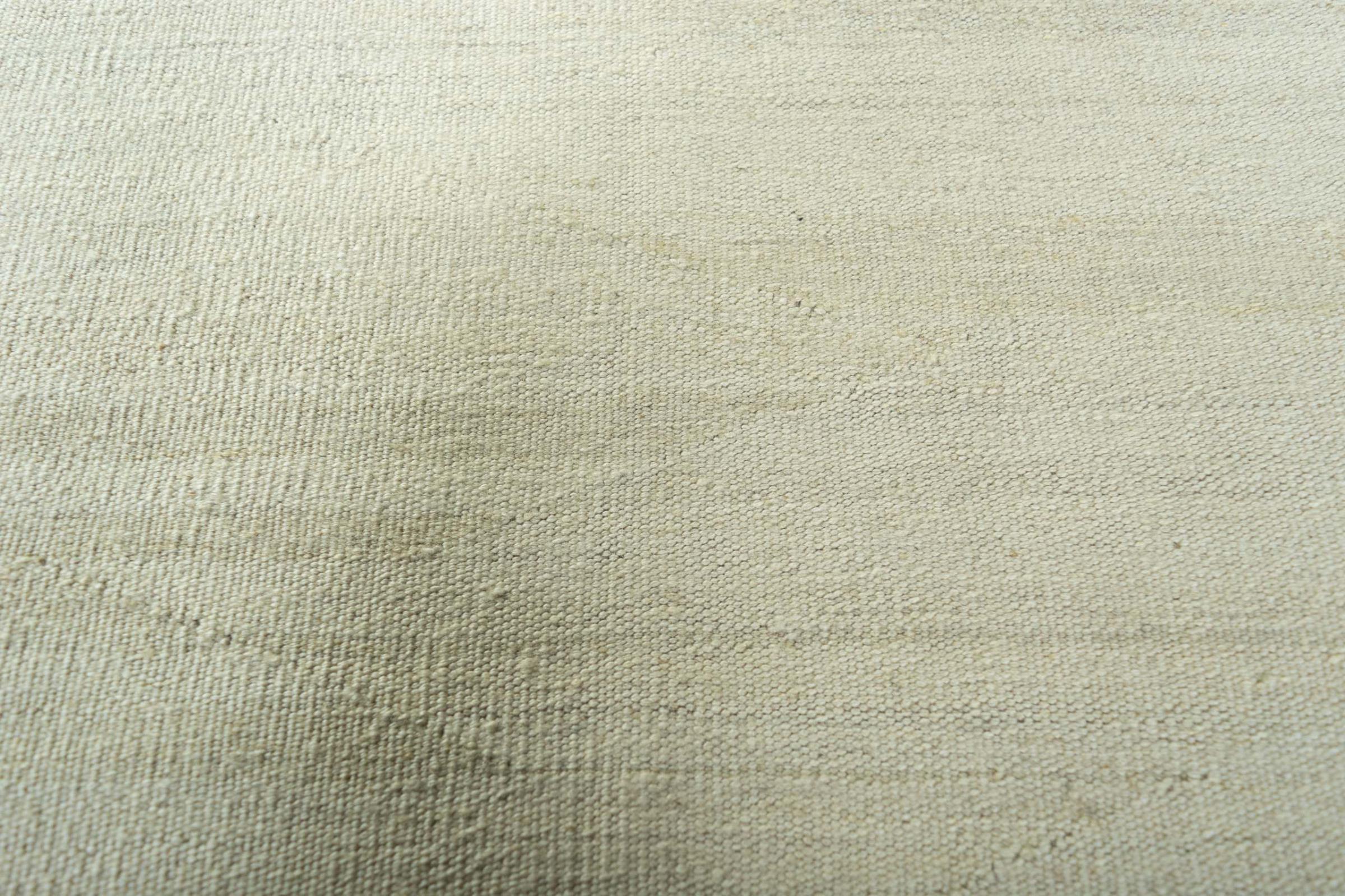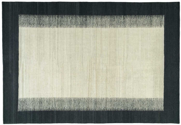 This rug was made as a flat weave by hand on a loom. Flatweave is the term used to describe rugs that have no pile. As the name promises, these rugs are woven and not knotted. This results in a flat rug with a structured surface. Flatweaves are not as soft and usually thinner than knotted rugs. At the same time they are much less complex to manufacture and can usually be laid out from both sides (front and back). Their patterns are usually geometric, which is determined by the fabric.