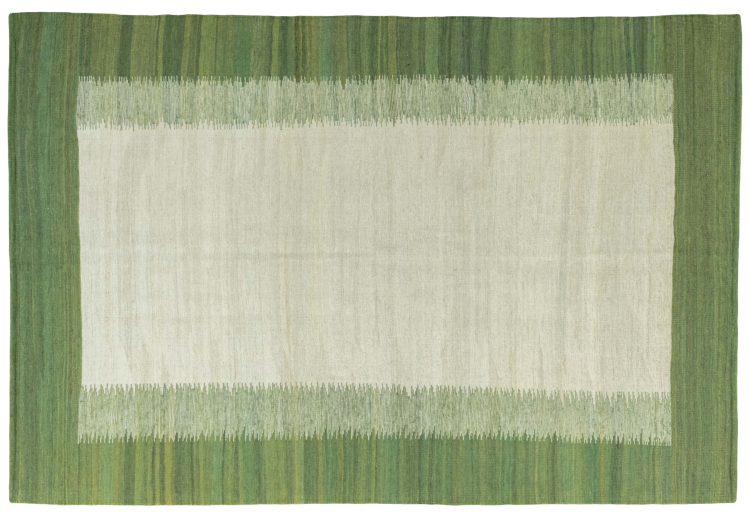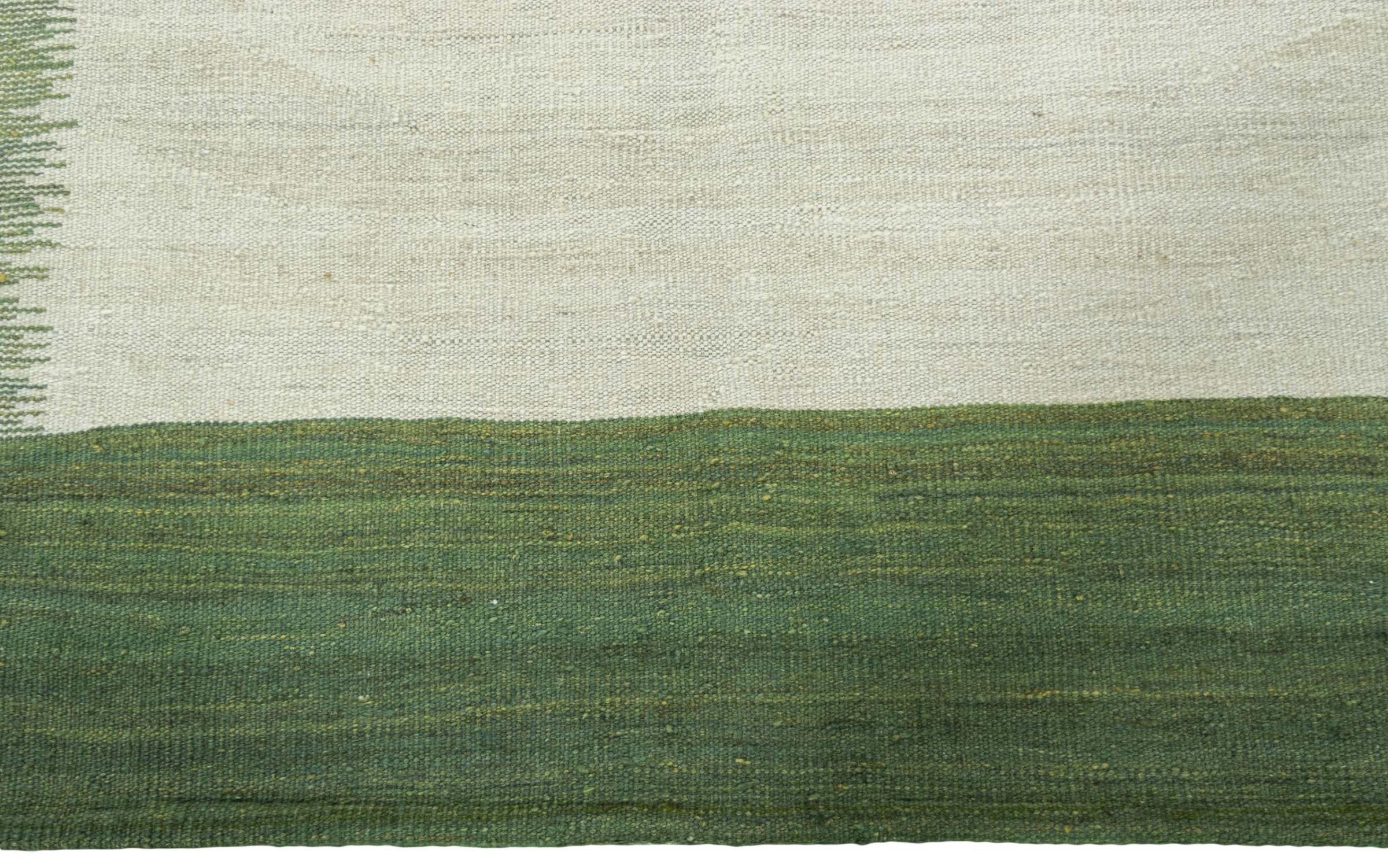 This rug was made as a flat weave by hand on a loom. Flatweave is the term used to describe rugs that have no pile. As the name promises, these rugs are woven and not knotted. This results in a flat rug with a structured surface. Flatweaves are not as soft and usually thinner than knotted rugs. At the same time they are much less complex to manufacture and can usually be laid out from both sides (front and back). Their patterns are usually geometric, which is determined by the fabric.