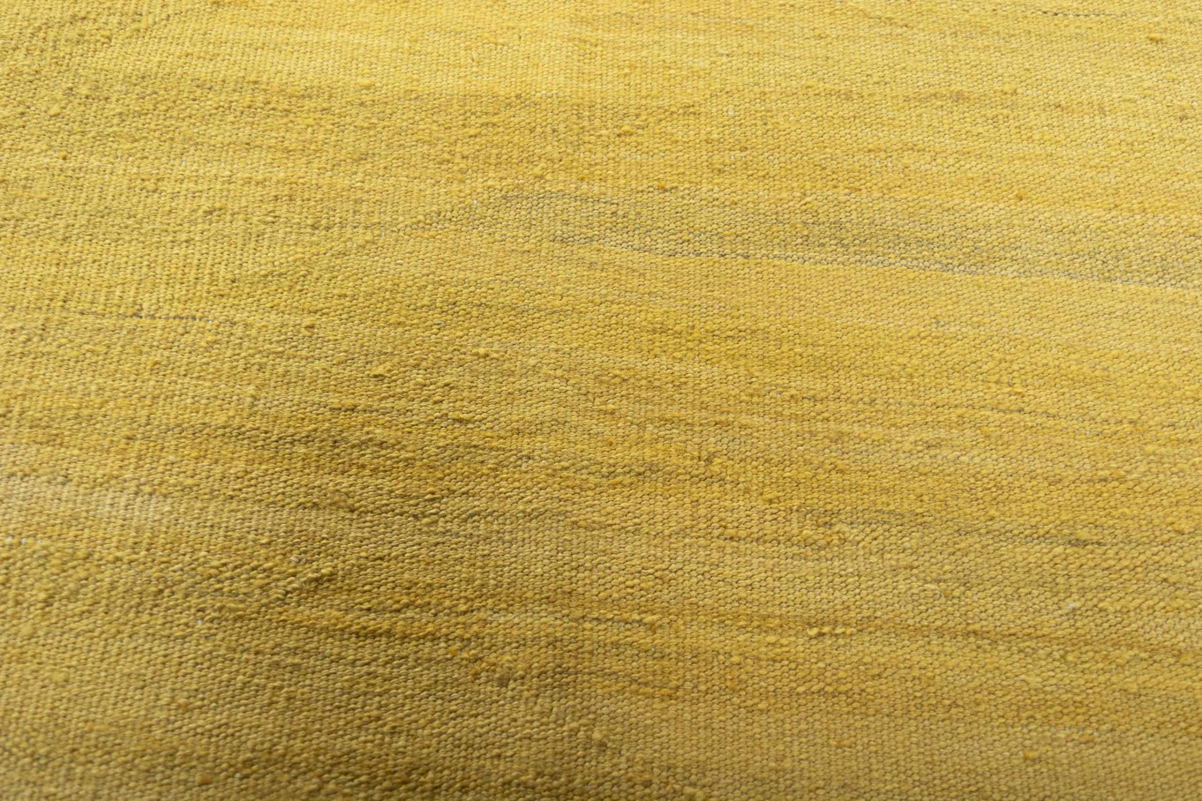 This rug was made as a flat weave by hand on a loom. Flatweave is the term used to describe rugs that have no pile. As the name promises, these rugs are woven and not knotted. This results in a flat rug with a structured surface. Flatweaves are not as soft and usually thinner than knotted rugs. At the same time they are much less complex to manufacture and can usually be laid out from both sides (front and back). Their patterns are usually geometric, which is determined by the fabric.